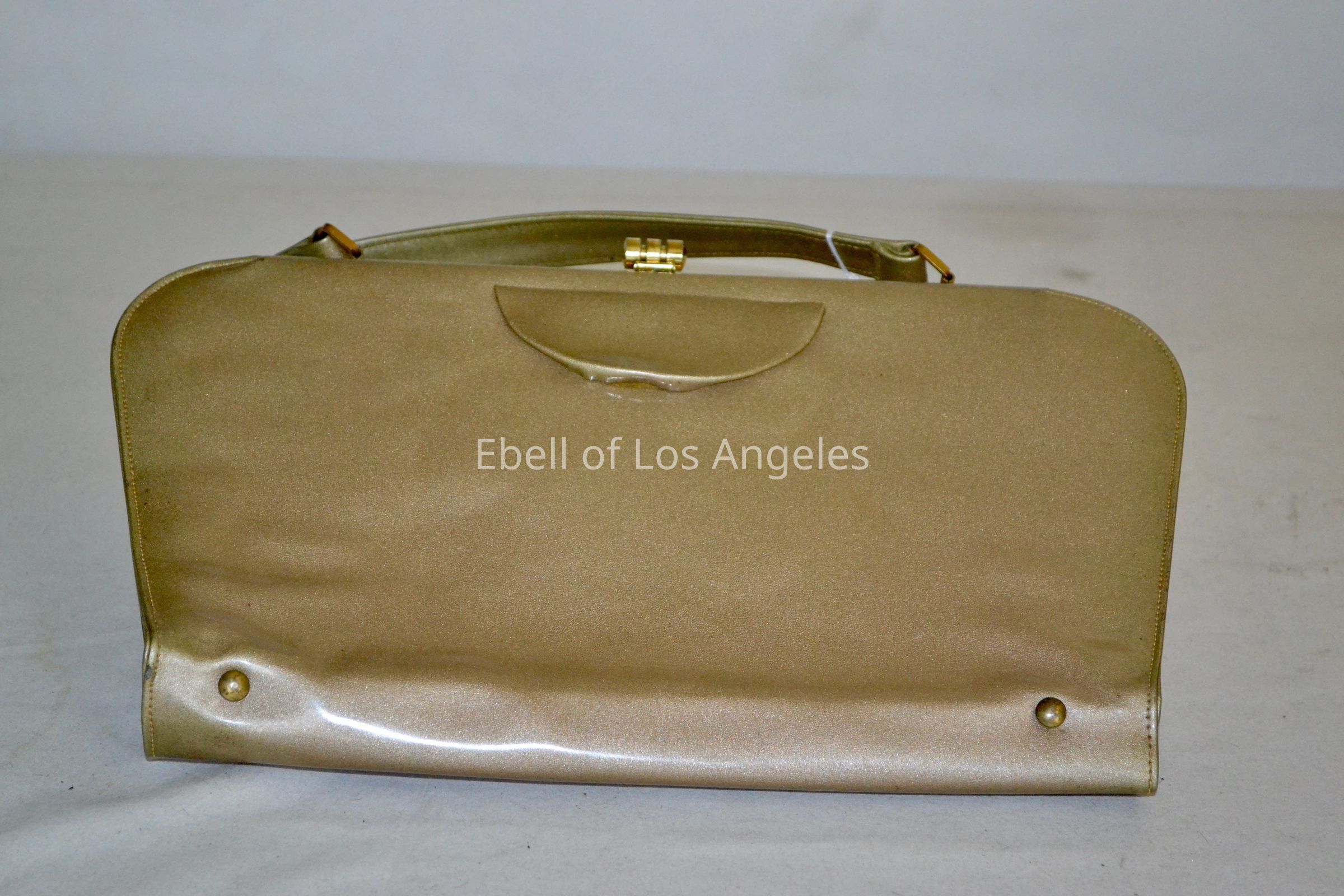 Plastic hinge rigid frame purse , metallic, bronze satin inside with vertical divider, handleEntry/Object ID