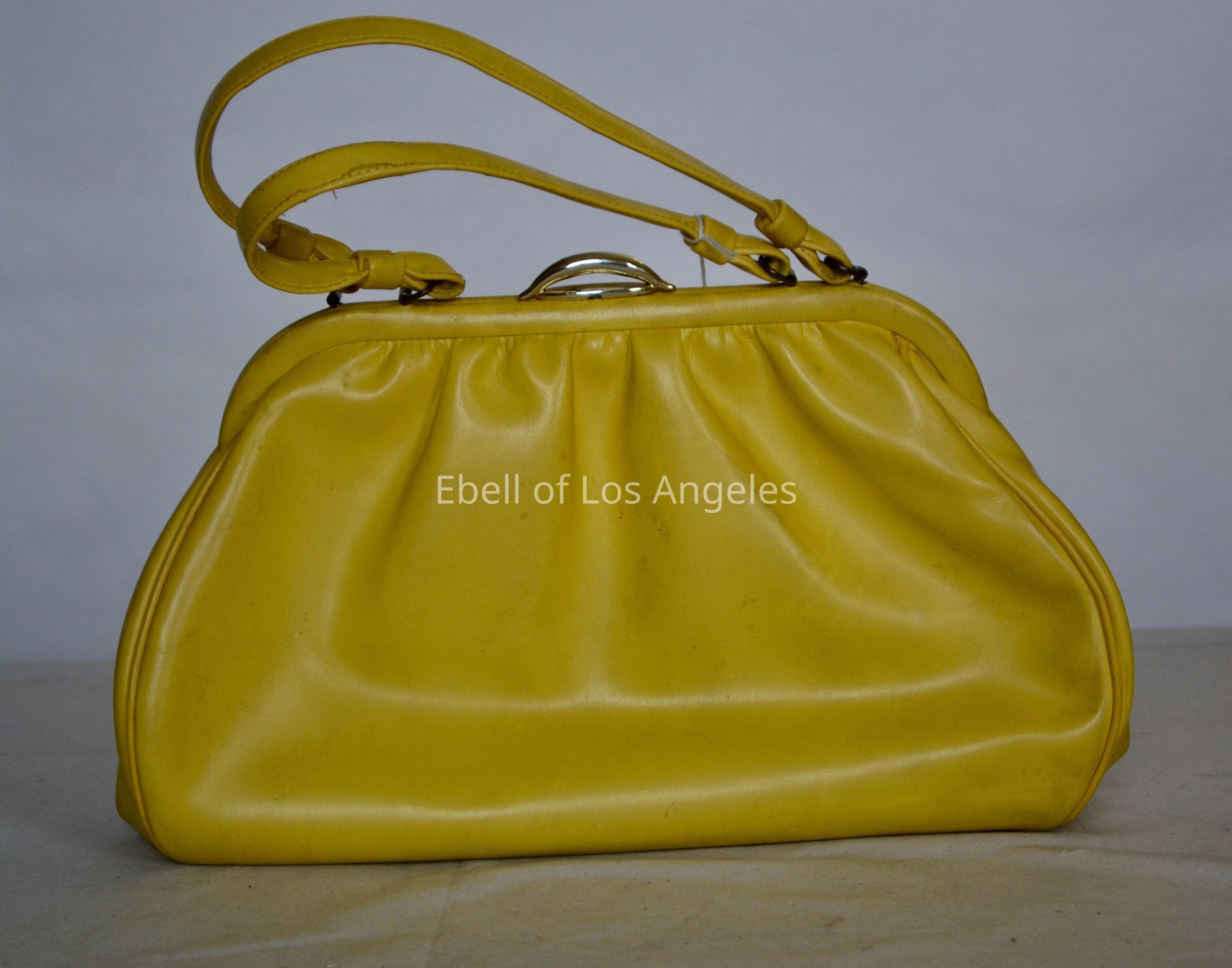 Leather purse with double strap, beige tricot inside, hinge lock gold tone