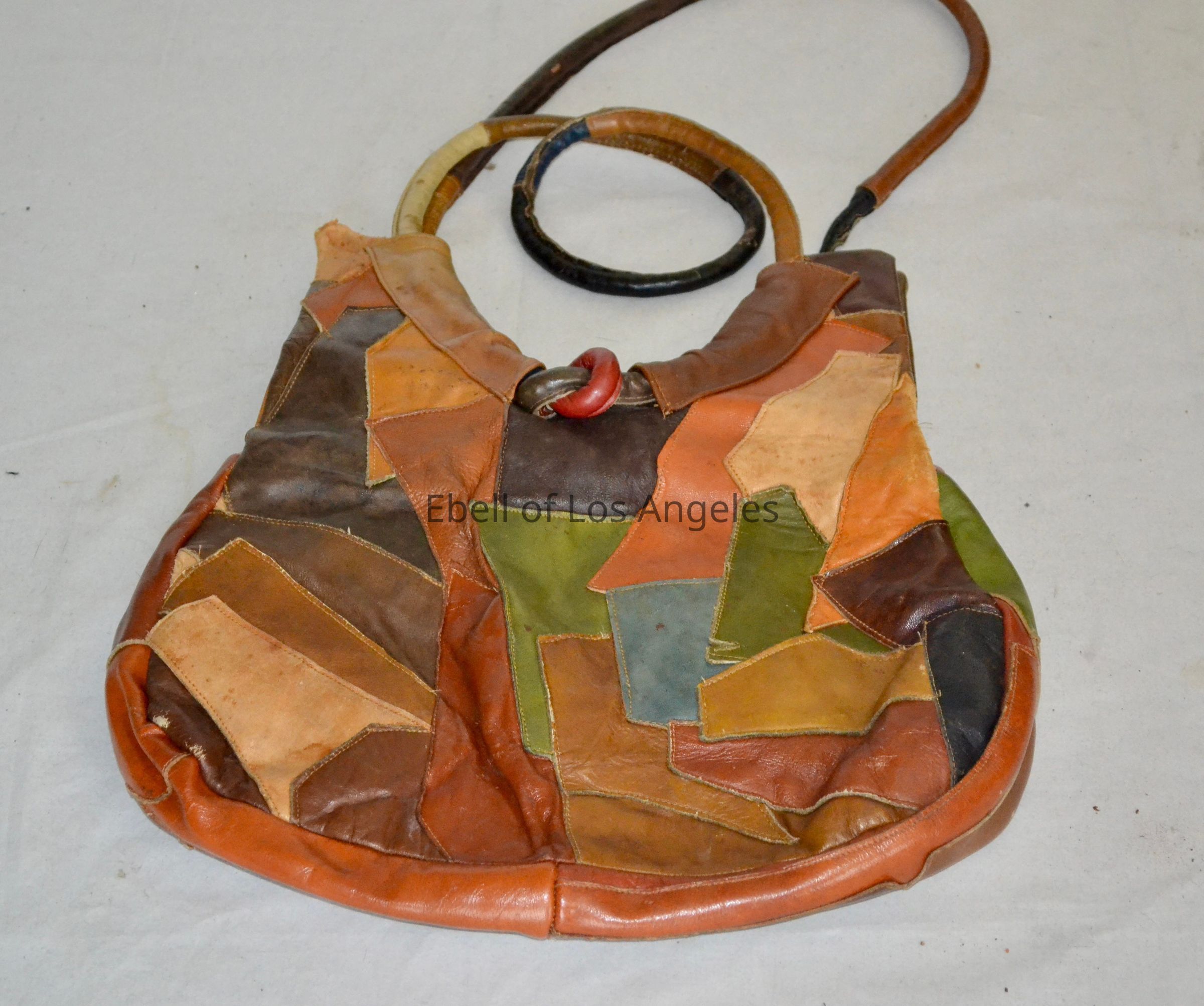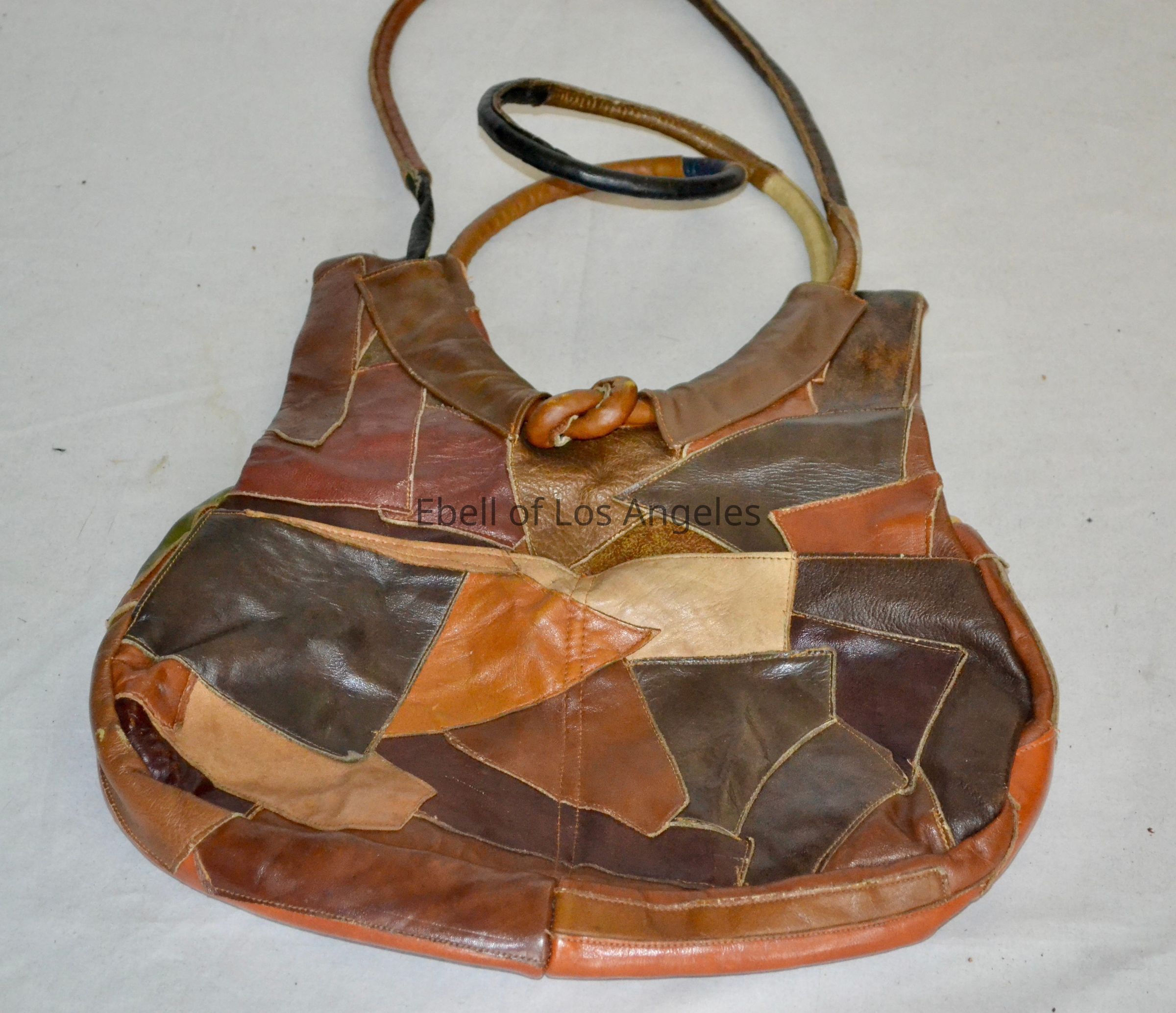 Leather patchwork hobo shoulder bag, neutral tones