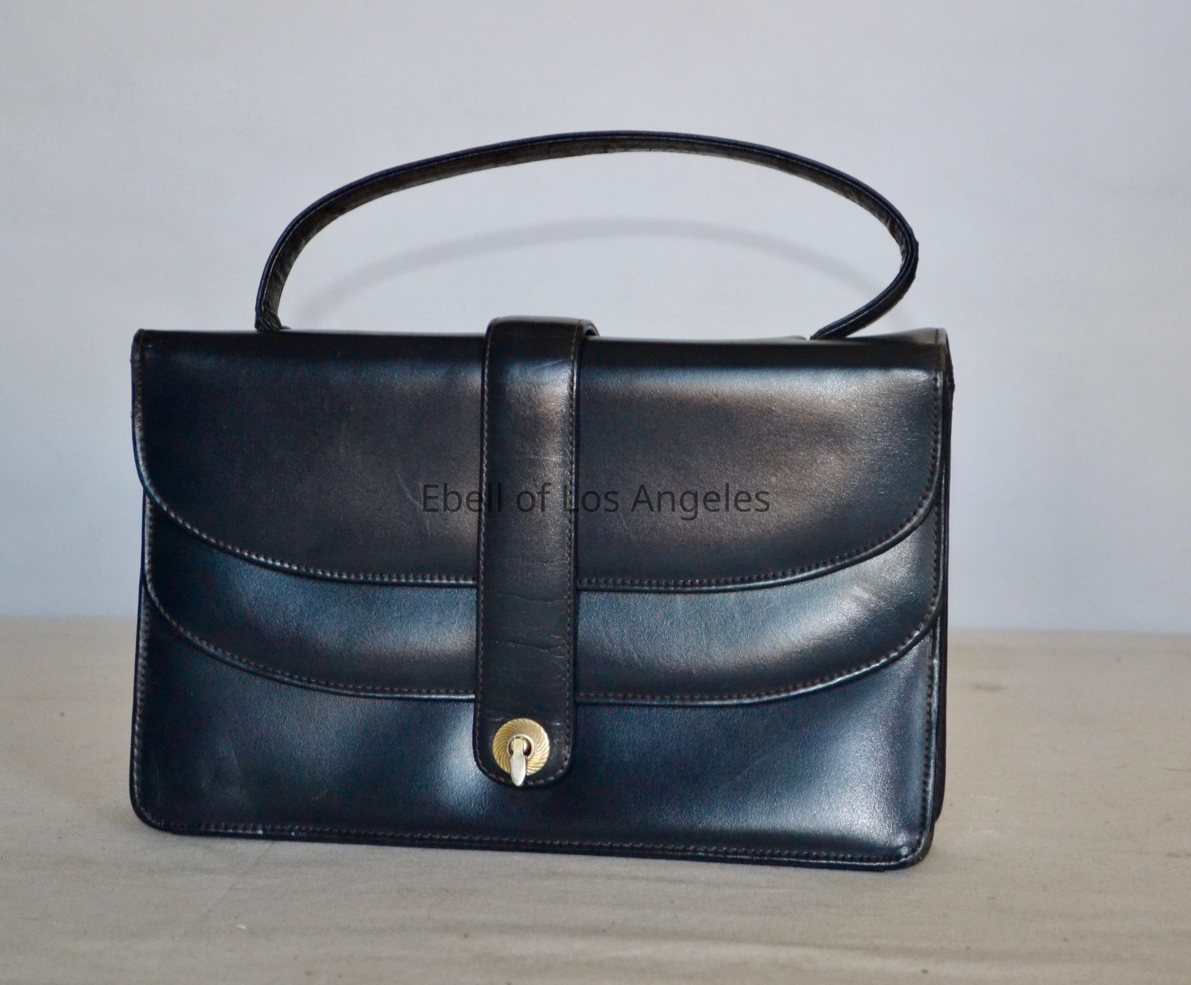 Double flap rigid rectangular bag, gold toggle clasp, leather strapEntry/Object ID
