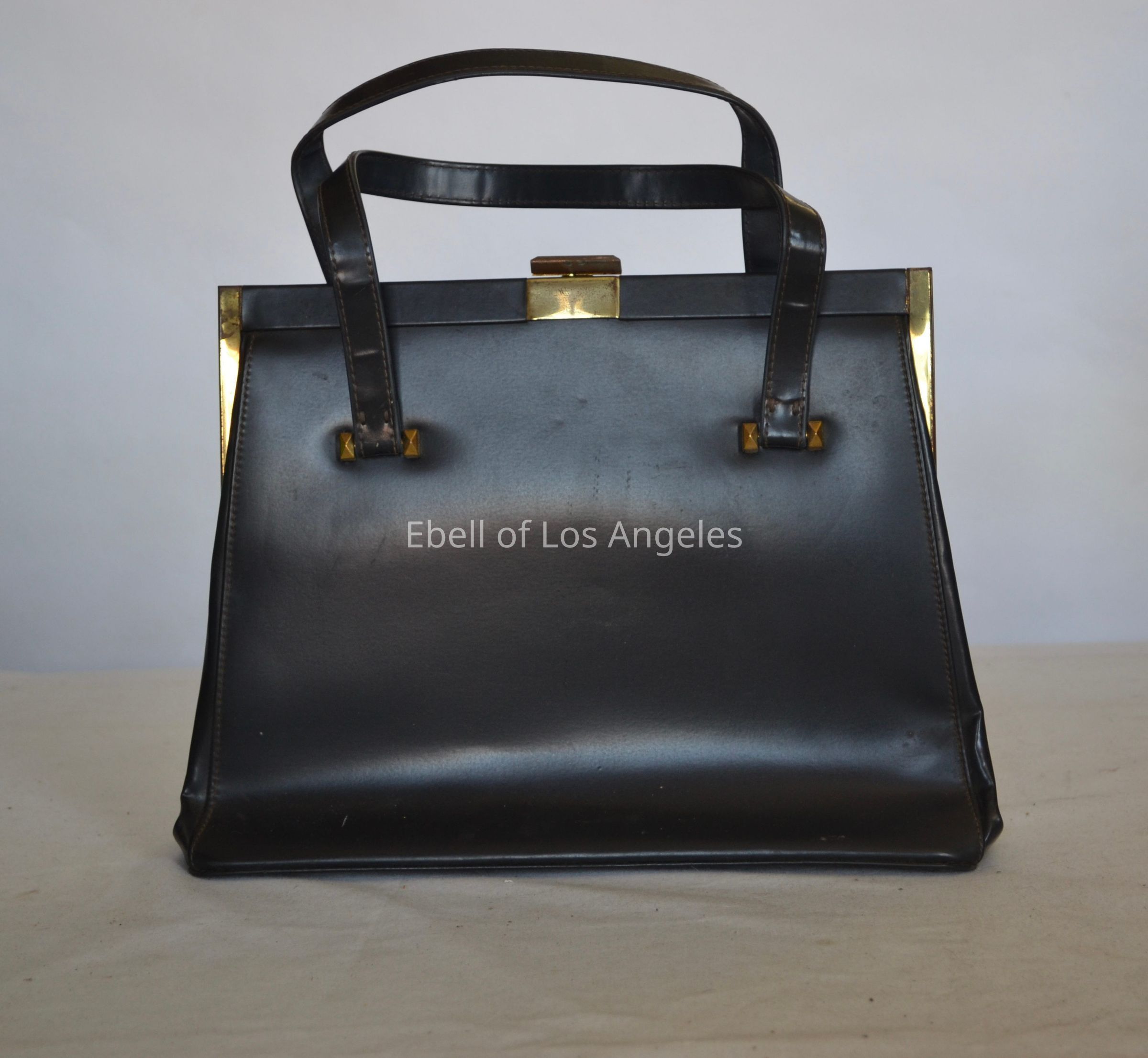 Leather rigid bag, lined in soft leather, self handle, gold hardware, claspEntry/Object ID