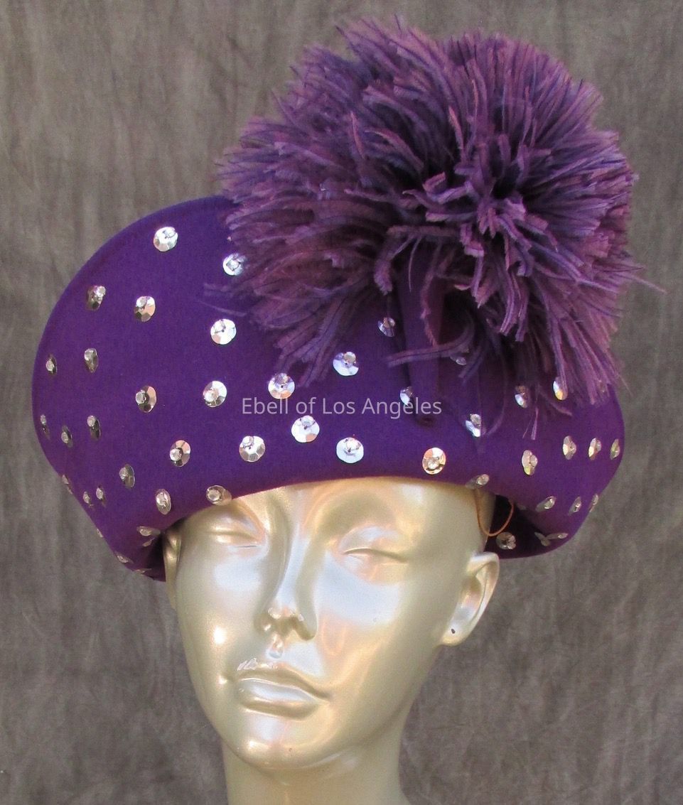 Purple hat studded with crystals and feather embellishmentEntry/Object ID