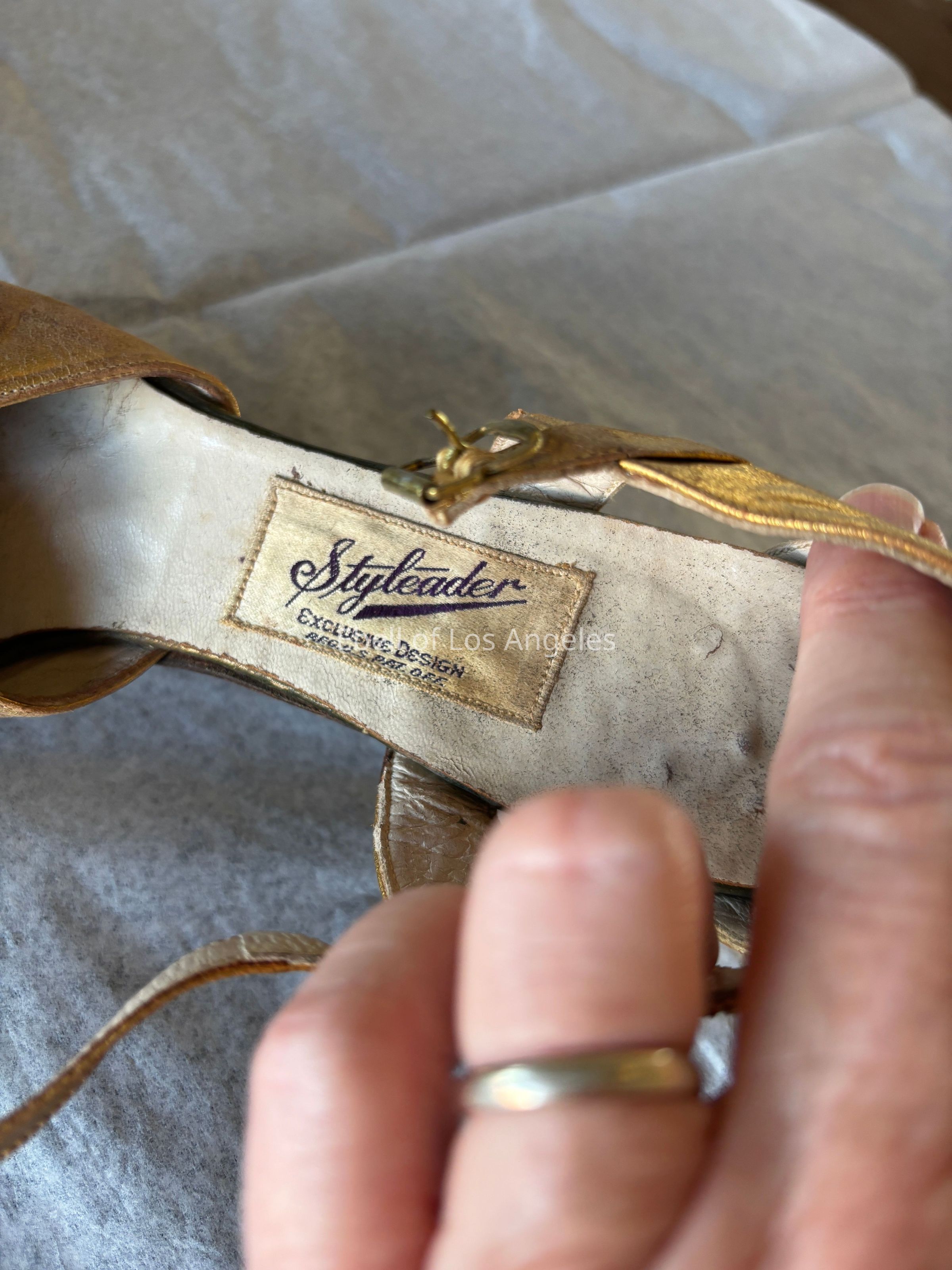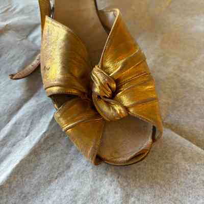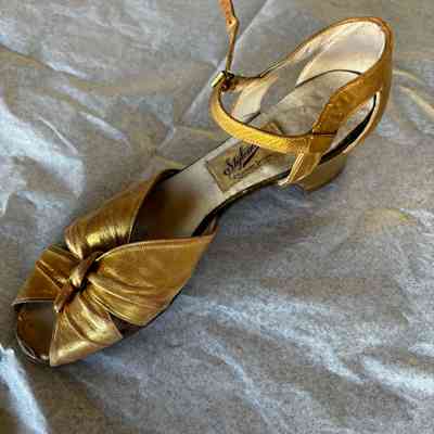 Shoes, Gold Low Heel Slide with Ankle StrapEntry/Object ID