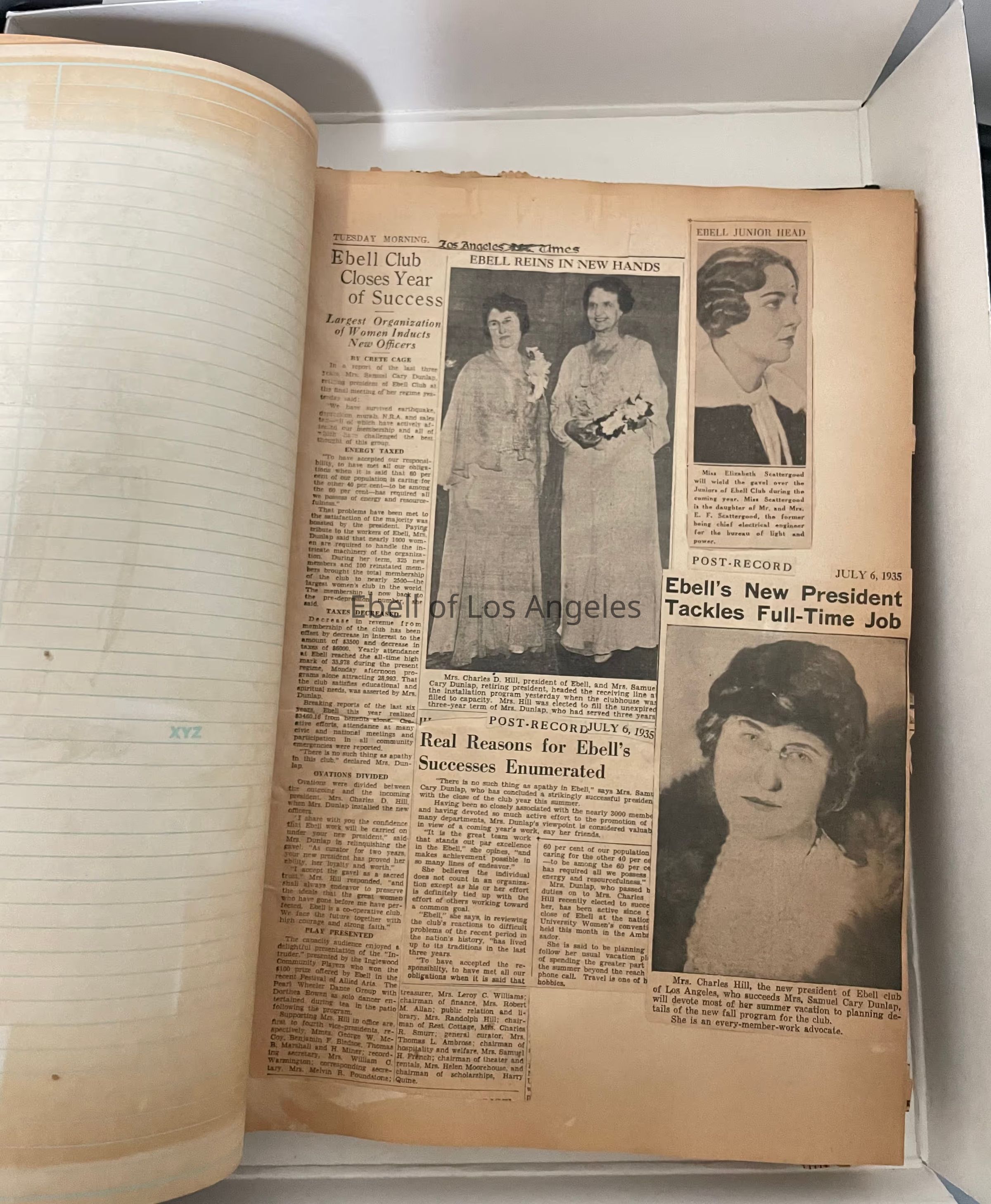 A scrapbook of press clippings and newspaper pictures regarding the Ebell of Los Angeles and its members. The contents of the scrapbook cover the years 1935 to 1936