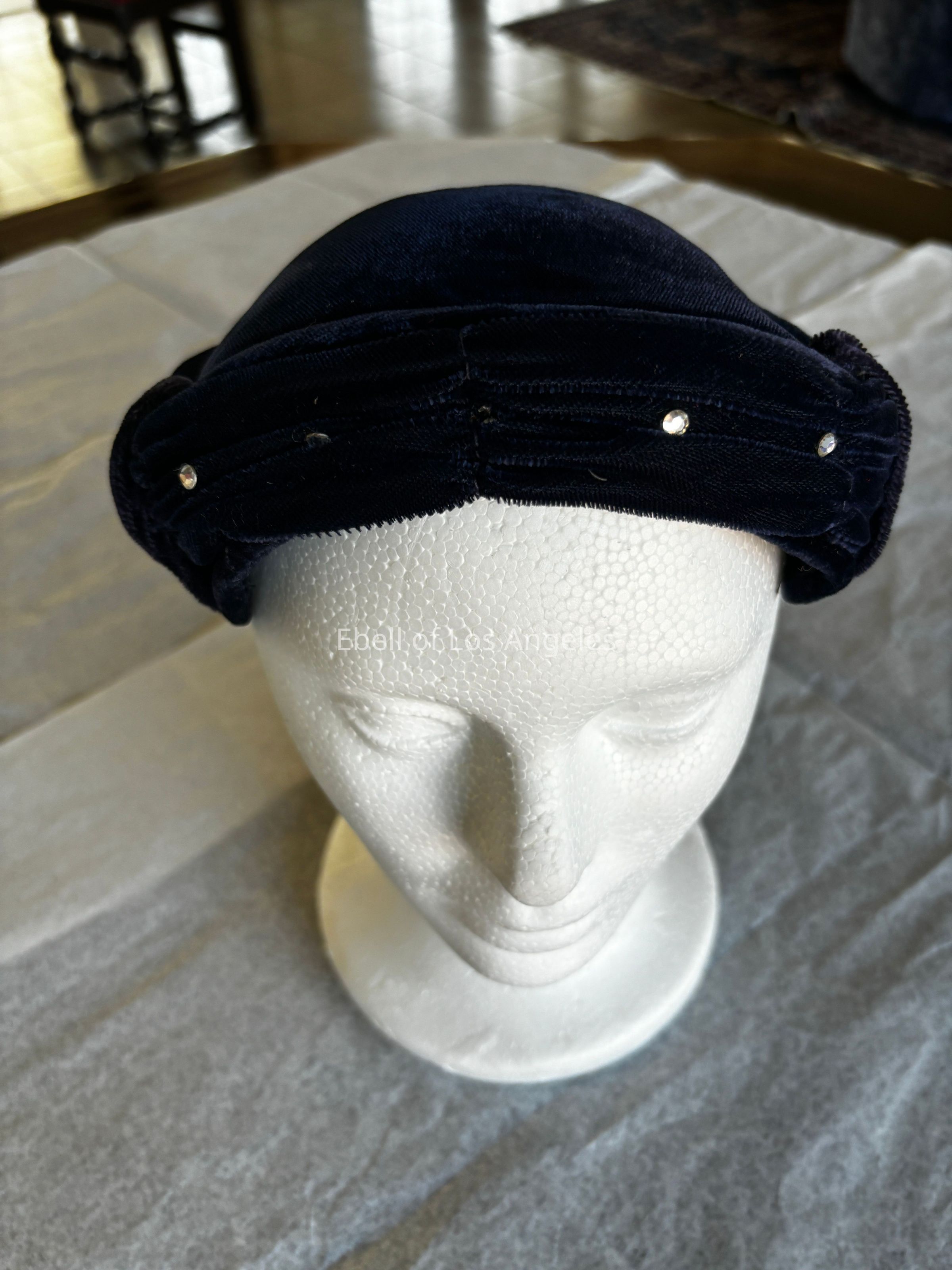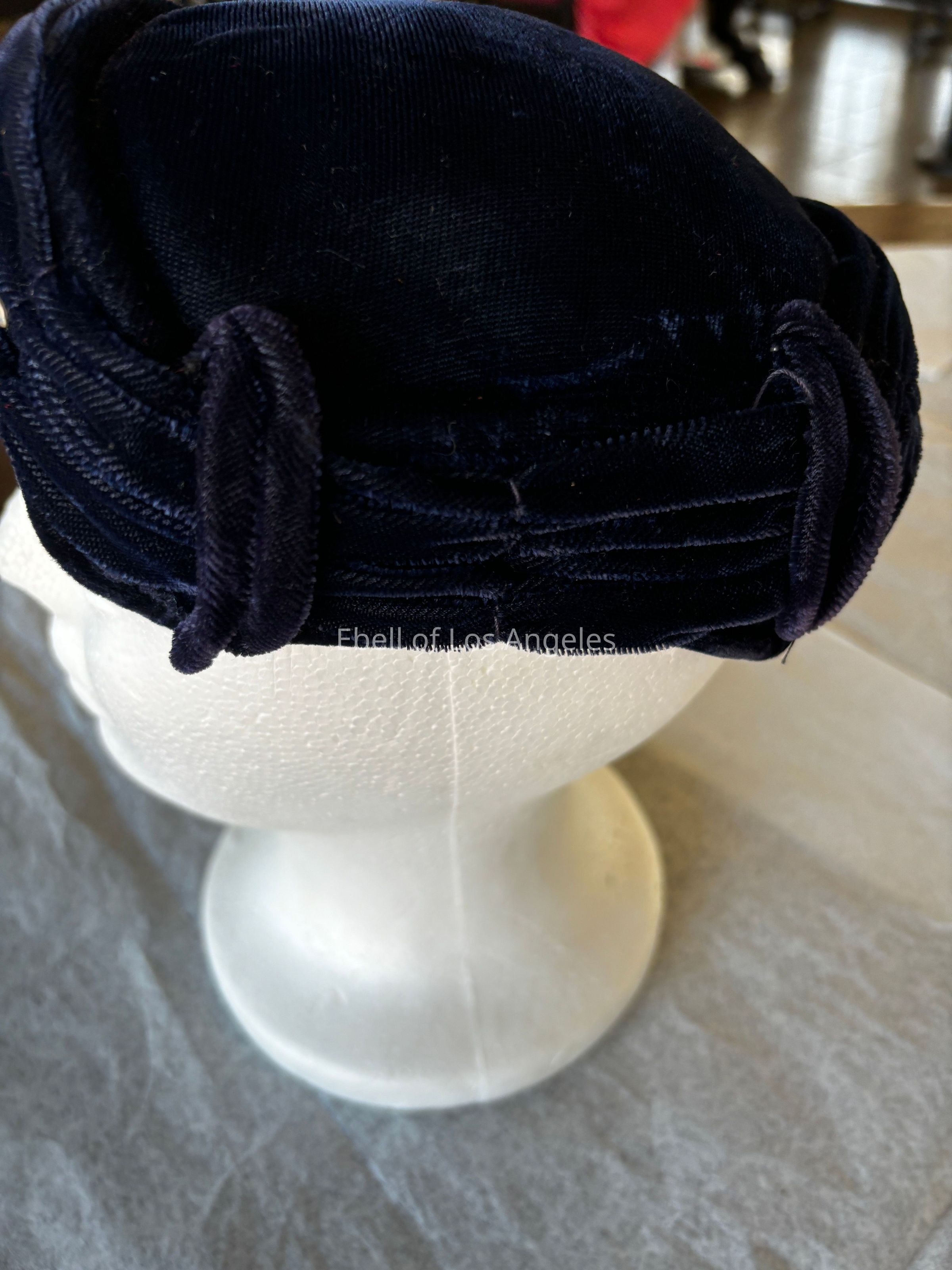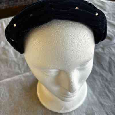 Hat, Blue Velvet Cocktail Hat 1950's