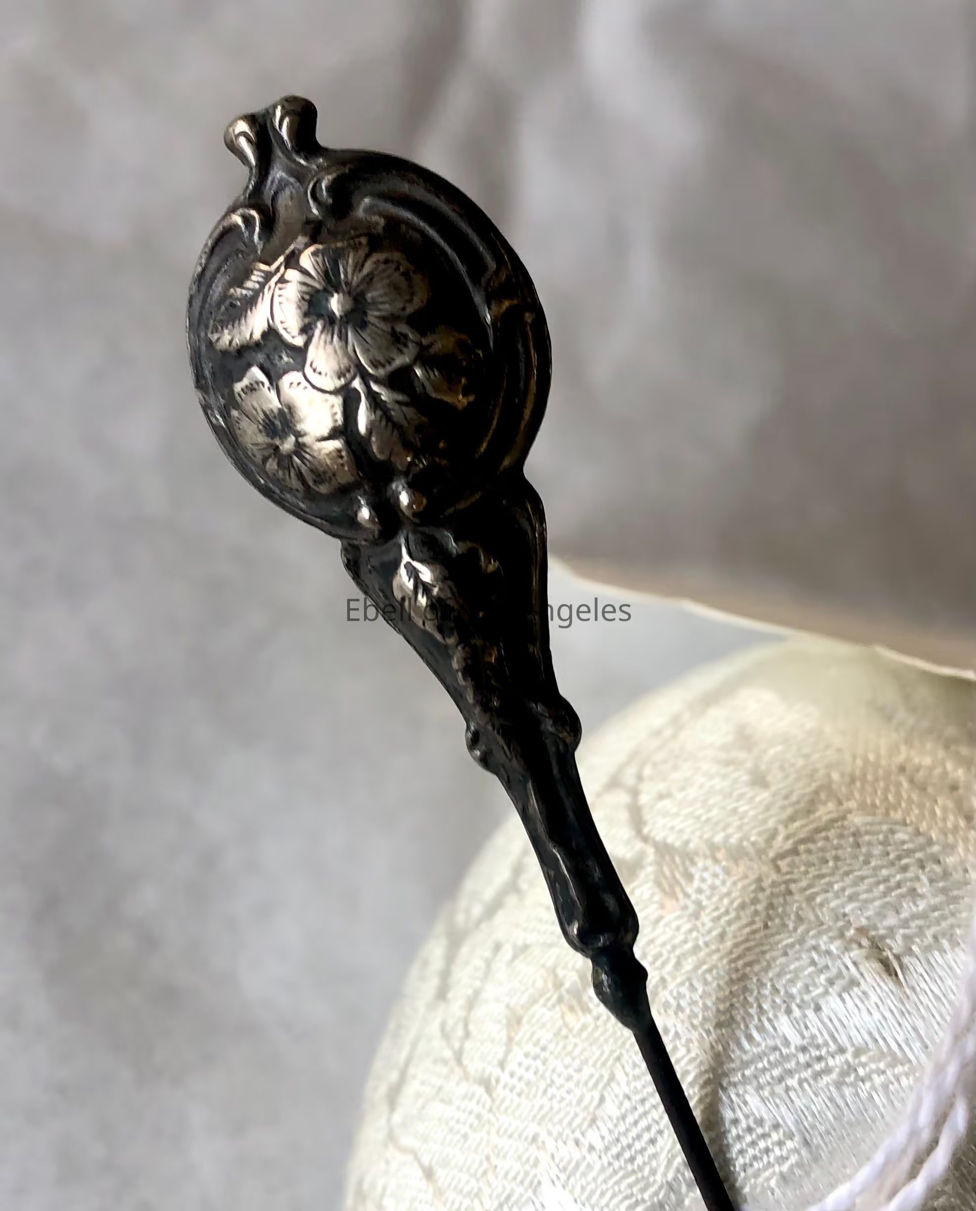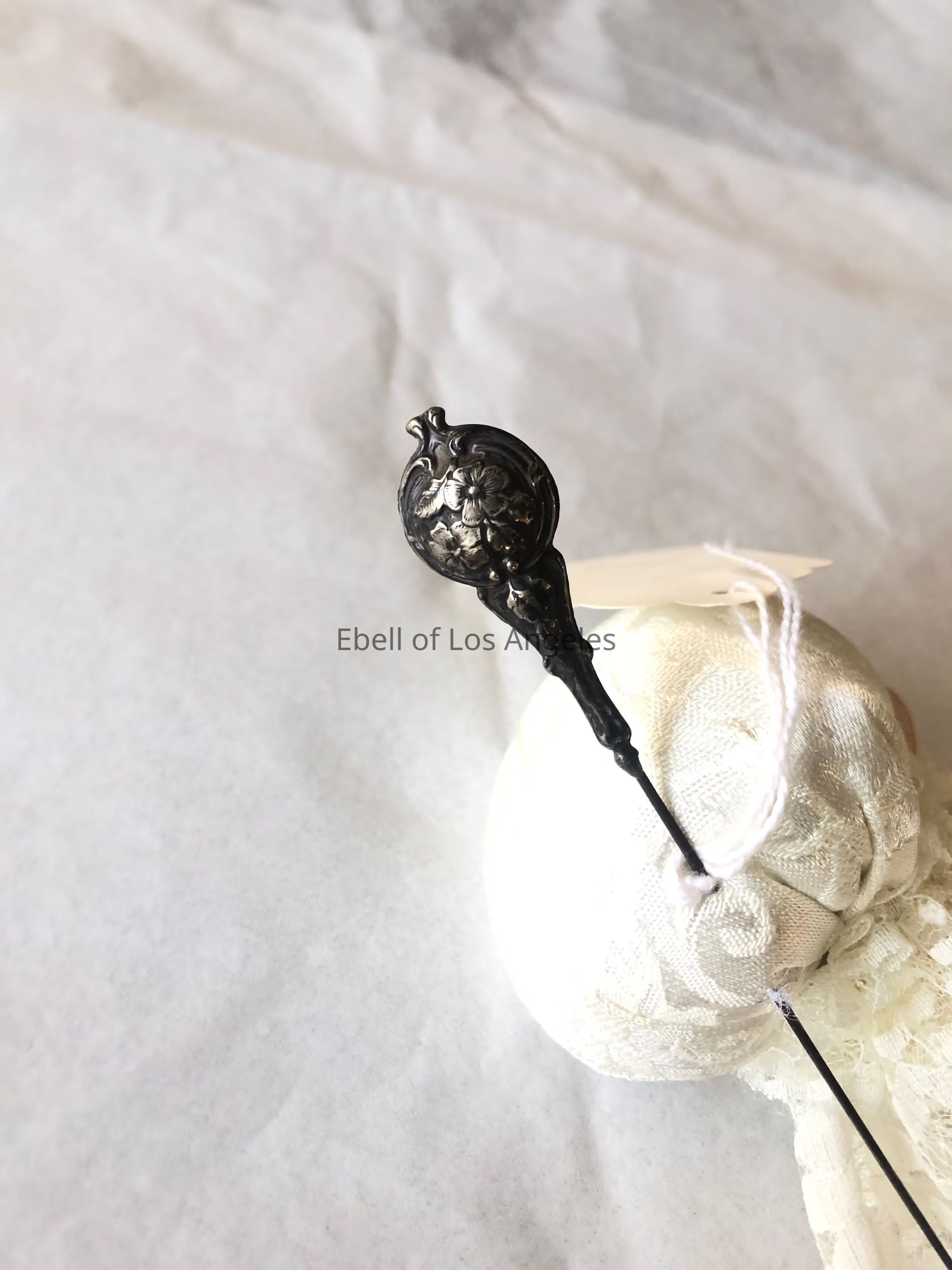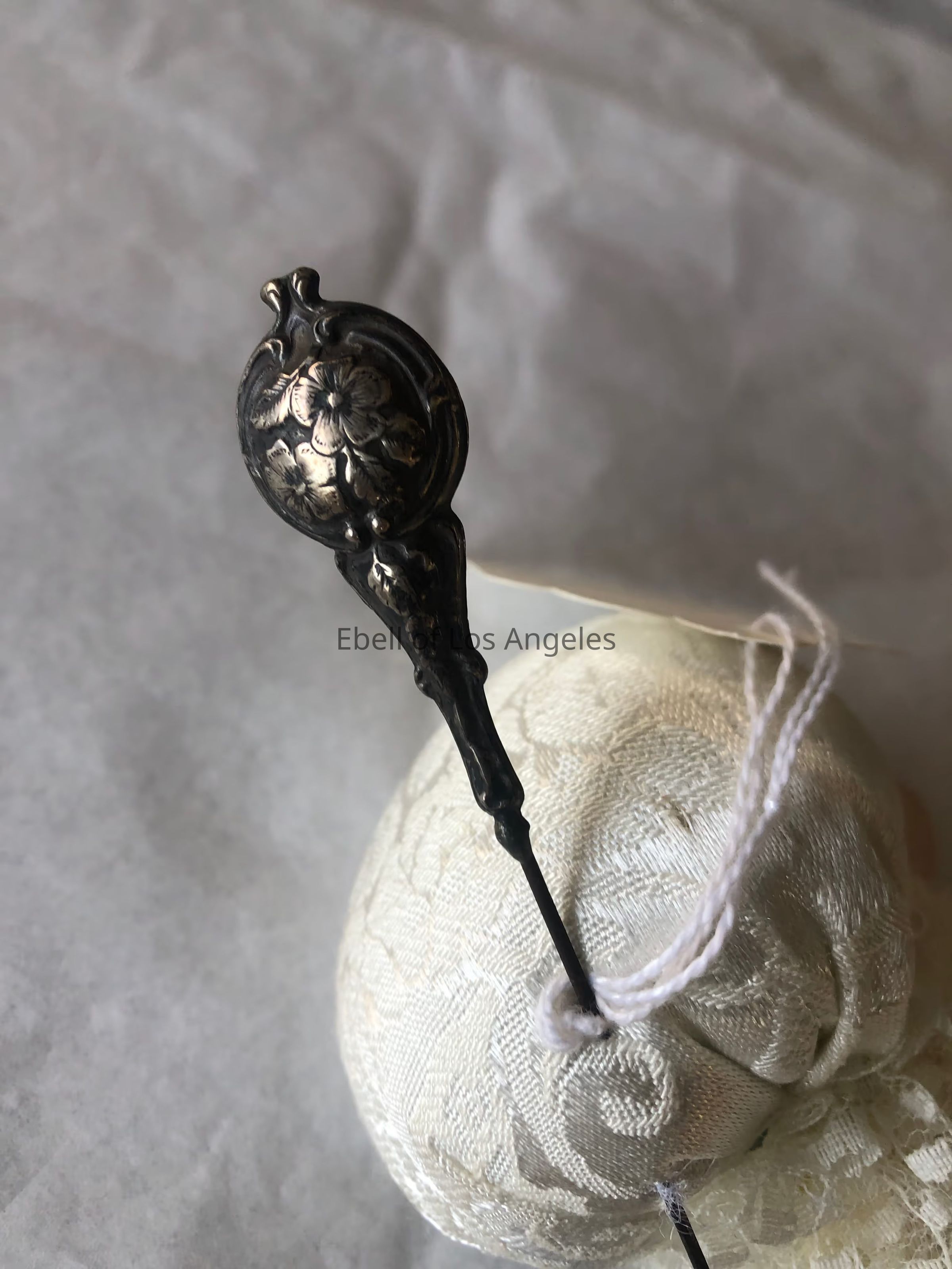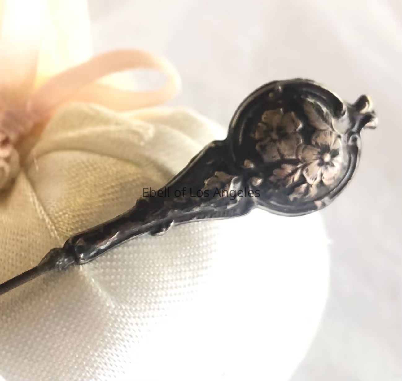 Hat Pin, Hollow Silver Bubble with Two Flower Design