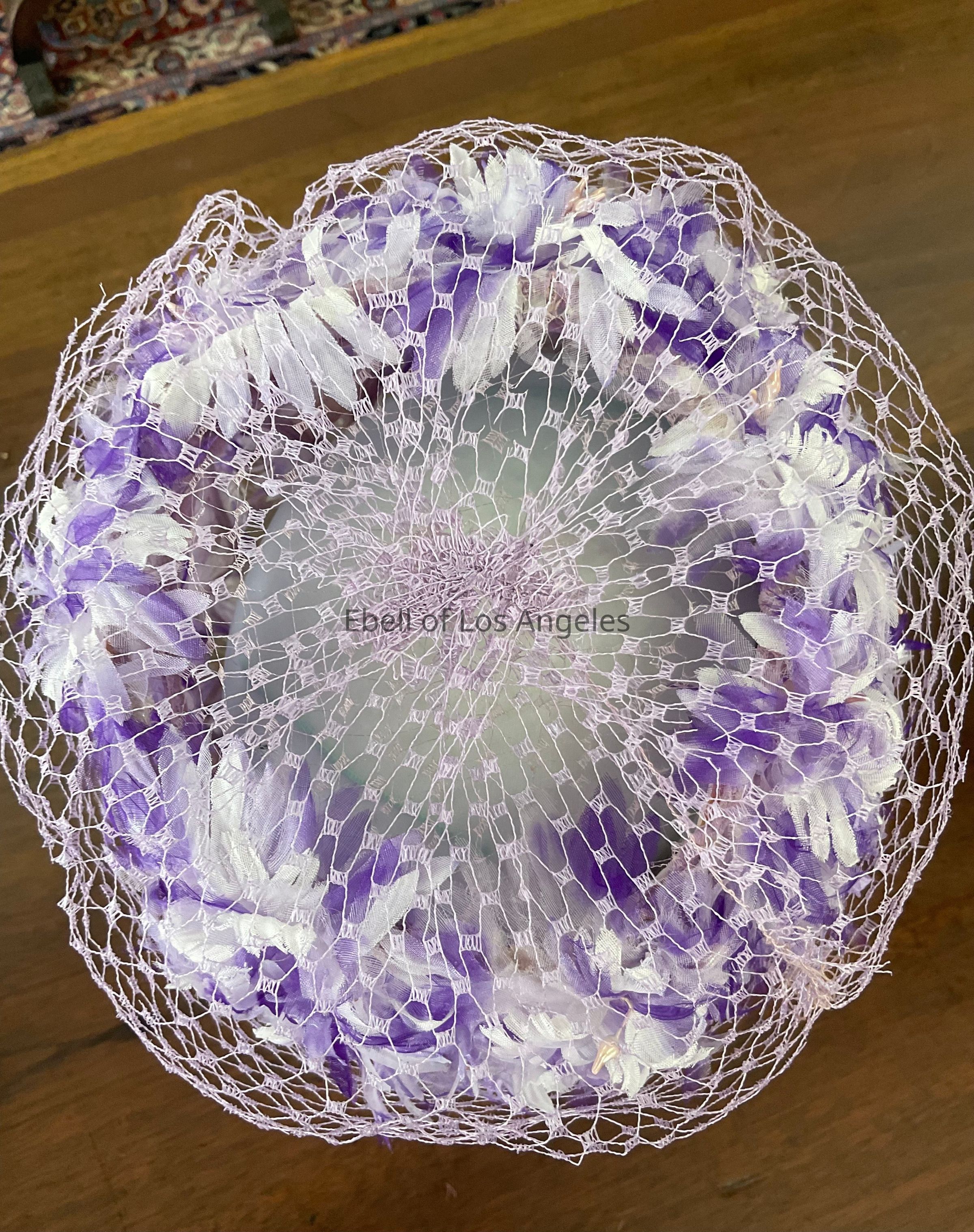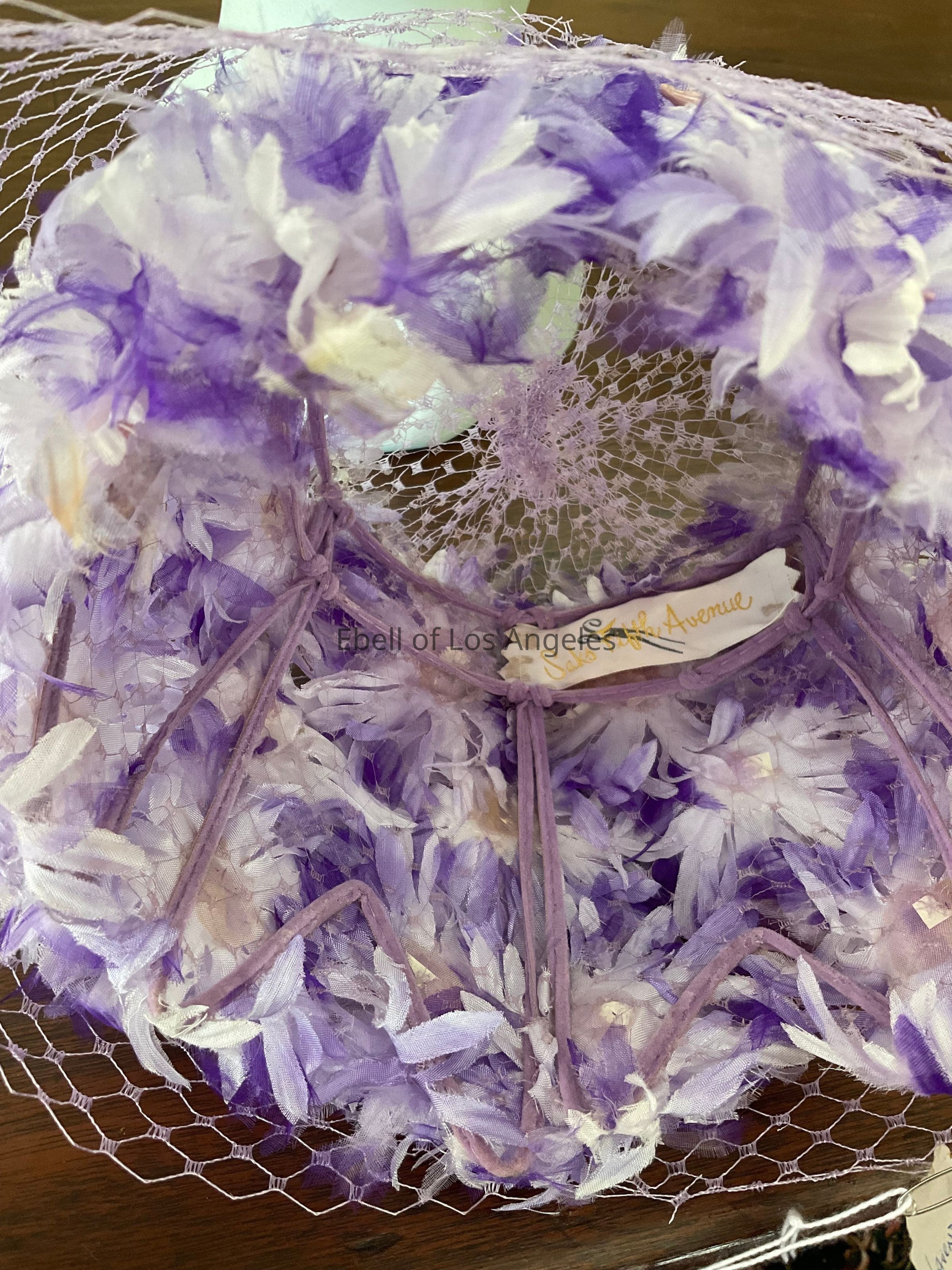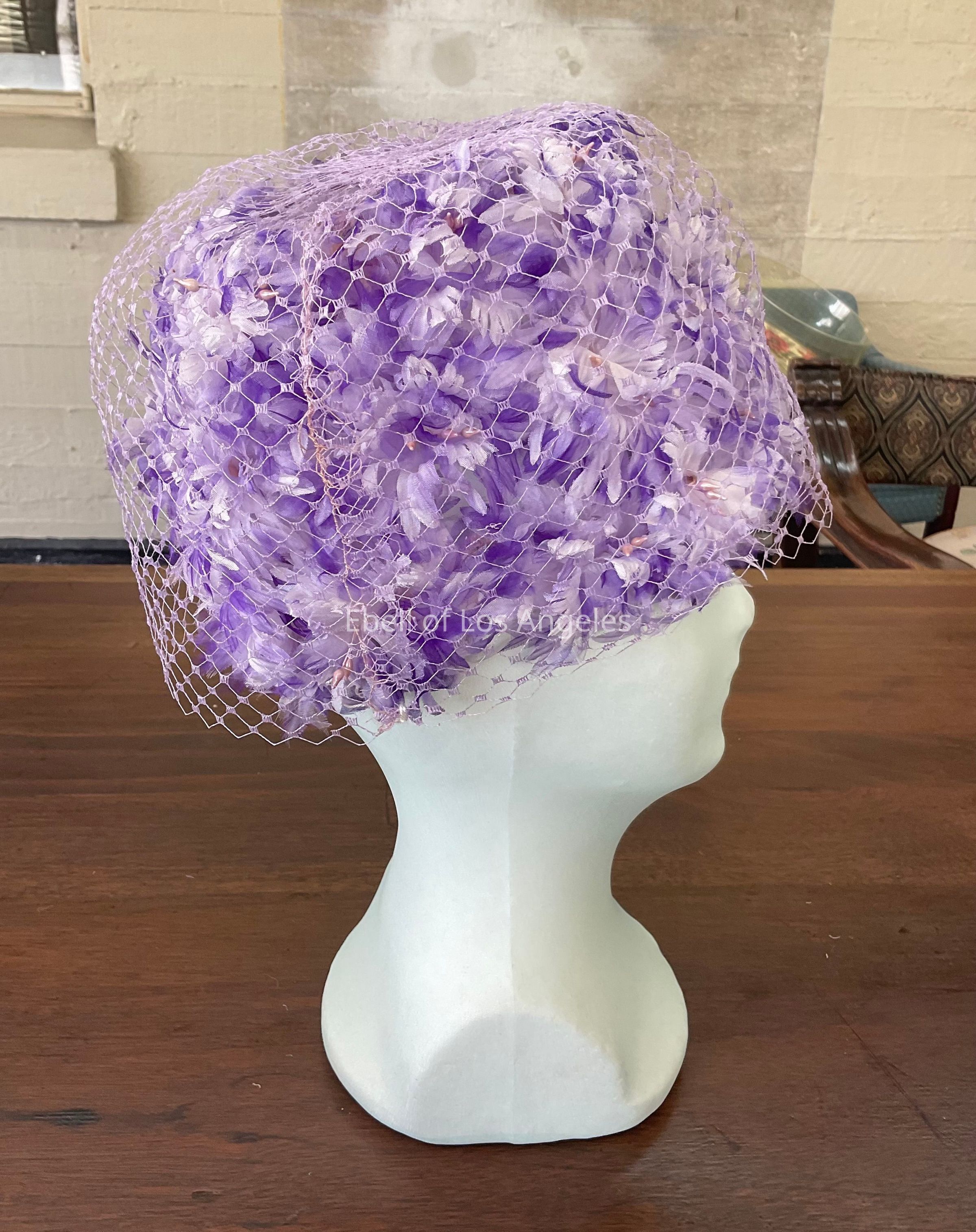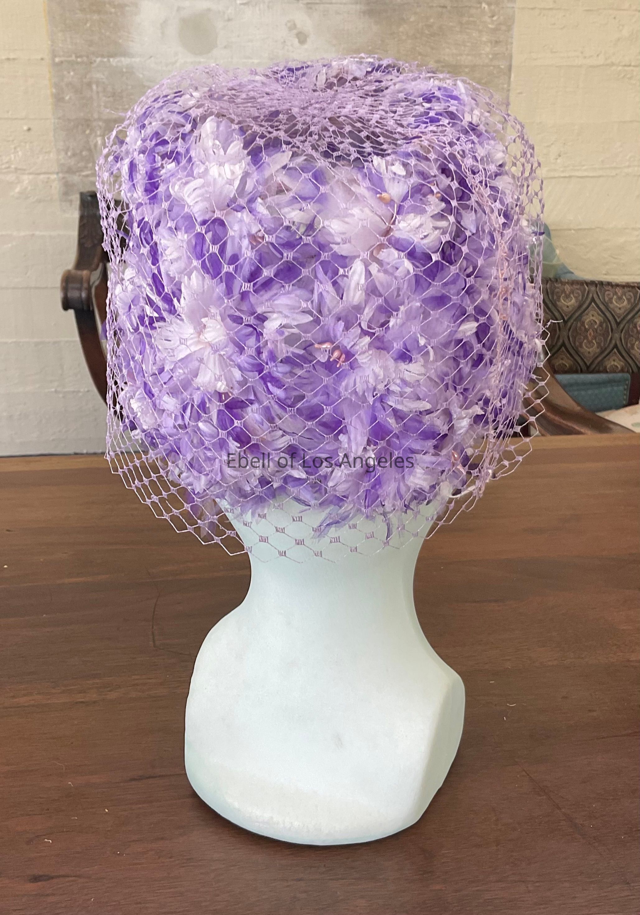 Mesh pillbox covered with purple flowers and a layer of Russian veilingCollection