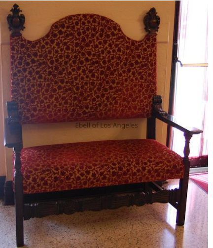 Pair of Baroque style carved walnut settees with arched back and carved finials and stretchers.