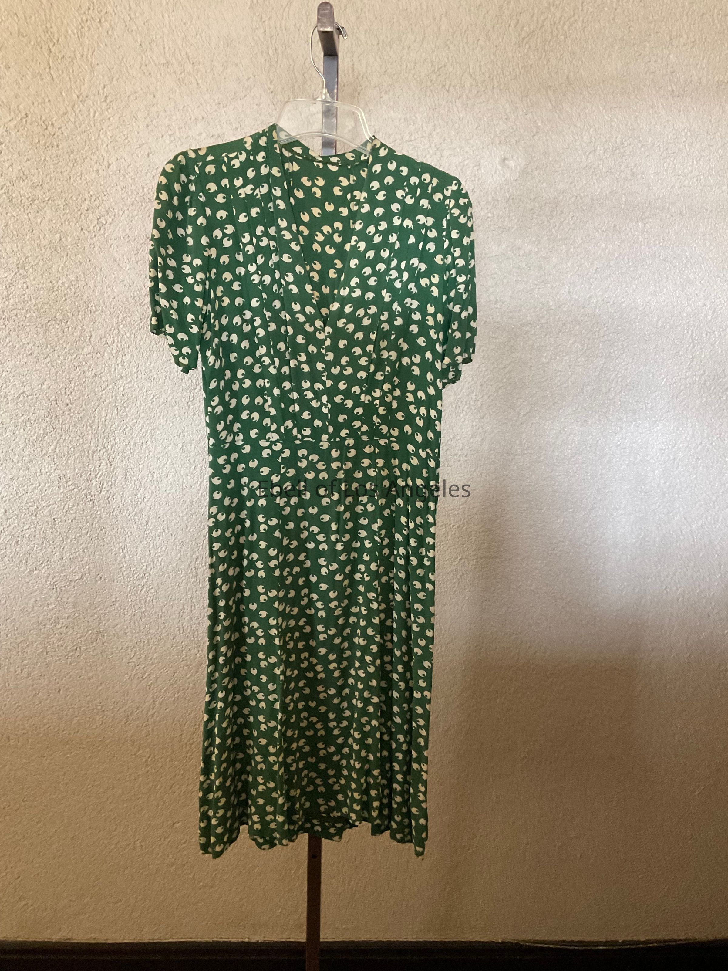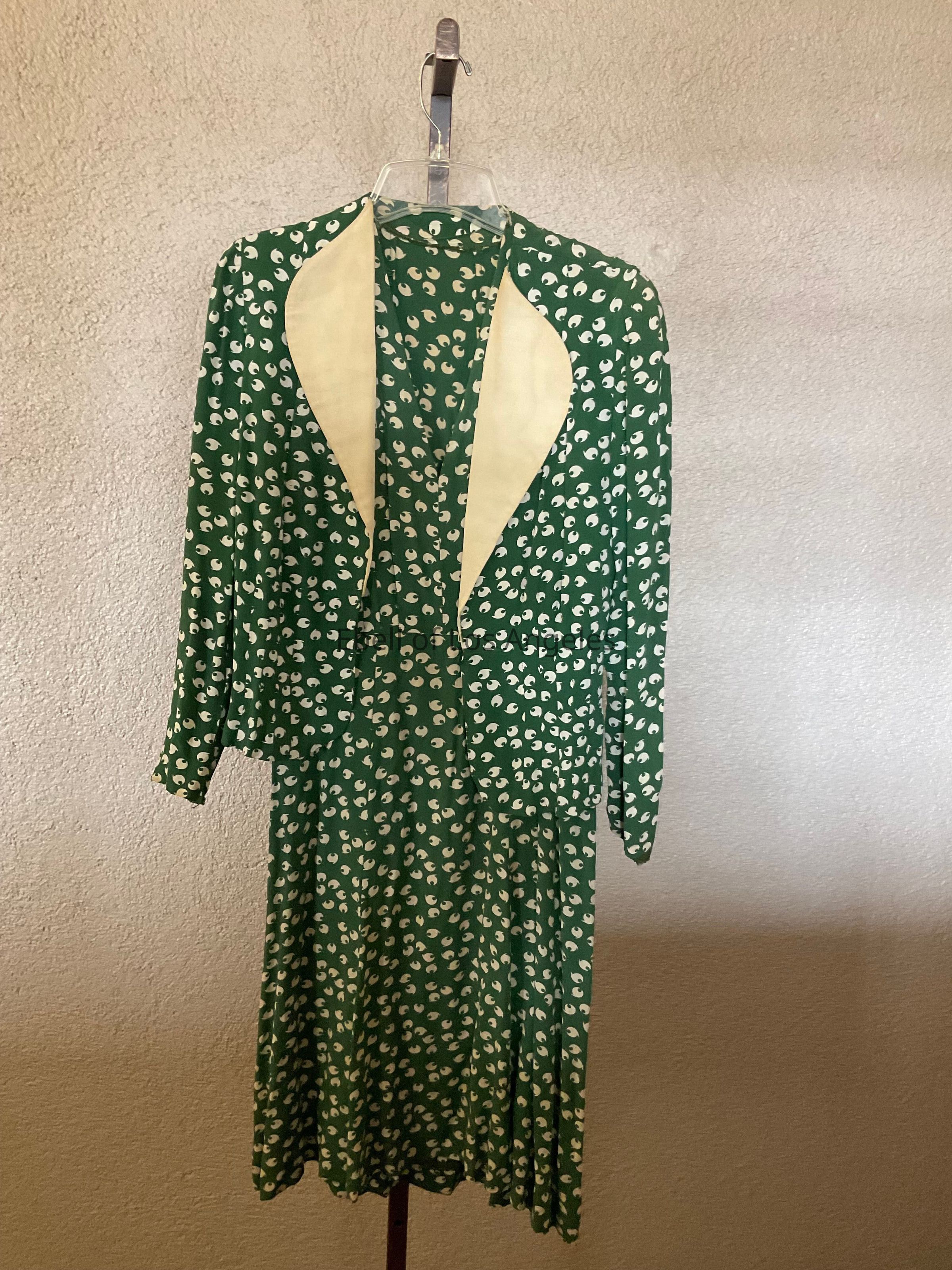 Patterned short sleeve rayon dress and matching jacket with cream lapels