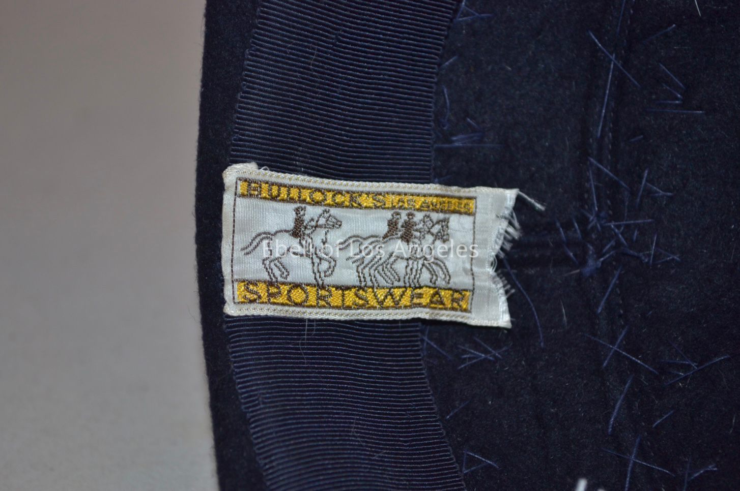 Navy cocktail hat with gold braid trim and Russian veilingEntry/Object ID