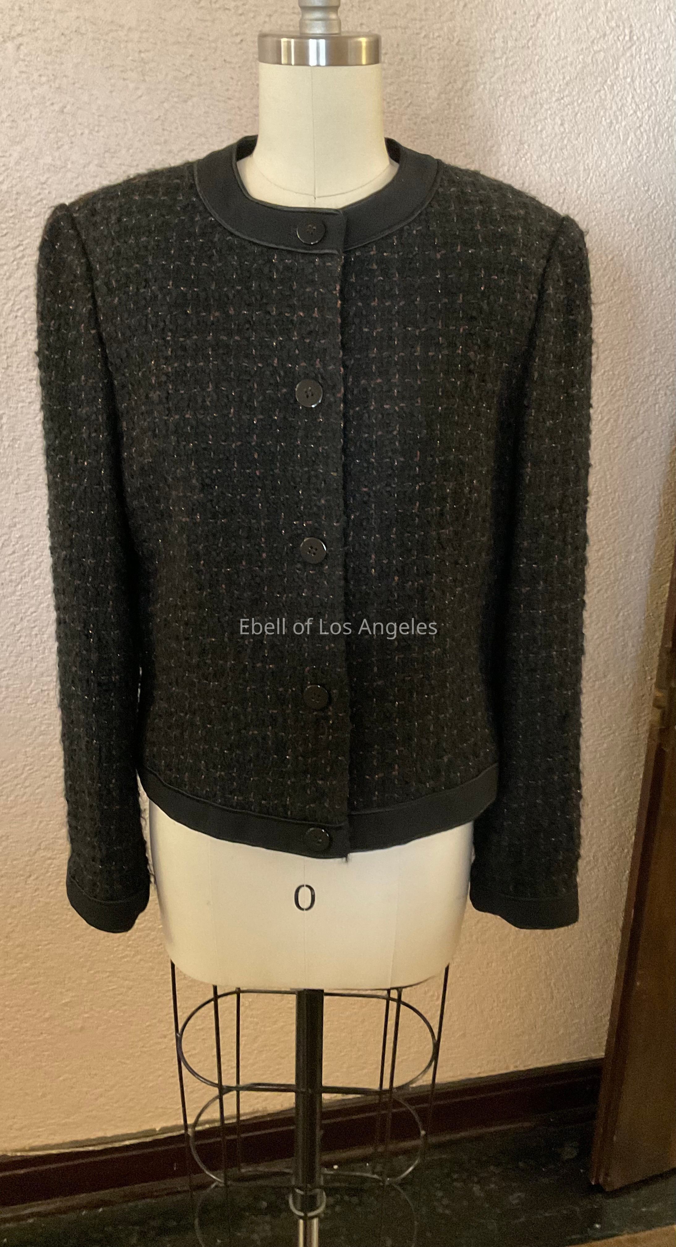 Collarless jacket with contrast band at neck, sleeve hem and jacket hem, 5 buttonsEntry/Object ID