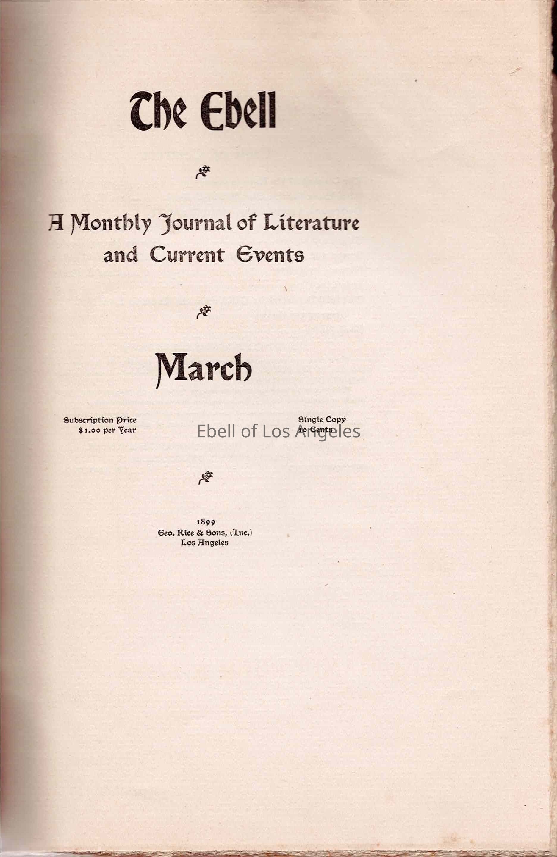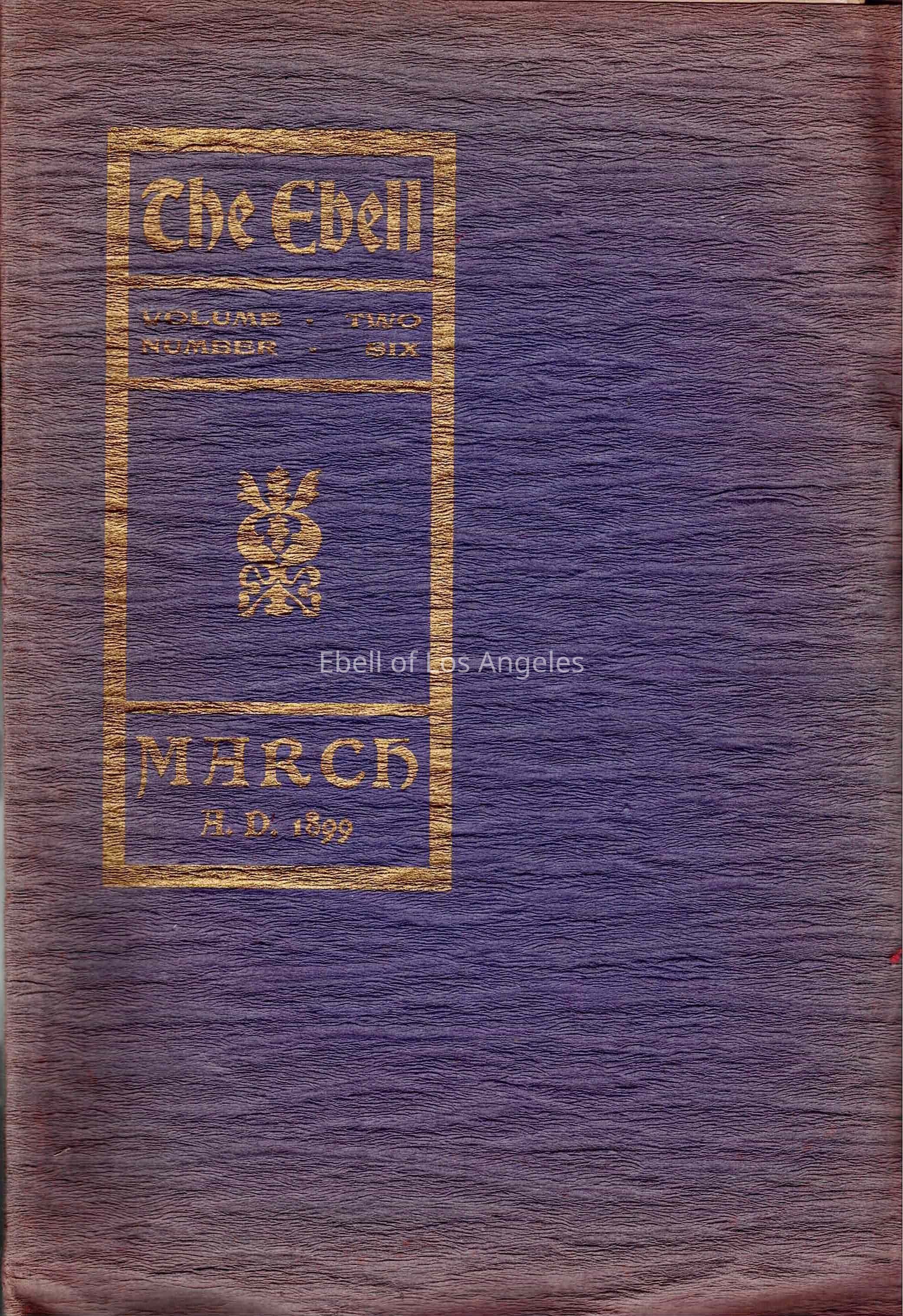 The Ebell: A Monthly Journal on Literature and Current Events, Volume Two, Number Six published in March 1899. The journal contains poetry, fiction, and essays. Regular sections include "Among the Books," "It is like this," and Ebell Notes." Photos and illustrations accompany some of the sections. Front and back pages contain advertisements.Collection