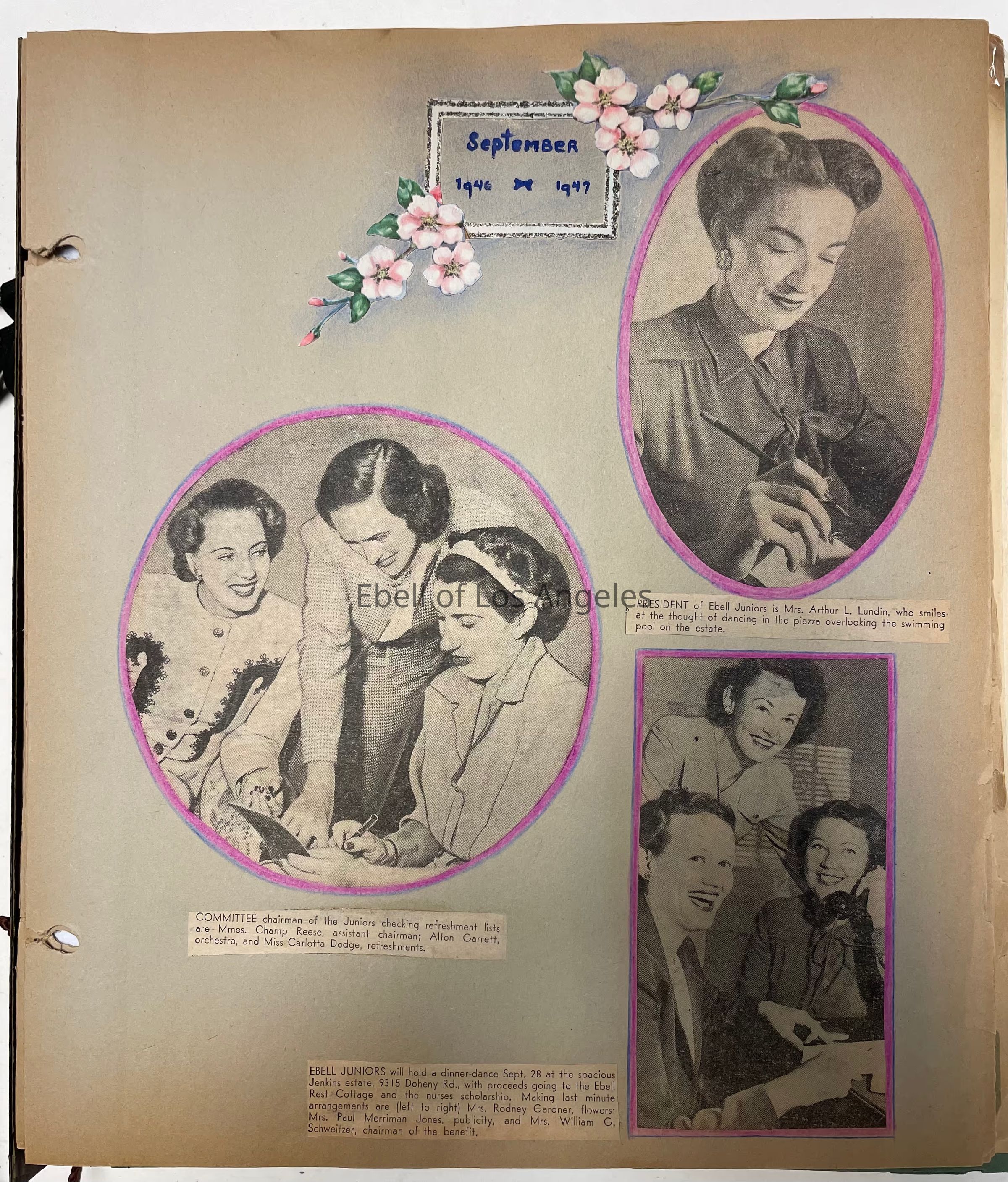 The Ebell Juniors scrapbook from 1946 to 1948. Includes newspaper clippings, photographs, correspondence, invitations, programs, and illustrations. Compiled by Helene Giffard and Winifred Jones.Collection