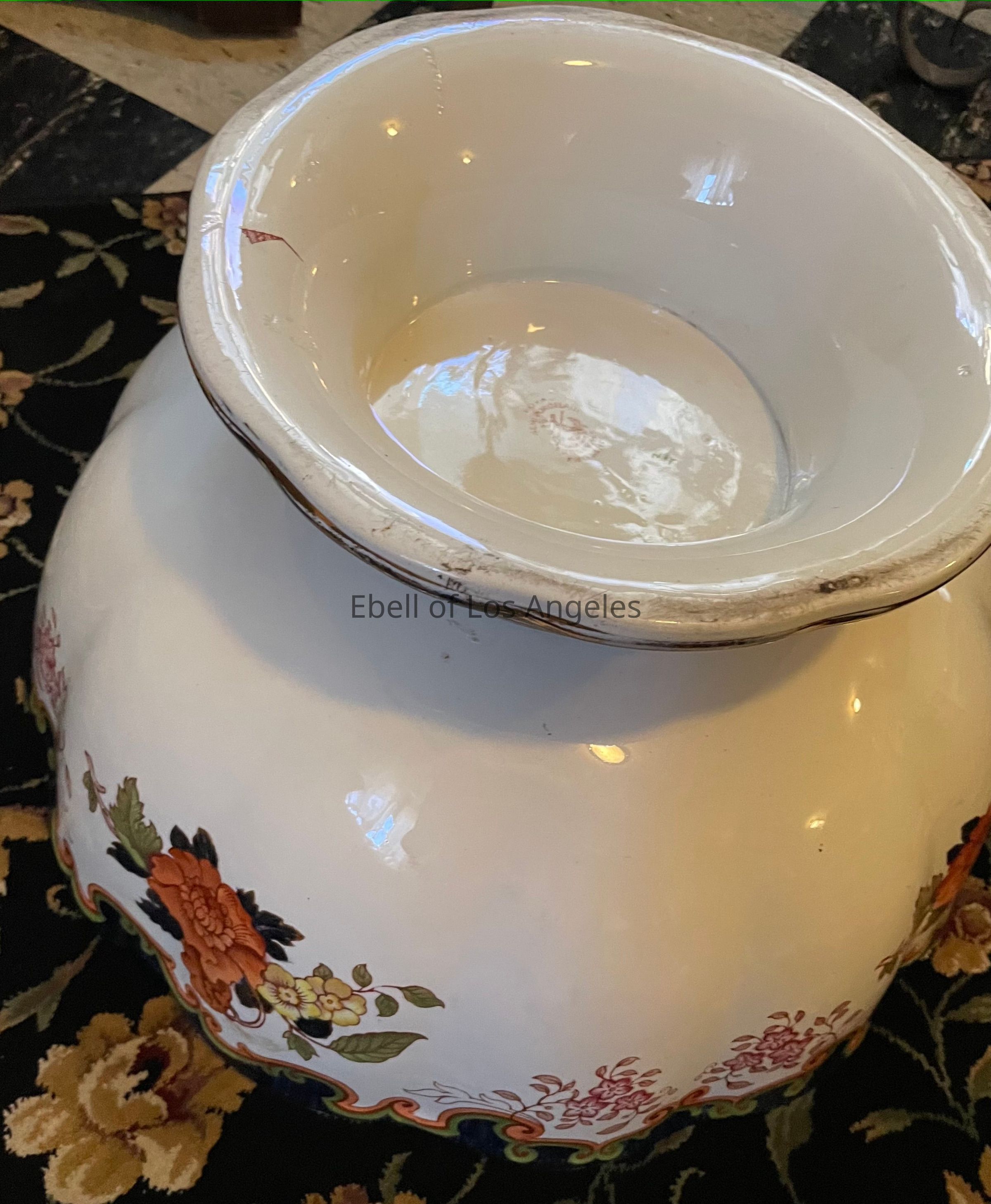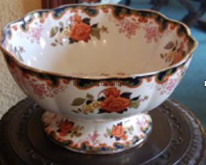 Furnivals punch bowl. Porcelain Royal bowl, Furnivals. Hand painted floral design on bowl and base. Furnivals, Staffordshire, UK 19th century.