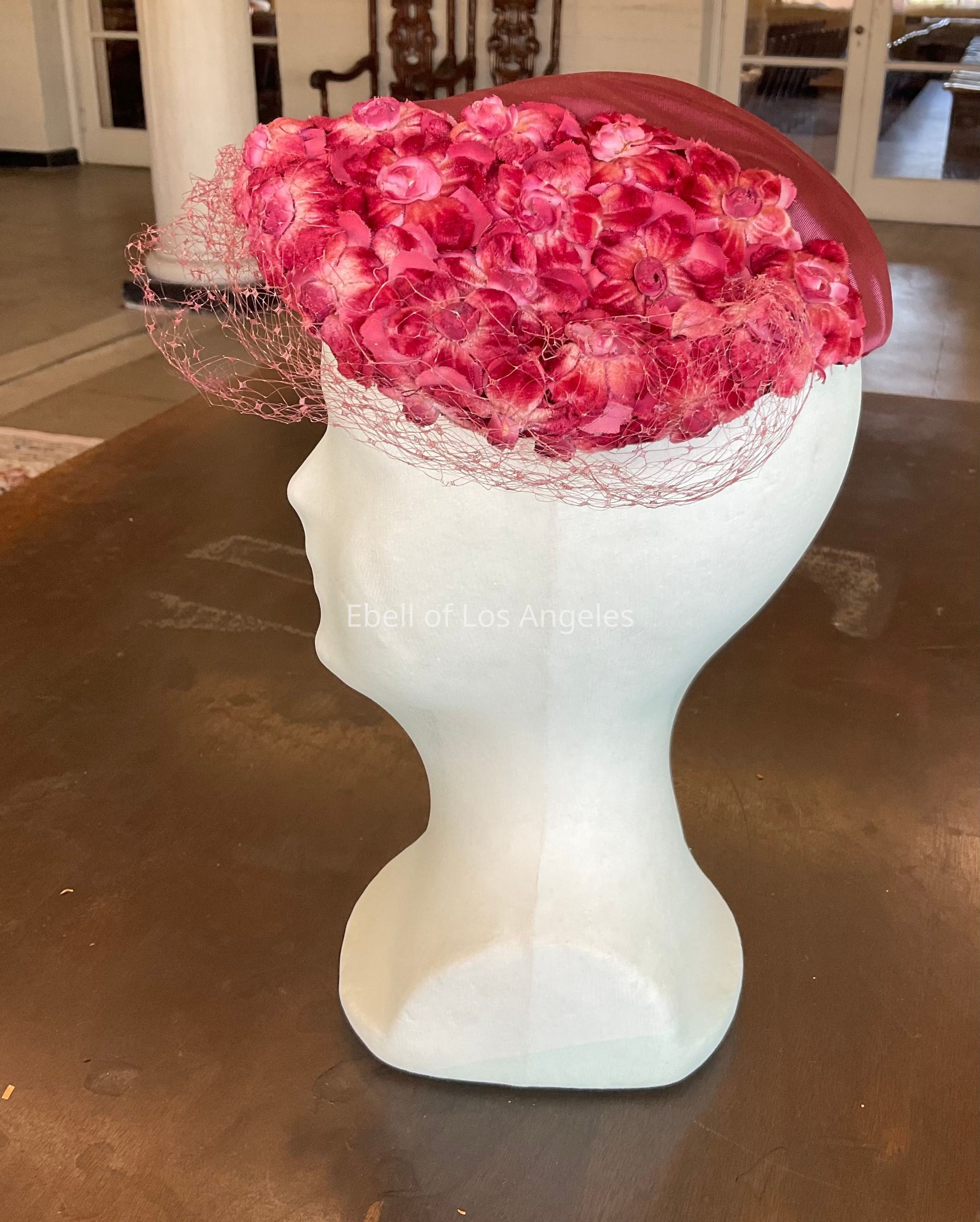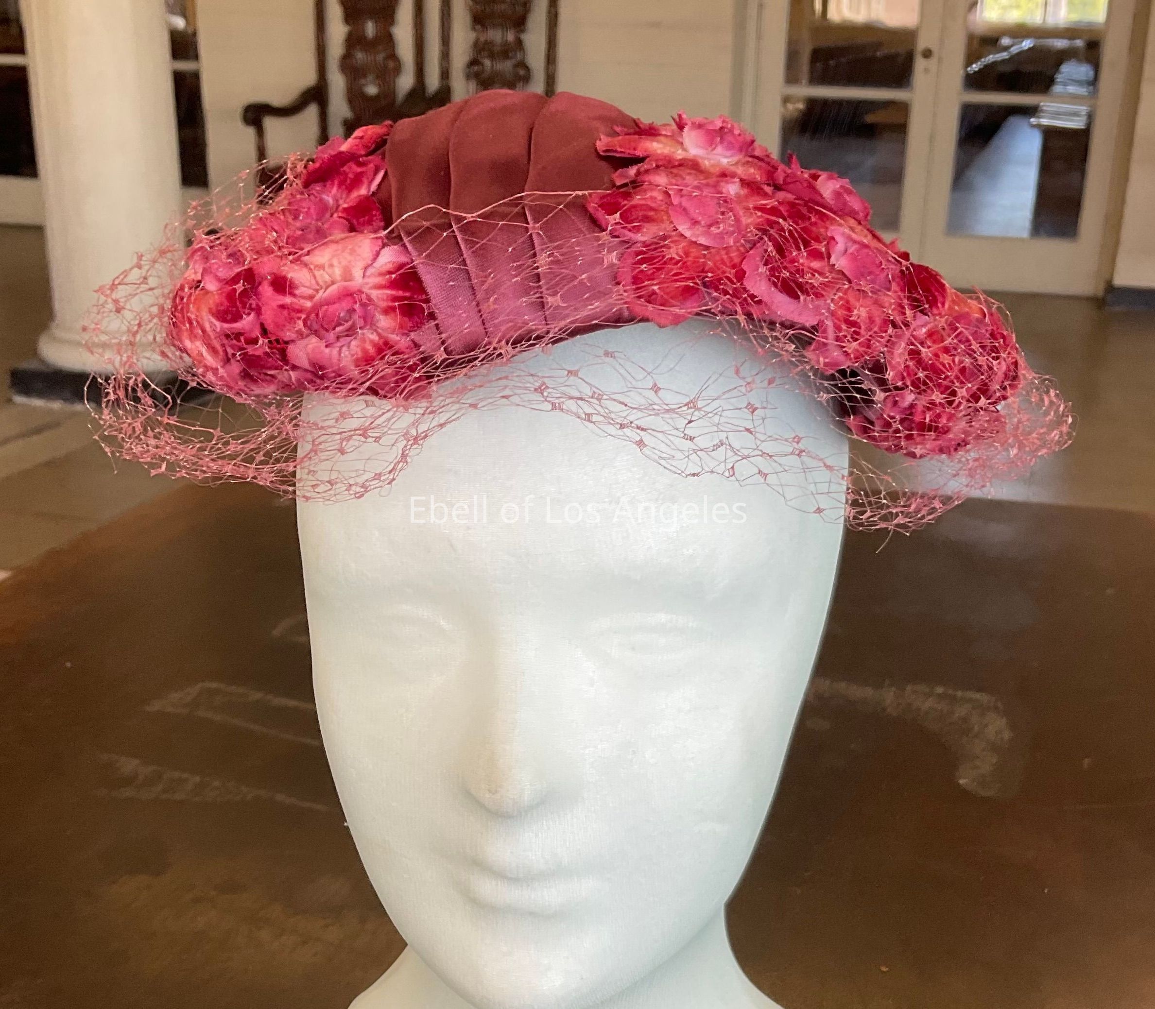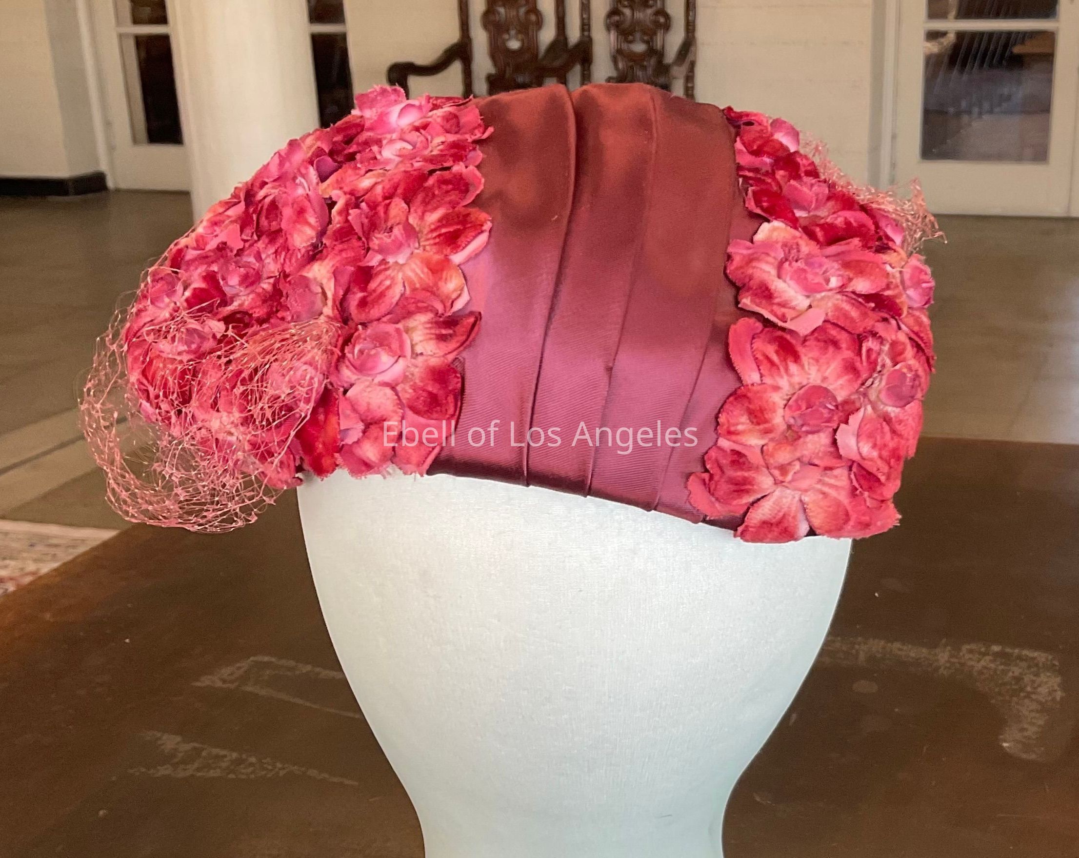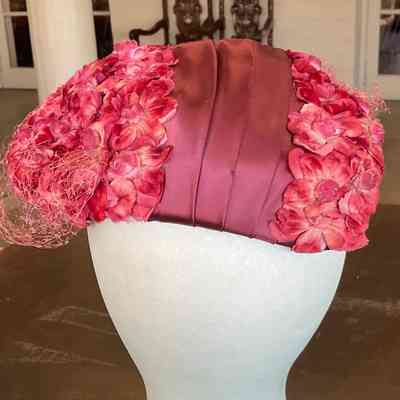 Flower covered casque with pleated satin detail and veilEntry/Object ID