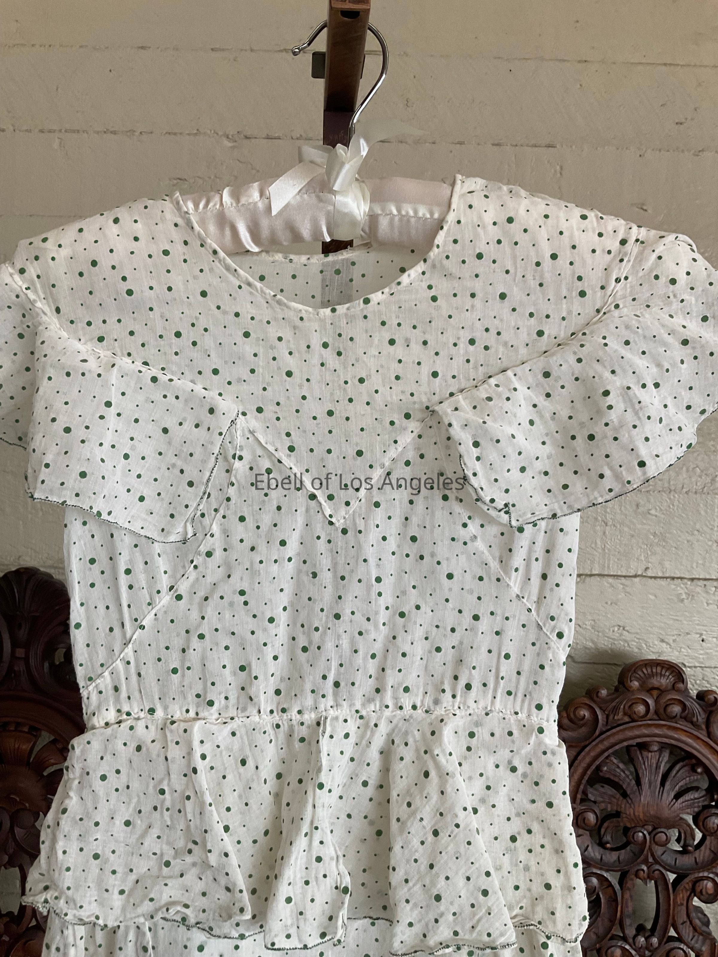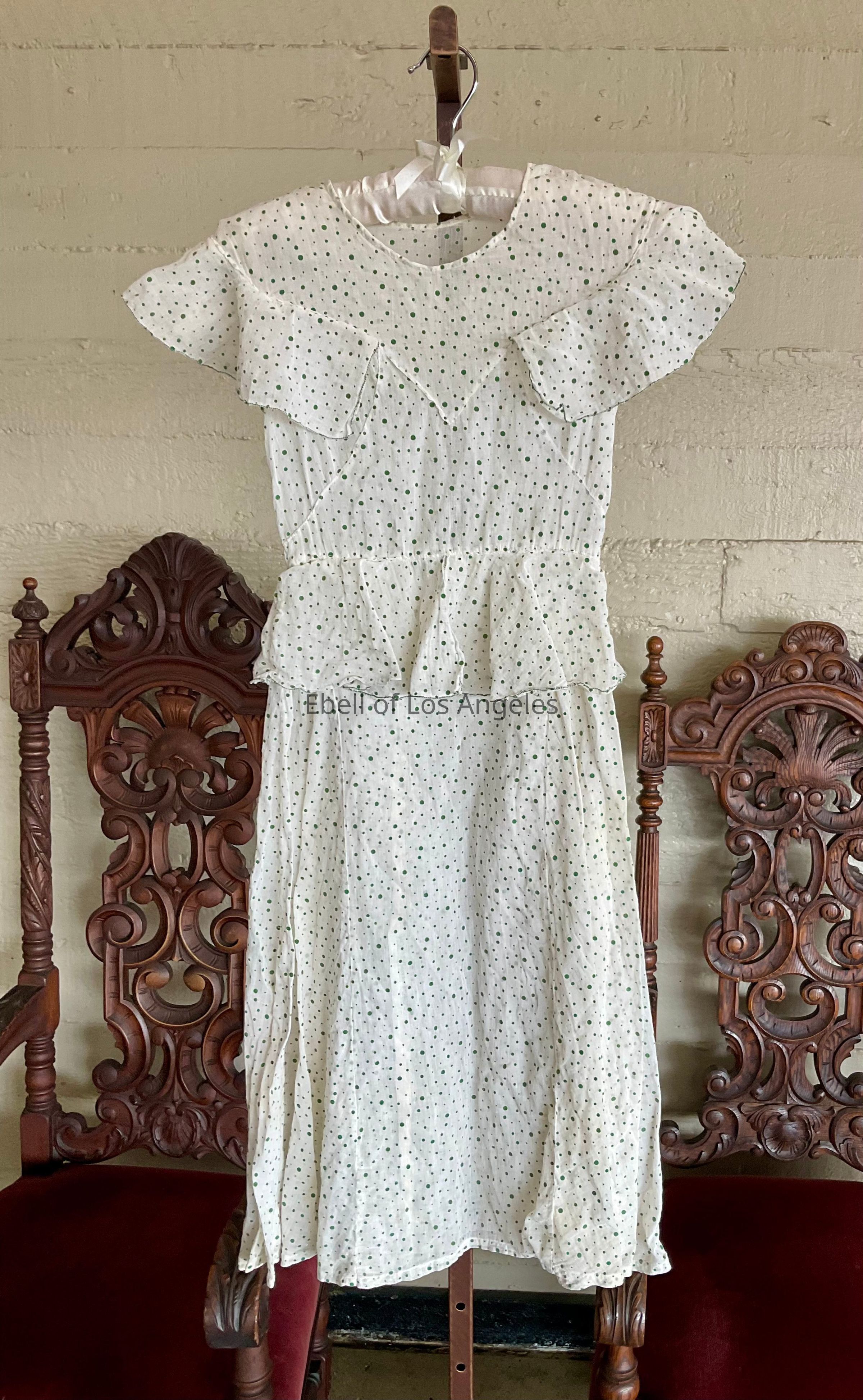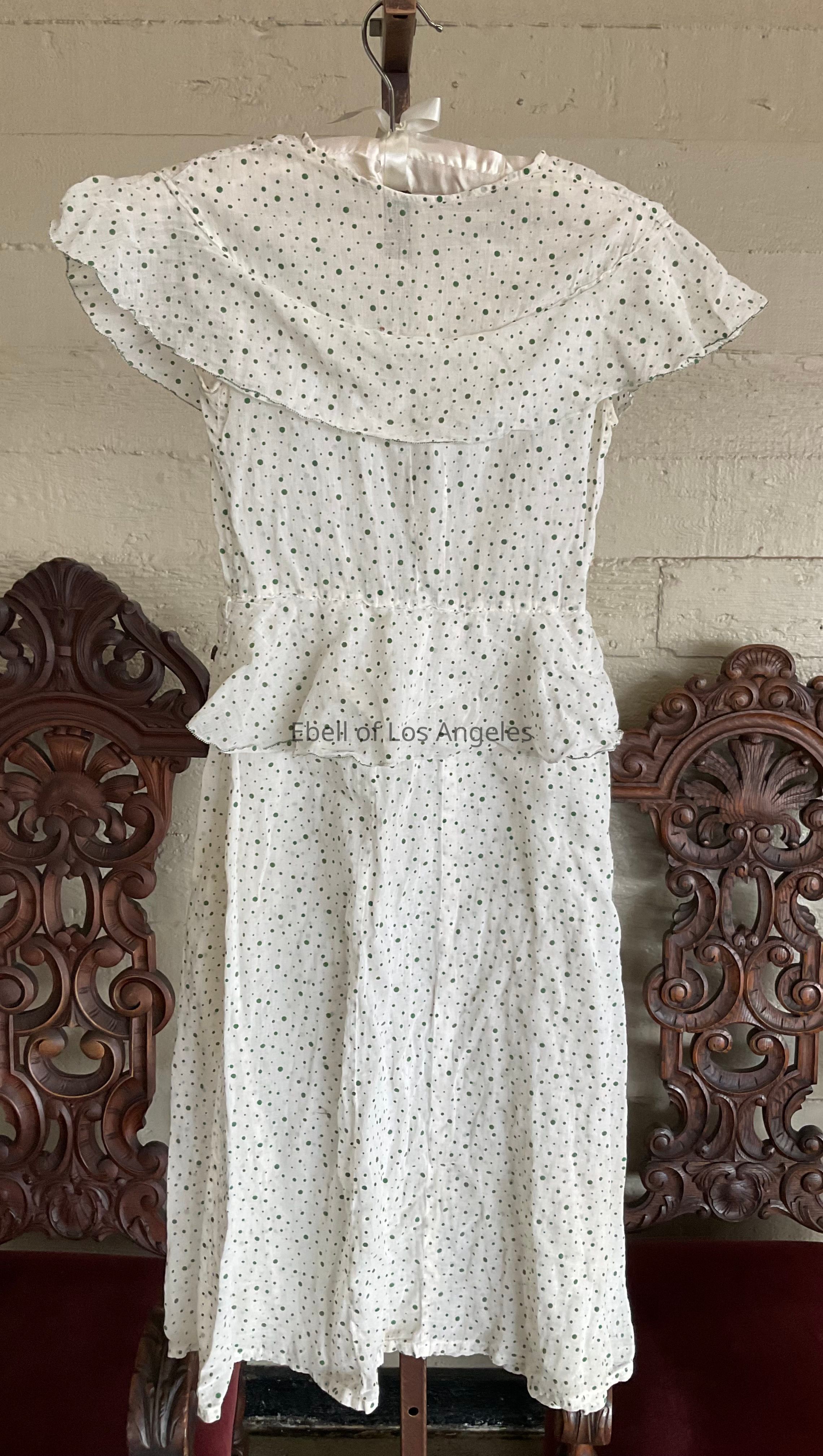 Sleeveless dotted cotton dress with peplum and ruffled yoke