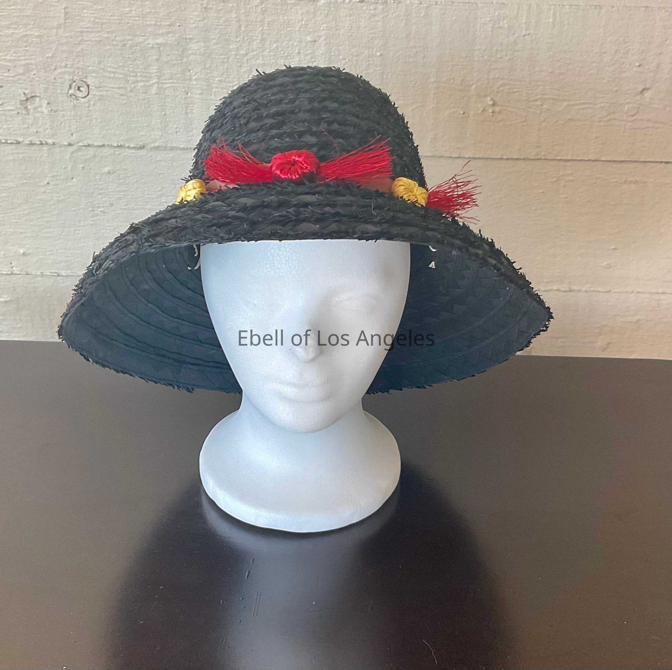Black straw picture hat with straw details on band (mushroom hat)Entry/Object ID