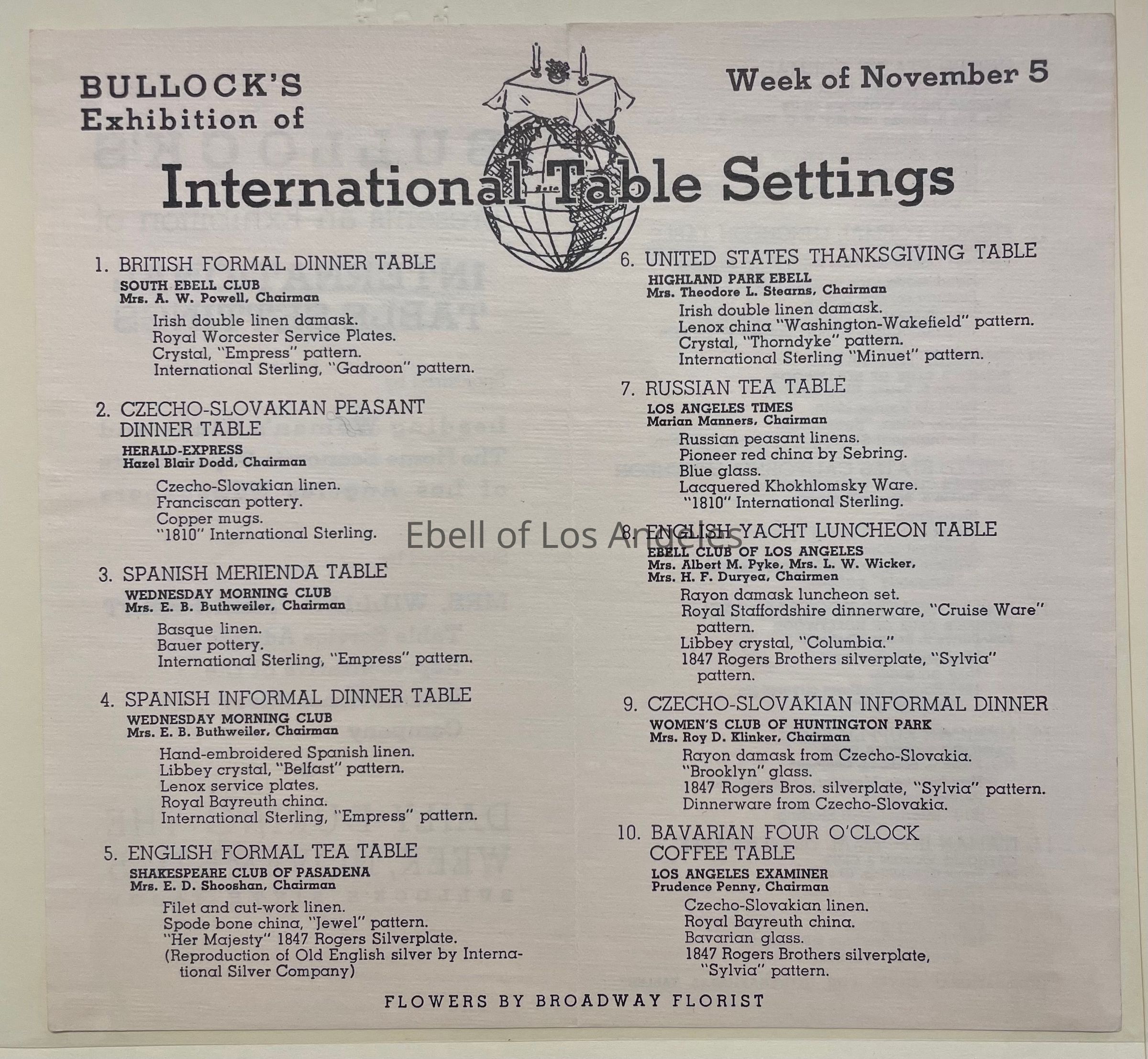 Applied Design. Exhibition program for Bullock’s: “International Table Settings”Date(s) of Creation