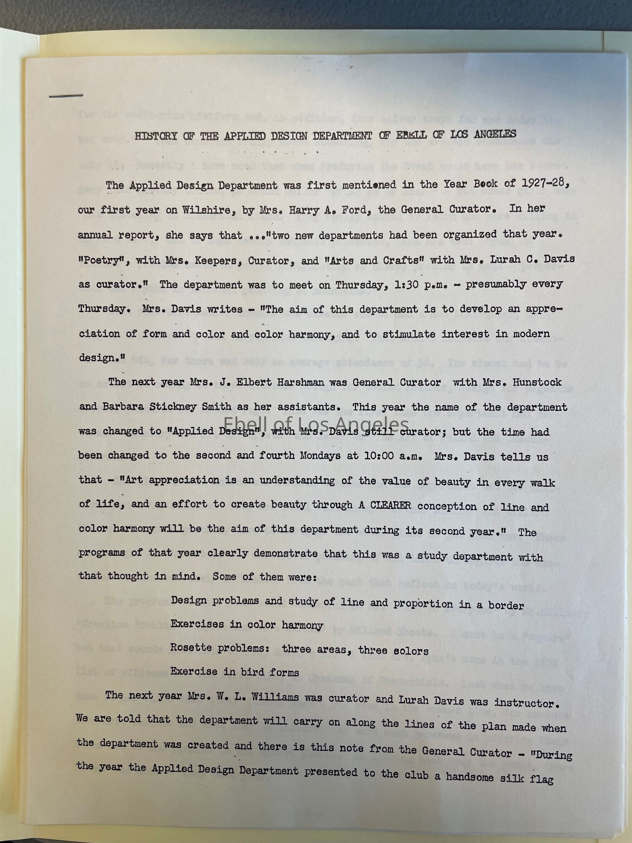 "History of the Applied Design Department" by Barbara Stickney Smith. 11 pages. Last date mentioned 1964Date(s) of Creation