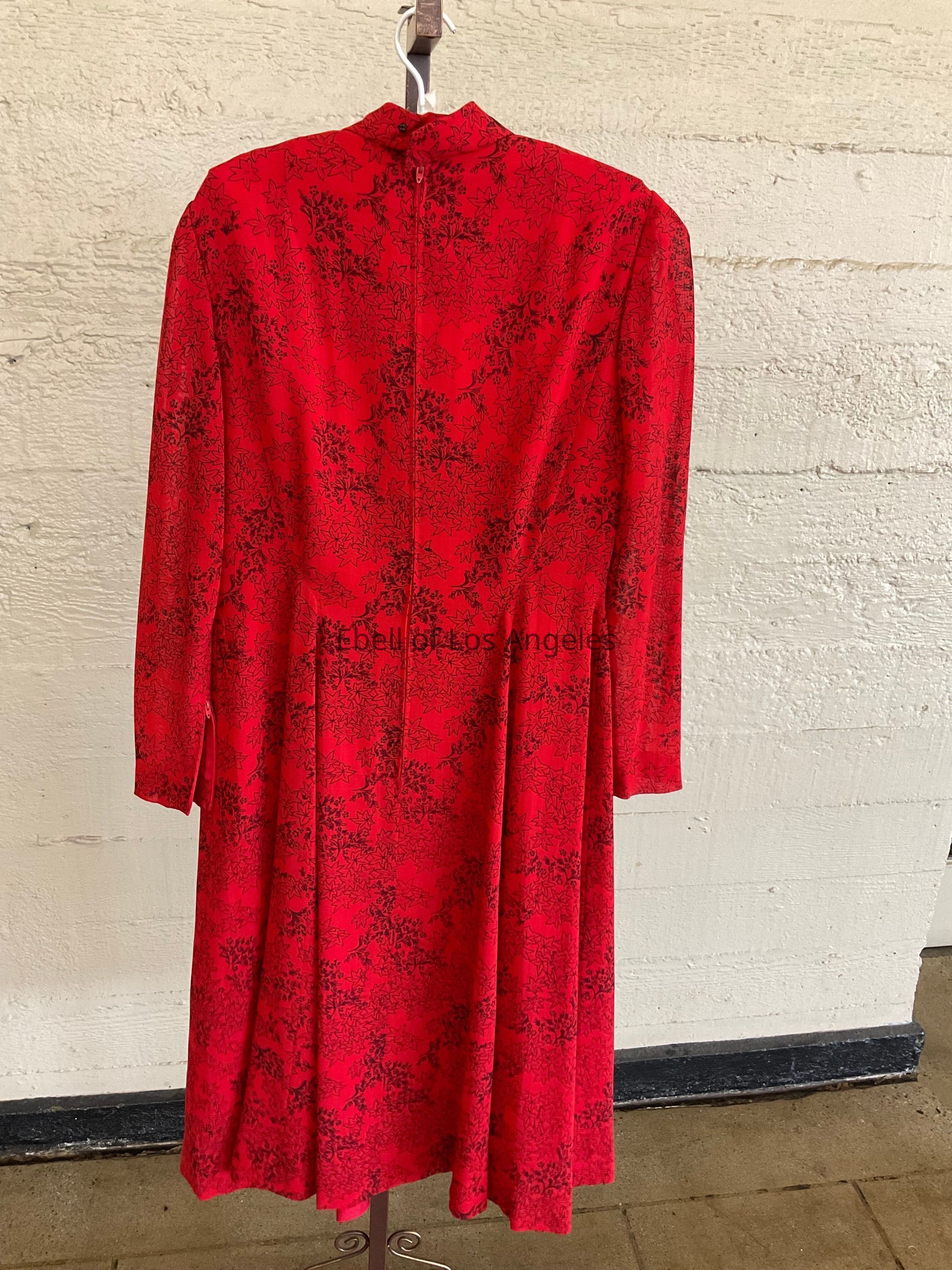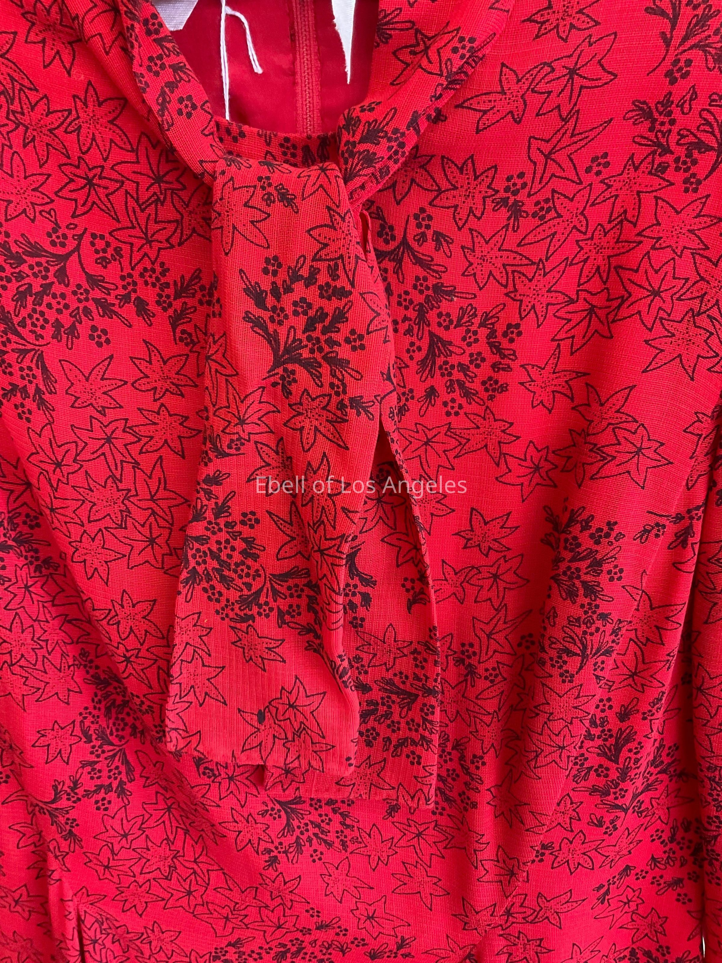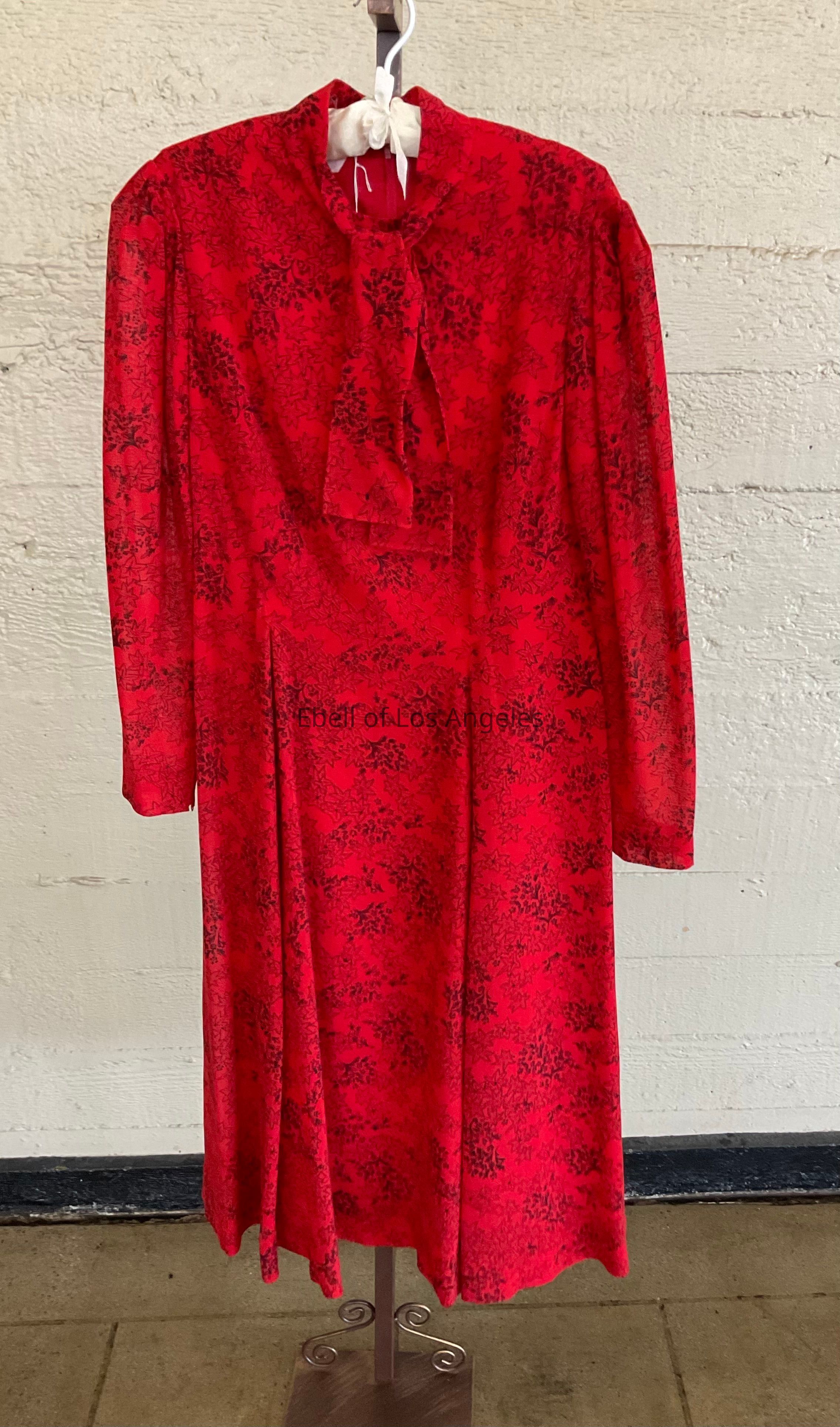 Printed dress with self tie collar, long sleeves and inverted pleatsEntry/Object ID