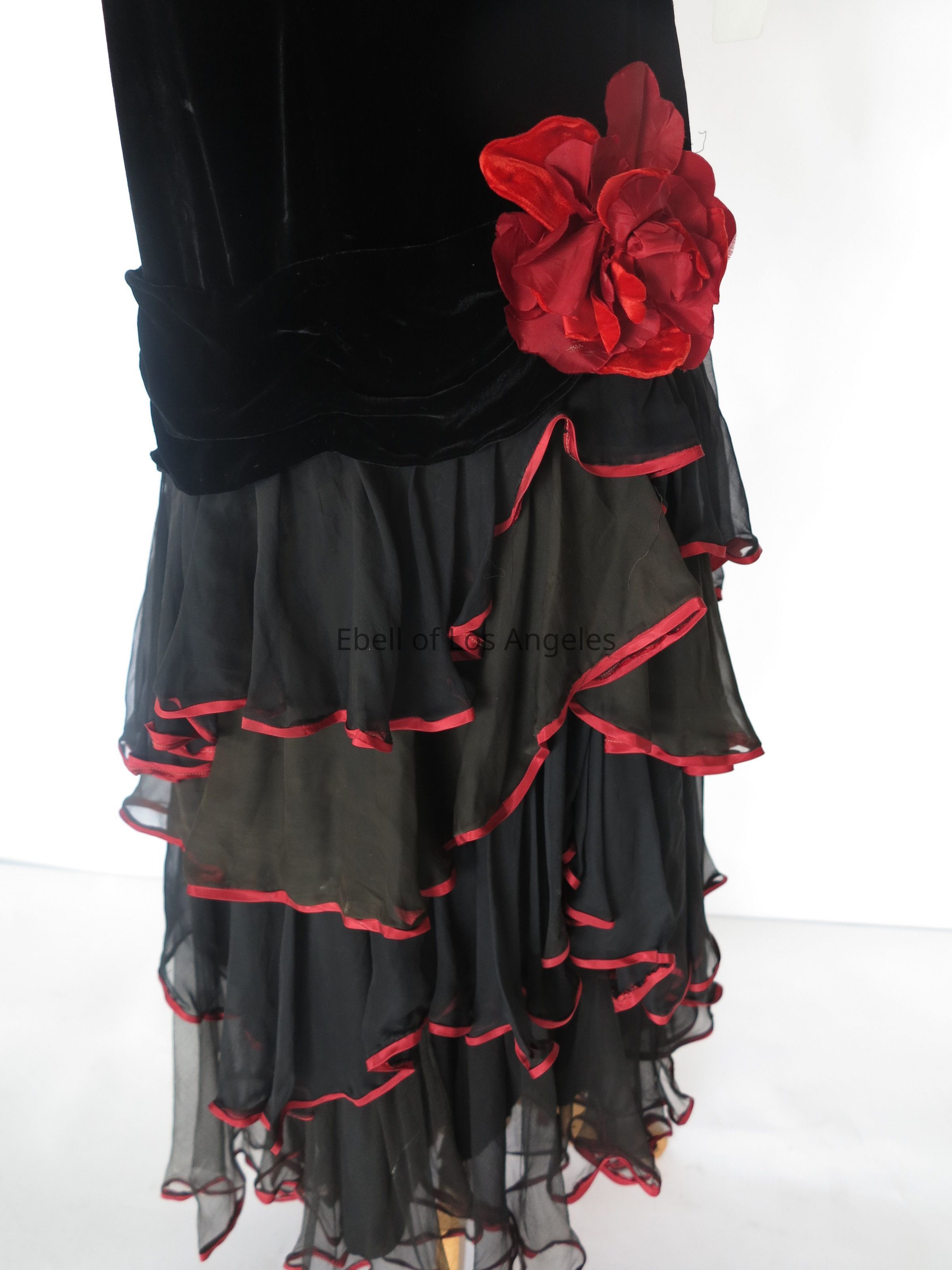 Black Velvet and Chiffon Puff Sleeved Dress with Red DetailsEntry/Object ID
