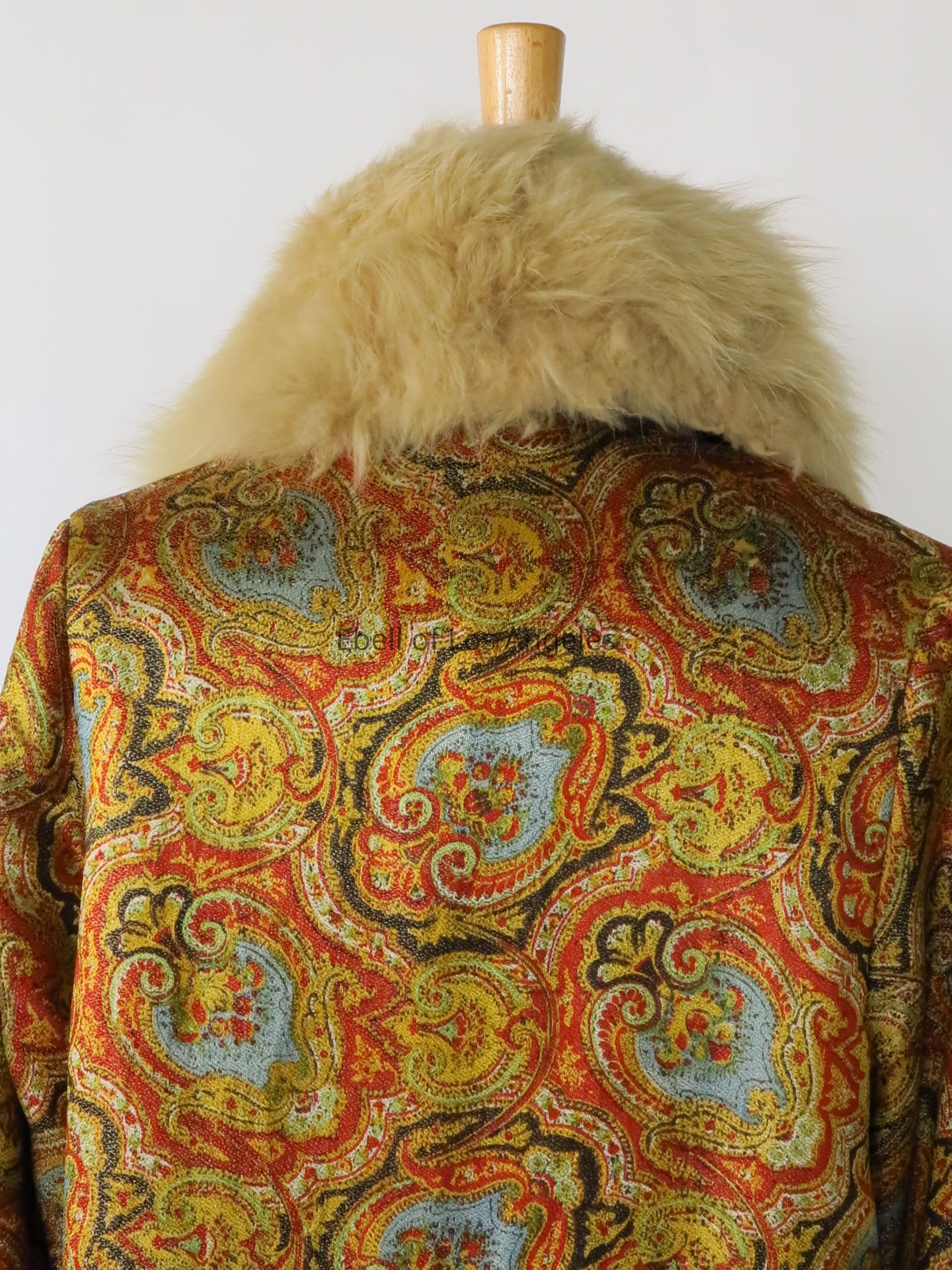 Multi-colored brocade evening coat with velvet cuffs and panels with fur collarCollection