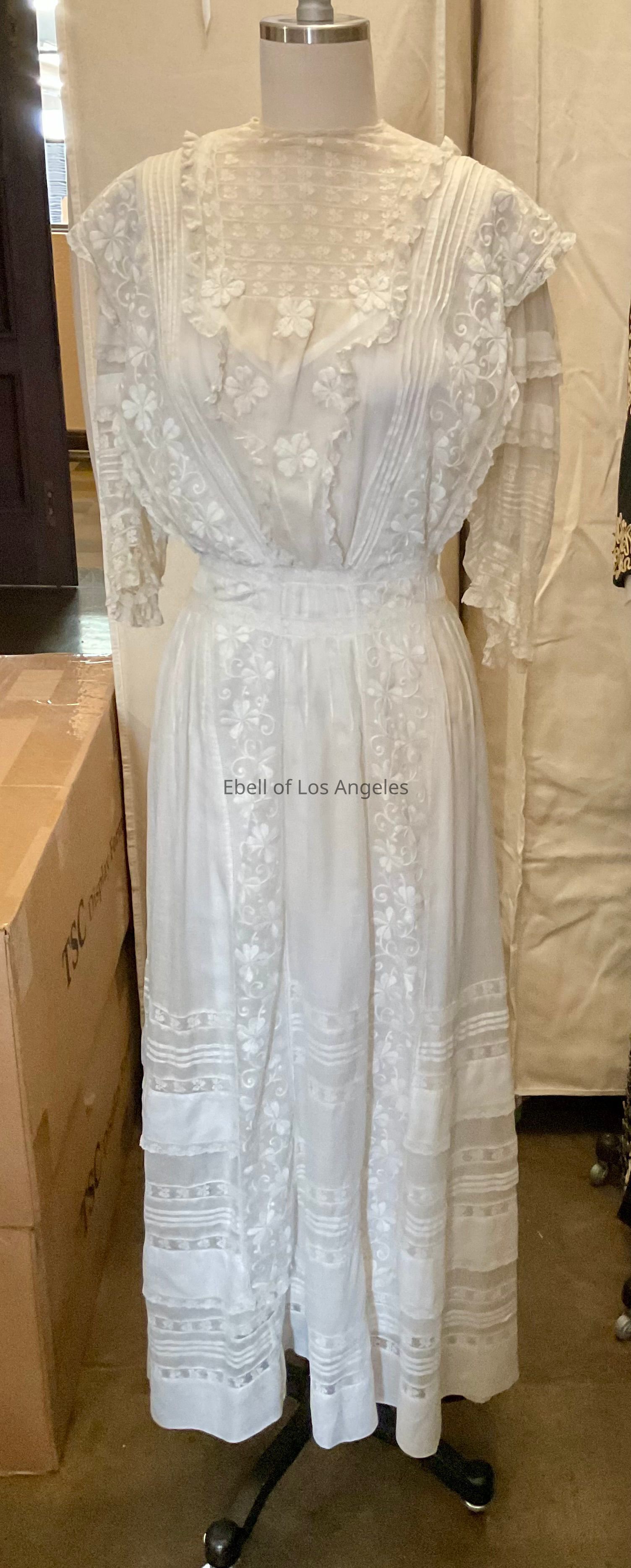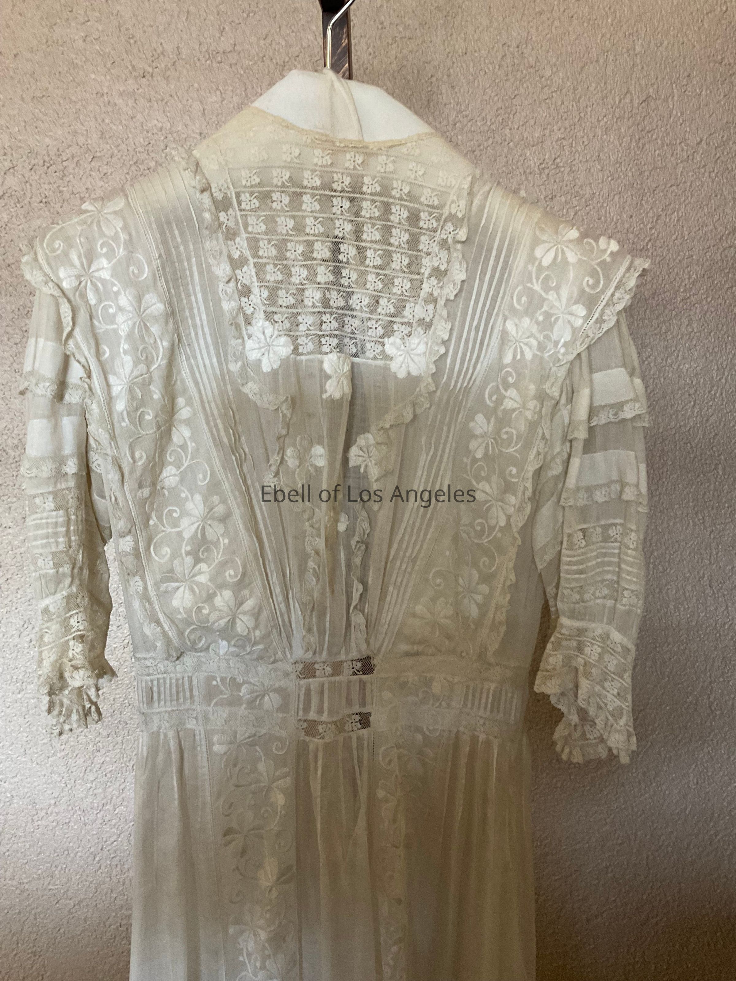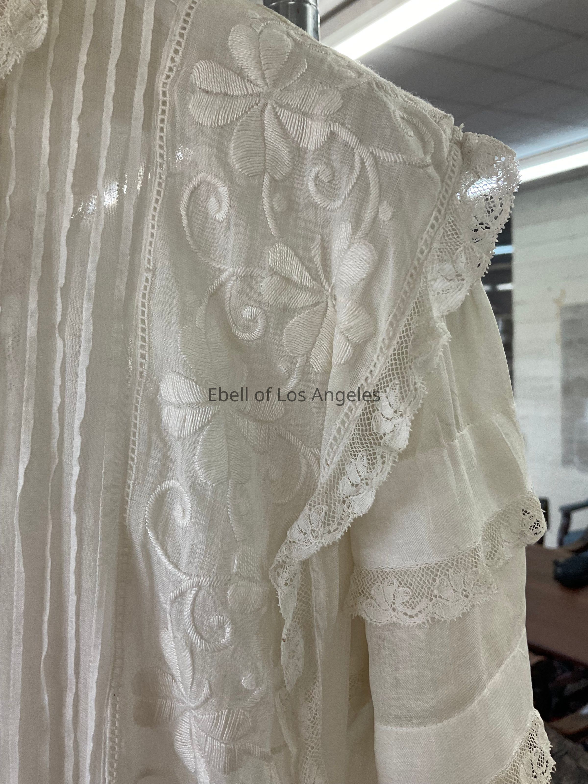 3/4 sleeve pinafore style full-length dress with clover embroidery and lace trimEntry/Object ID