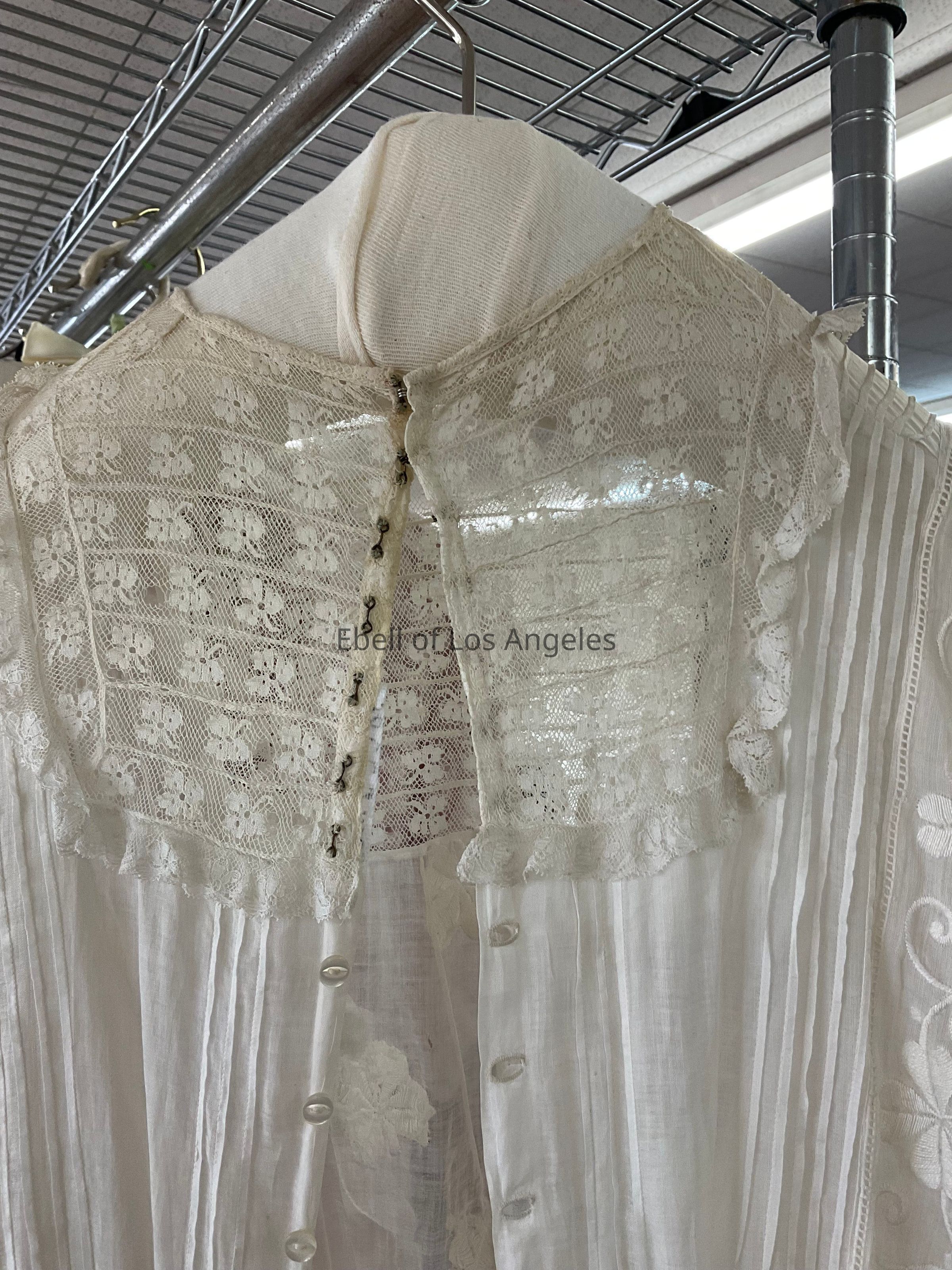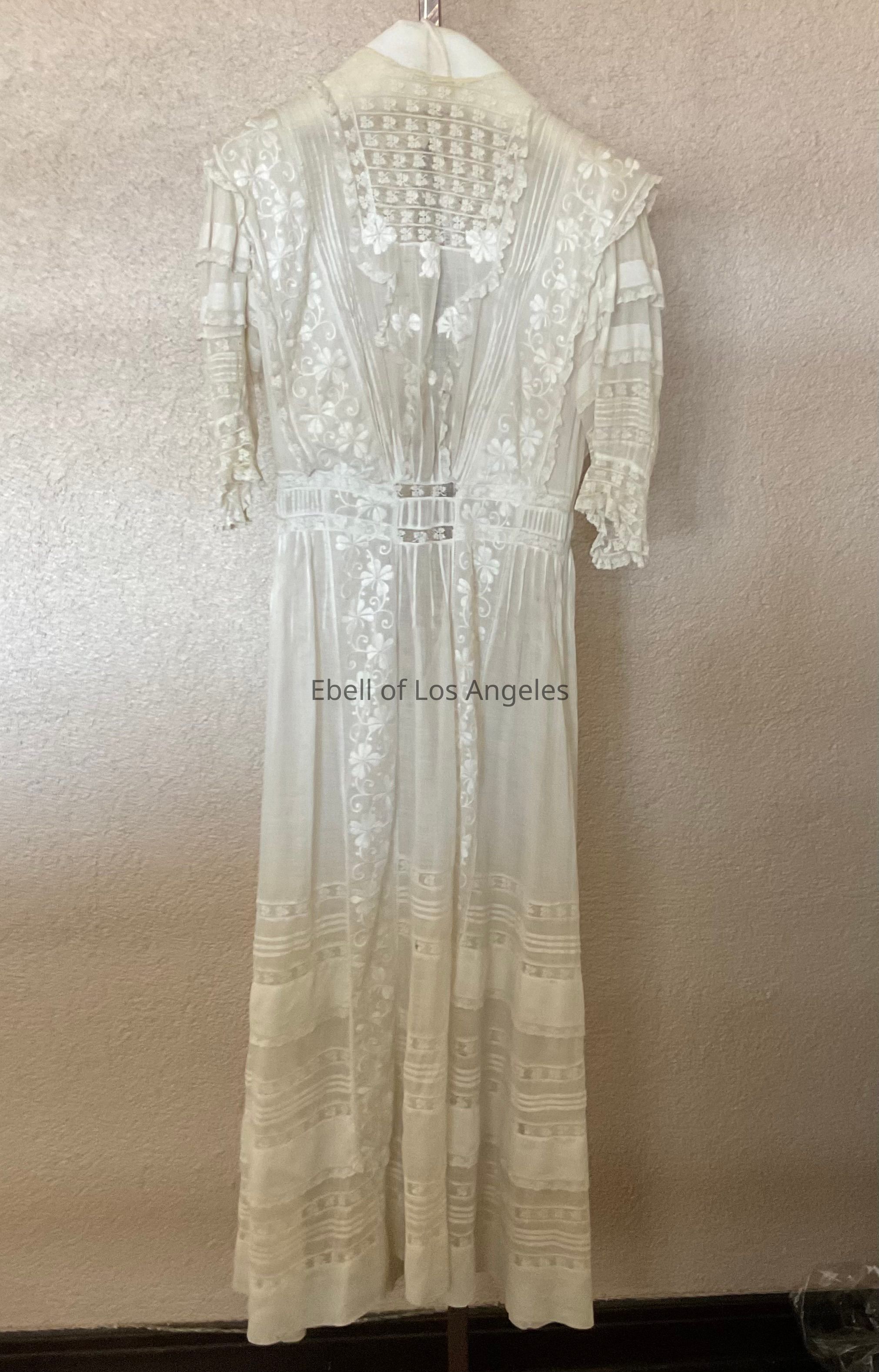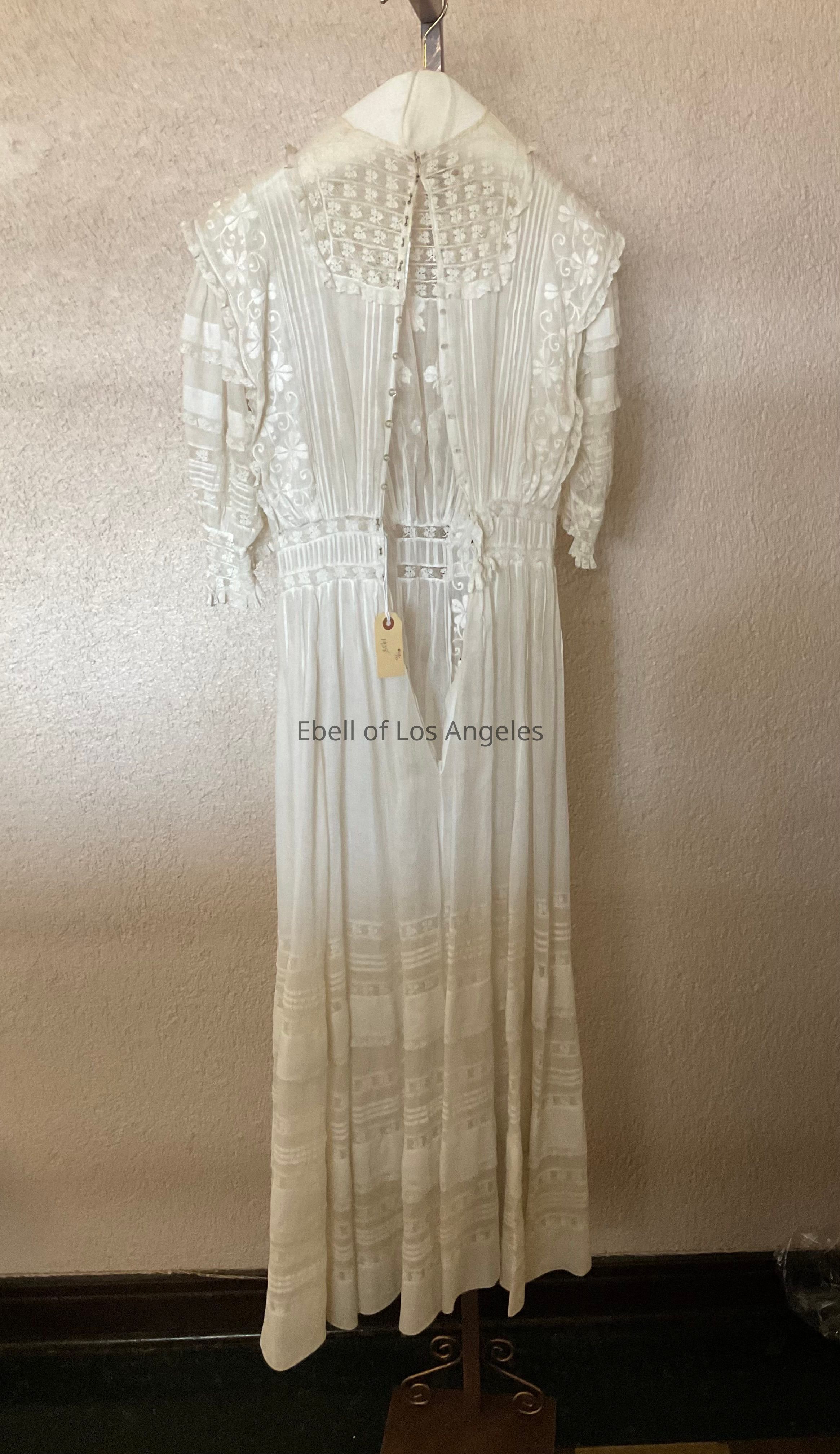 3/4 sleeve pinafore style full-length dress with clover embroidery and lace trimEntry/Object ID