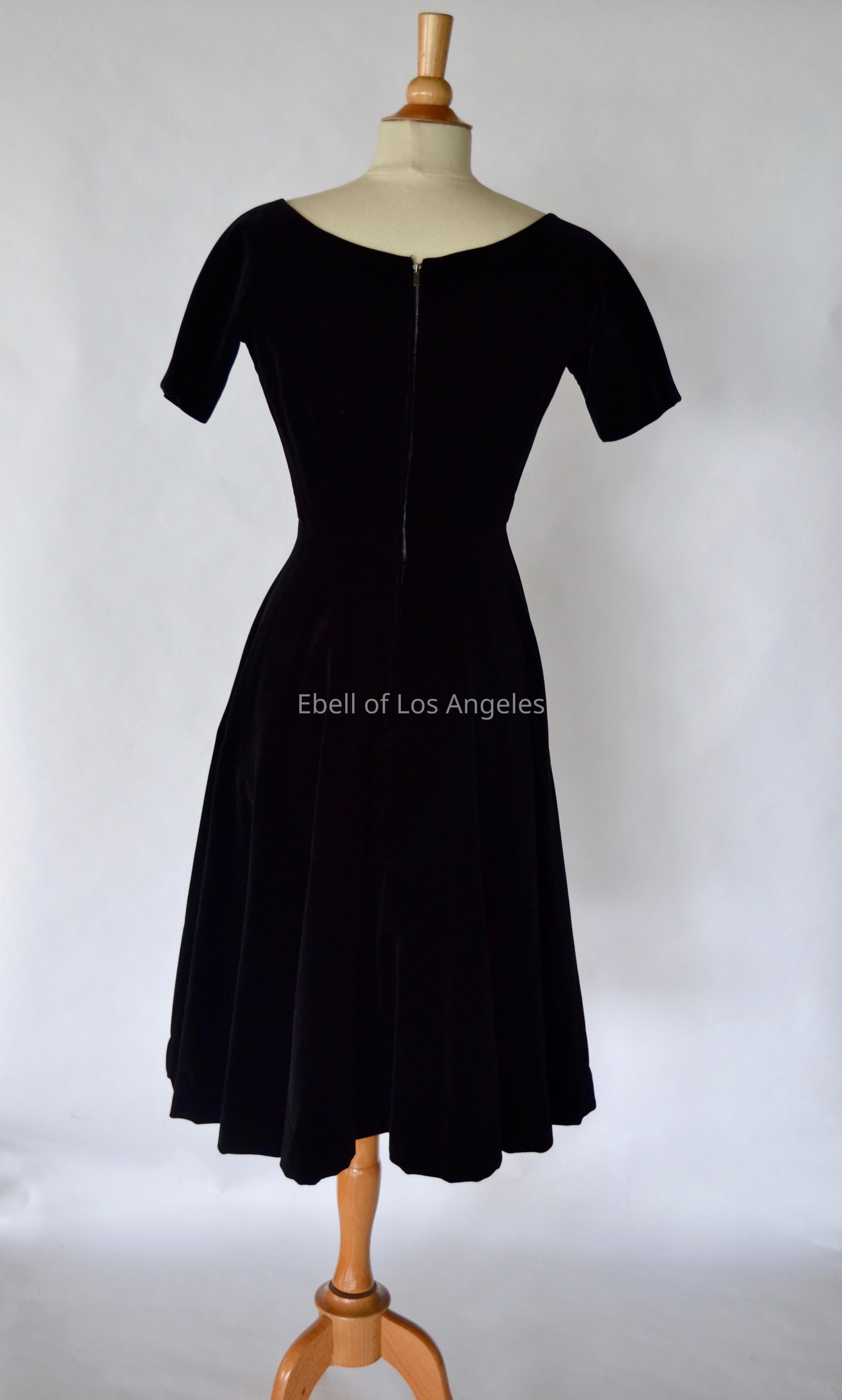 Velvet boat neck short sleeve fit and flare dressEntry/Object ID