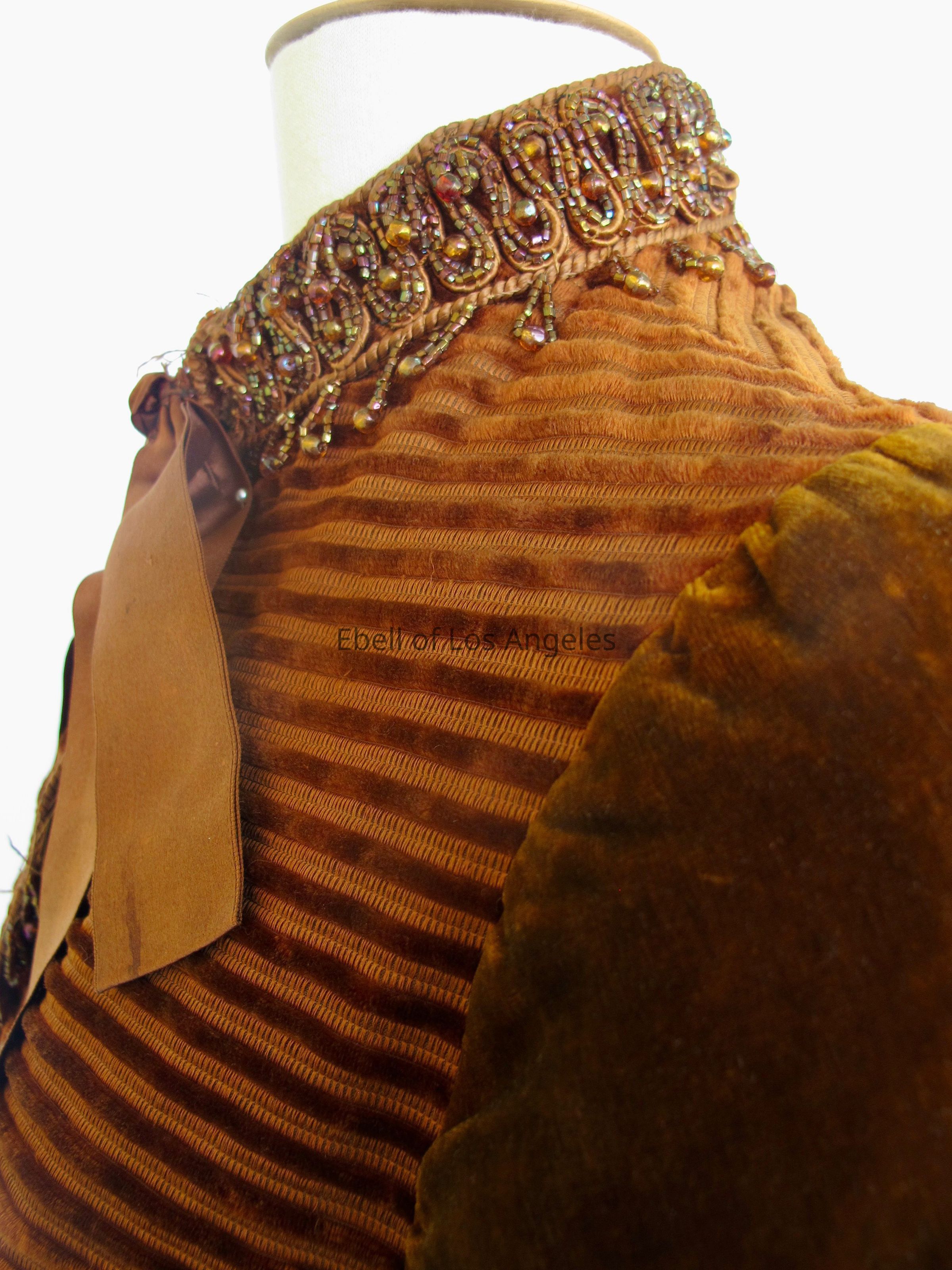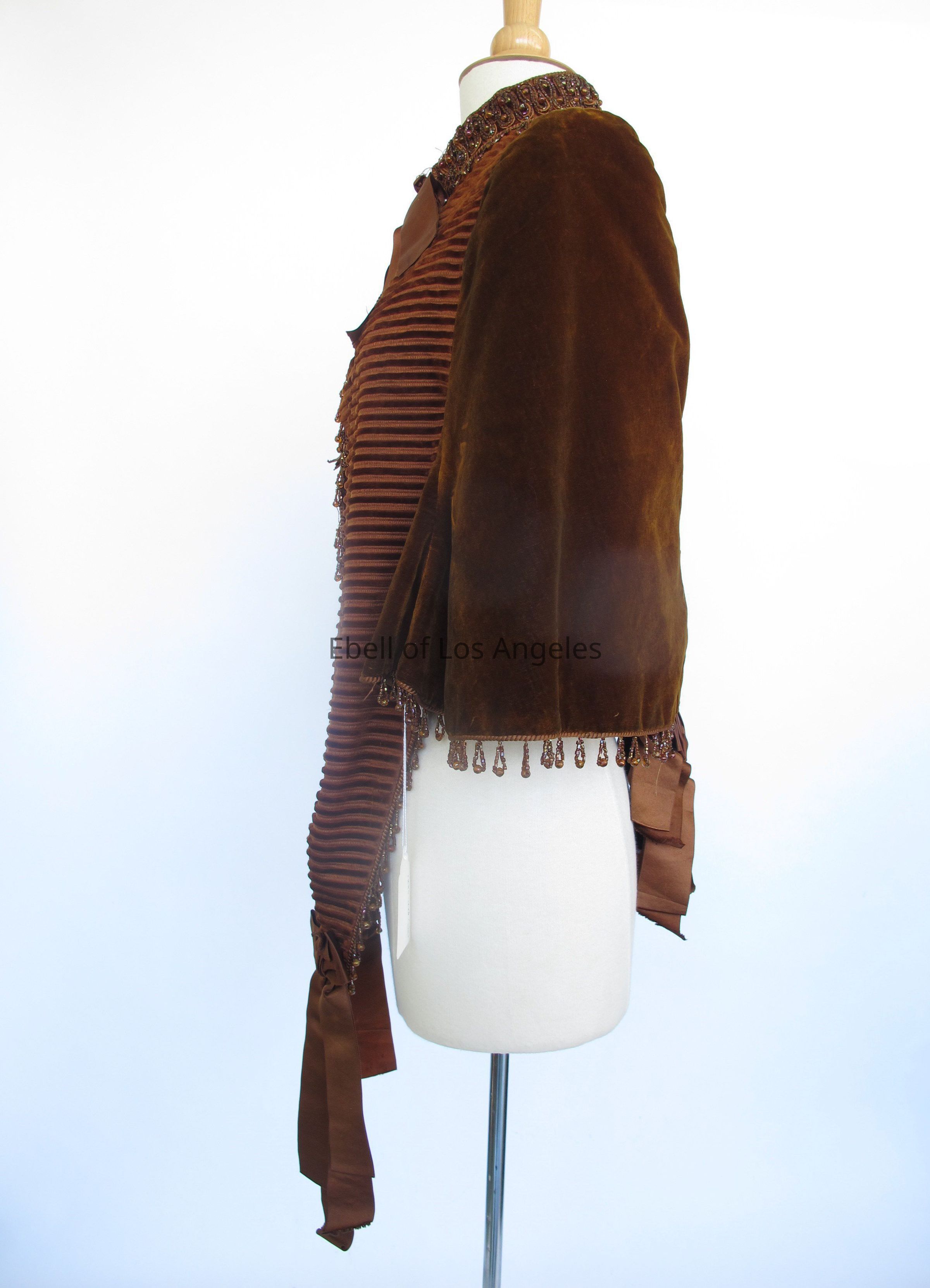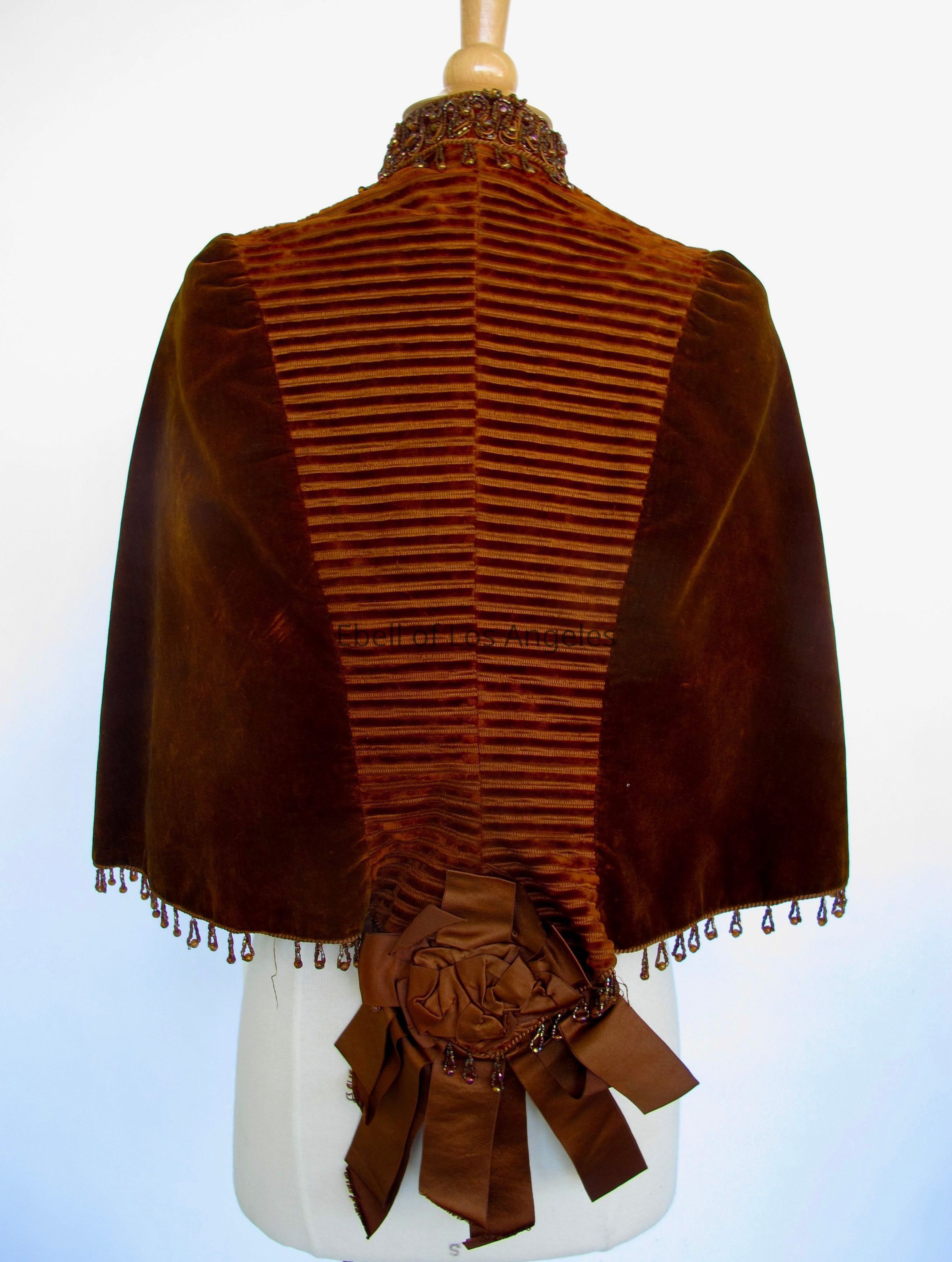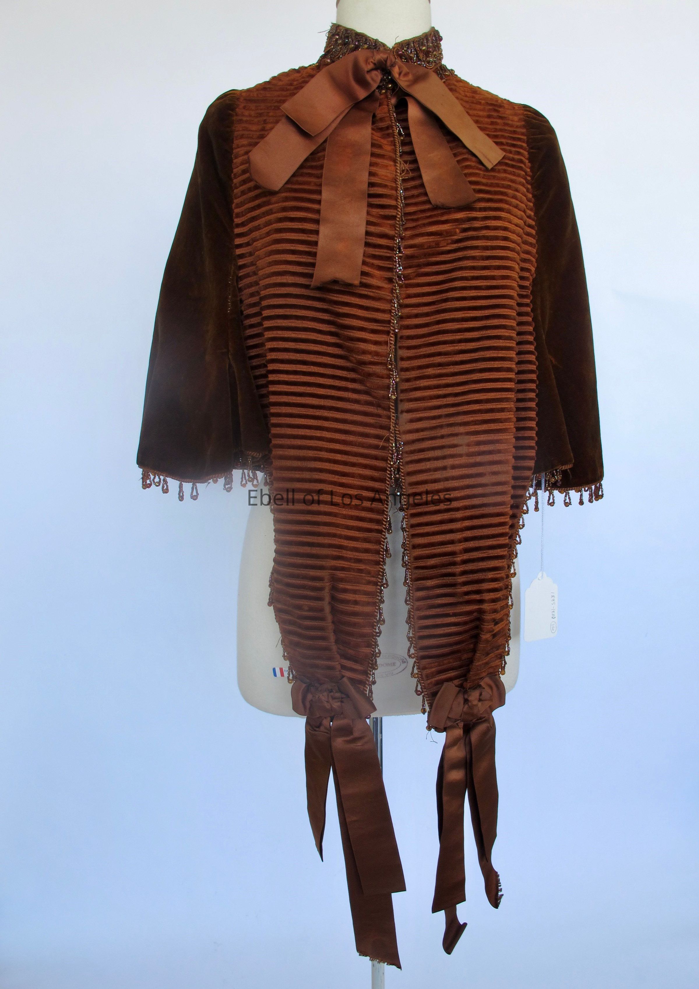 Hook front velvet and corduroy cape with bead embellishment and bowsEntry/Object ID