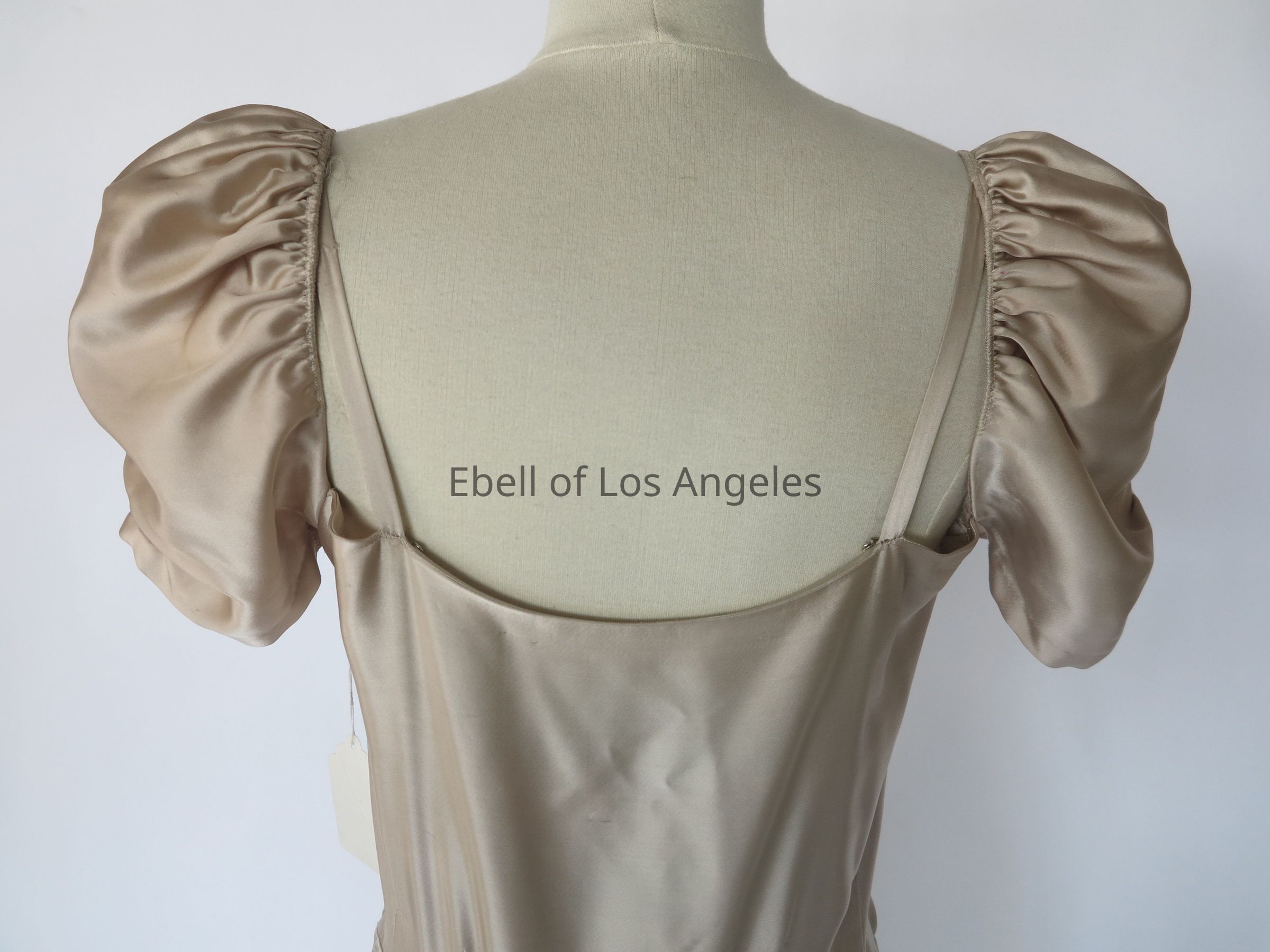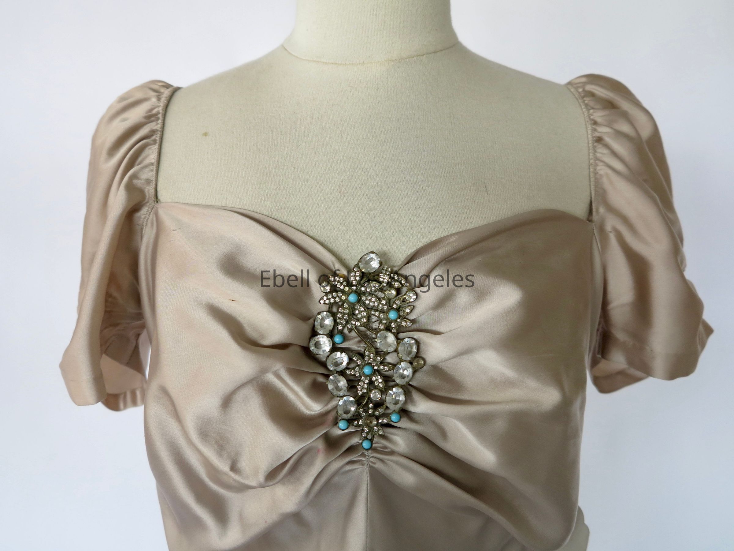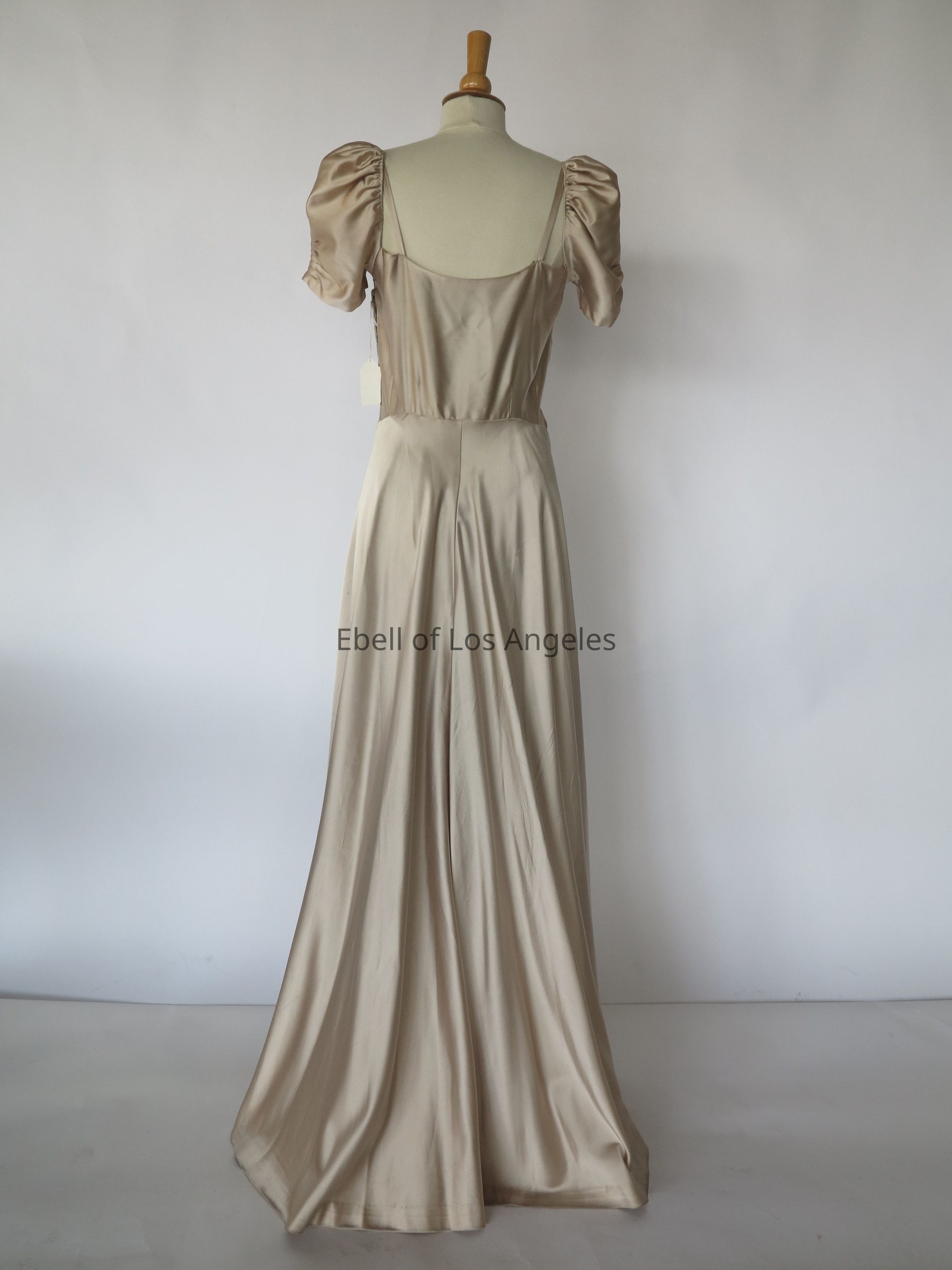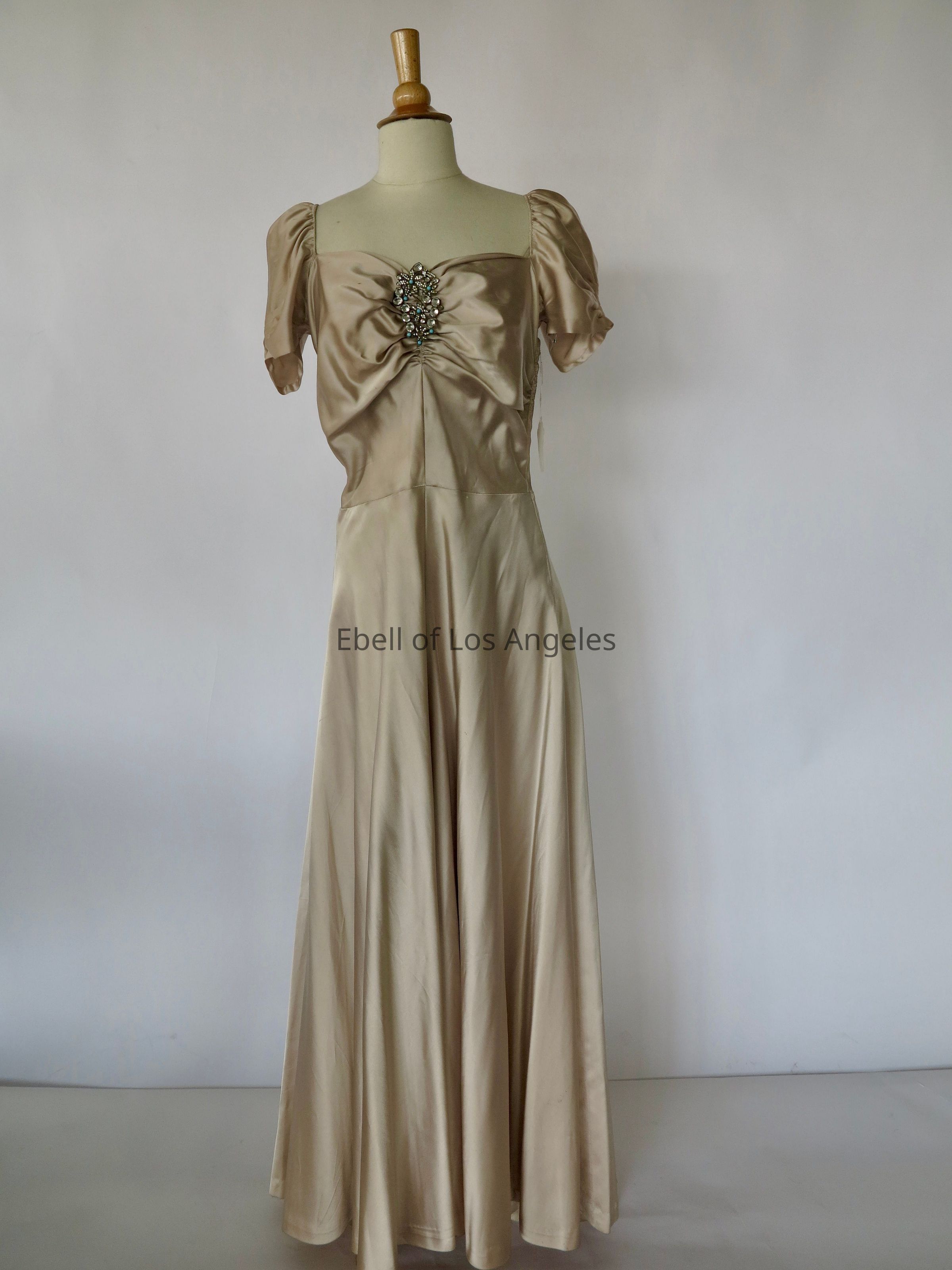Puff sleeve satin long dress with dress clip at center front neckEntry/Object ID