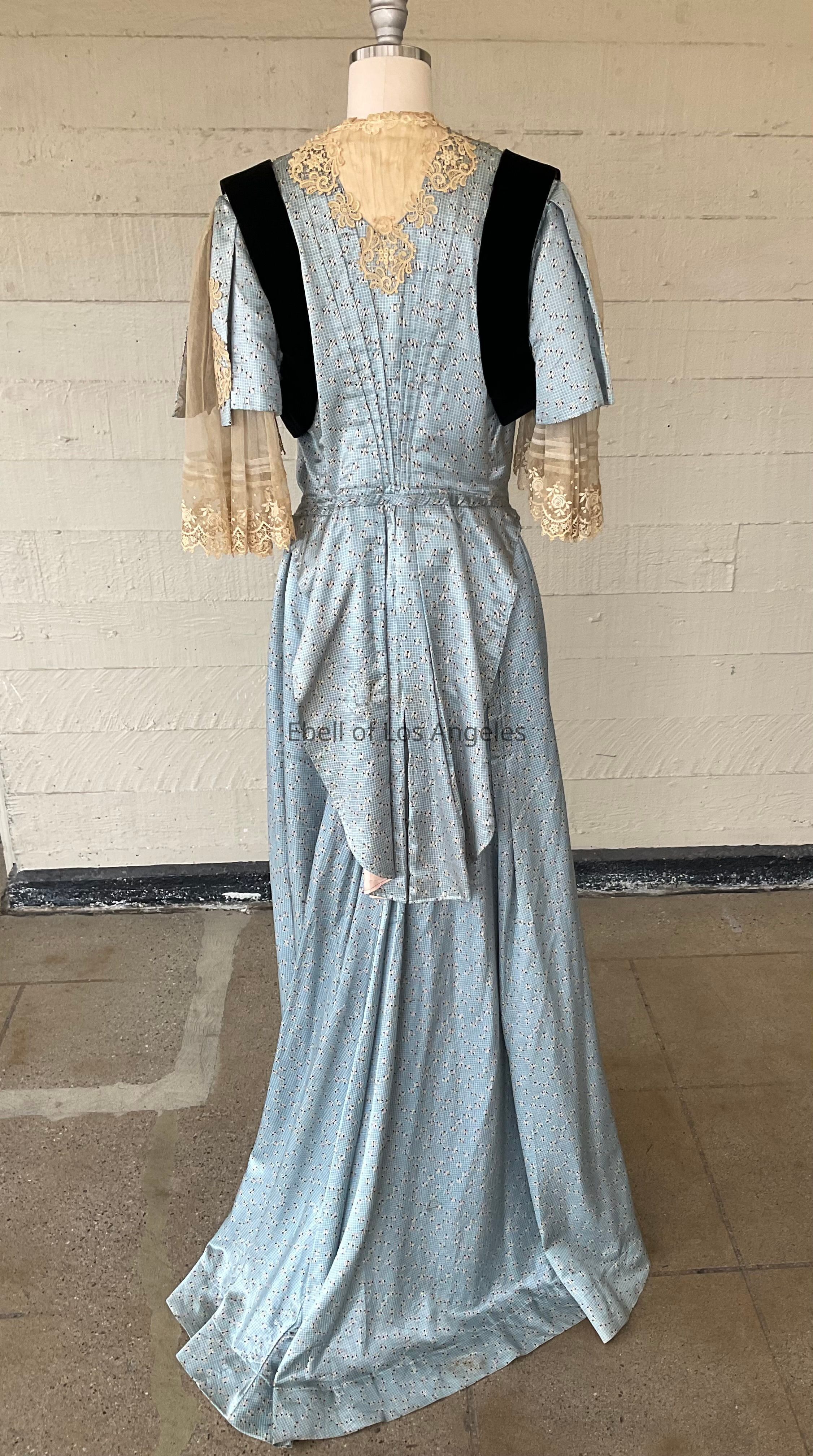 Printed silk 2 piece dress with velvet panels and laceEntry/Object ID