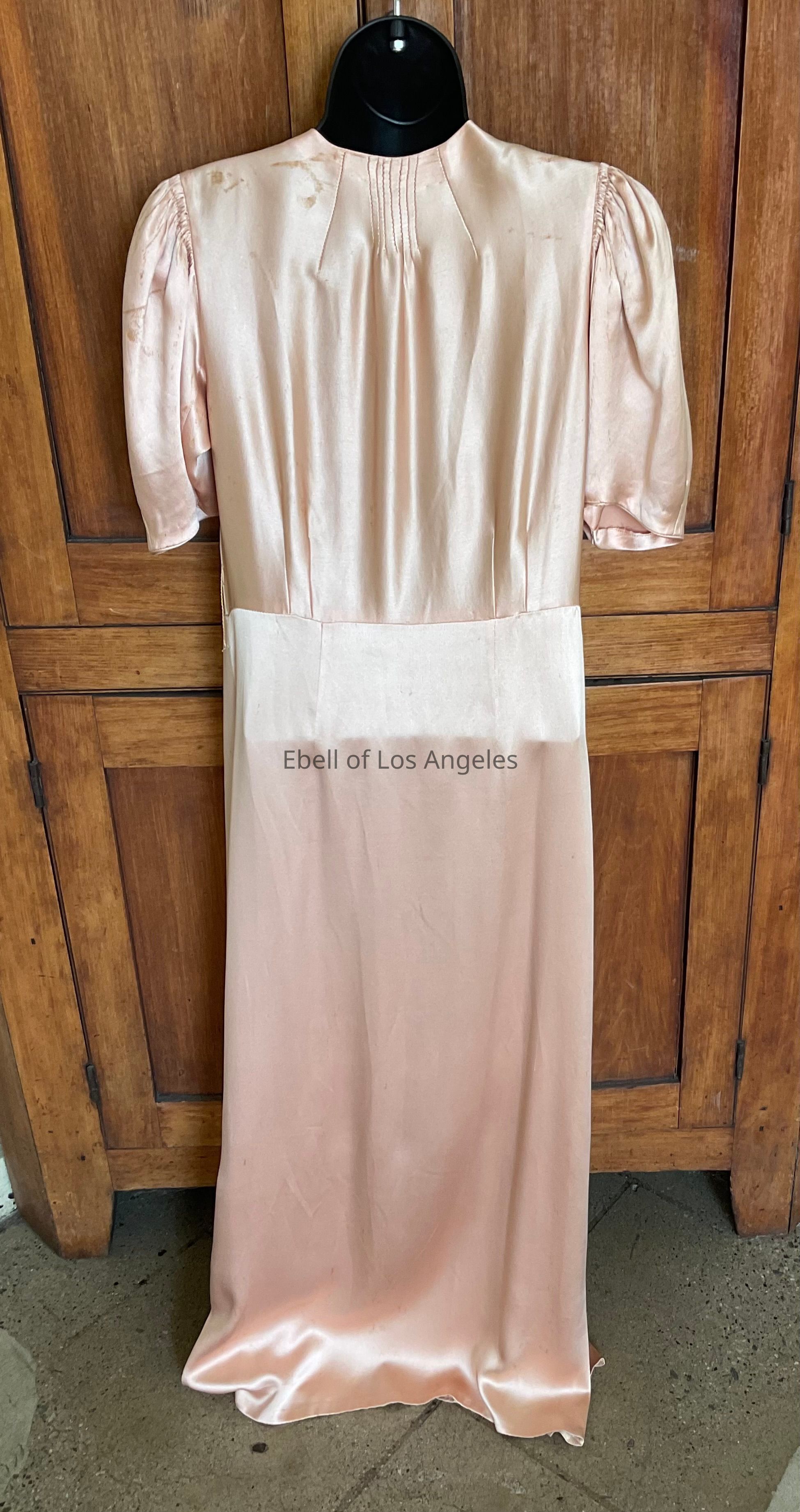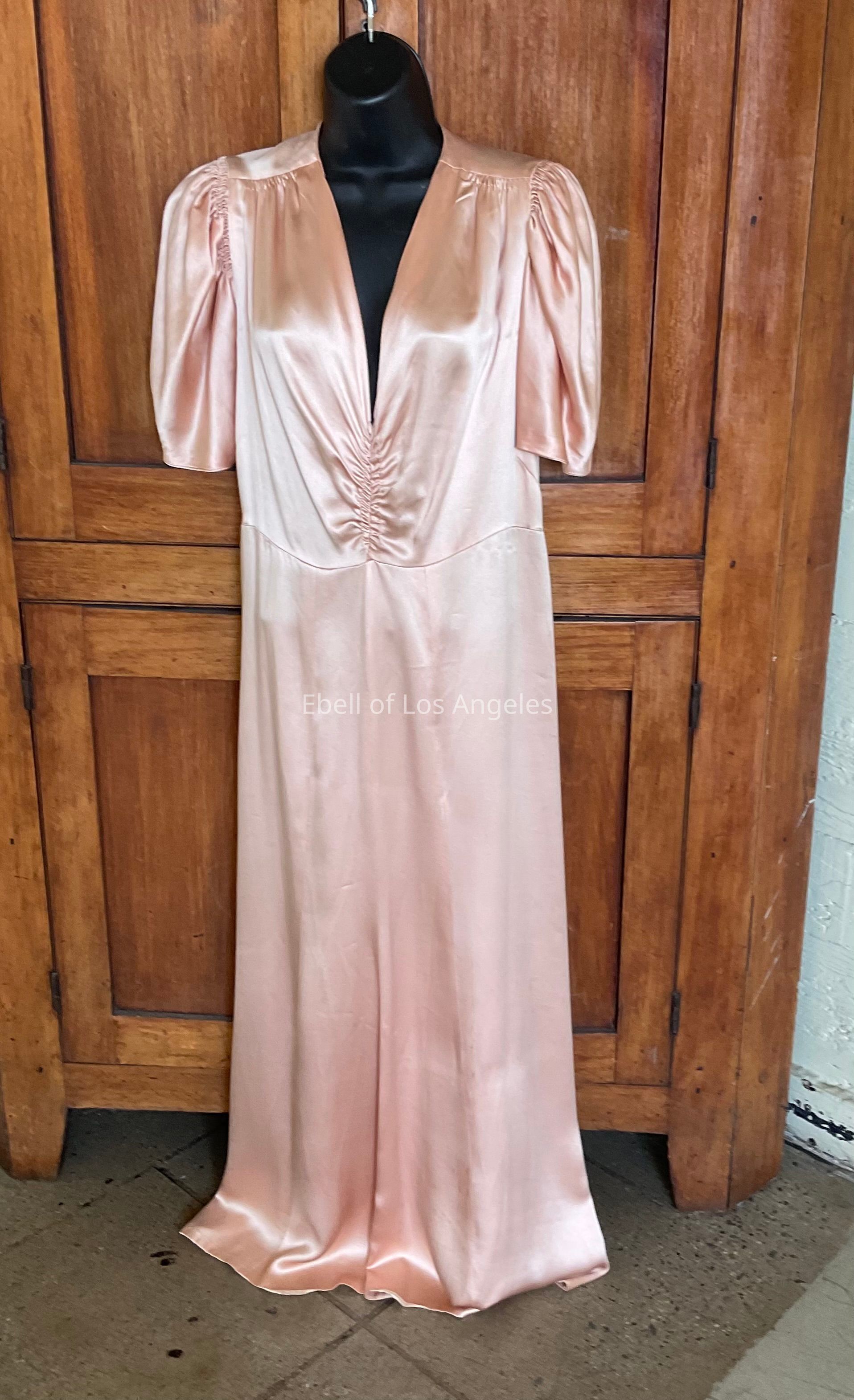 V-neck short sleeve charmeuse floor length dress with smocking detailEntry/Object ID