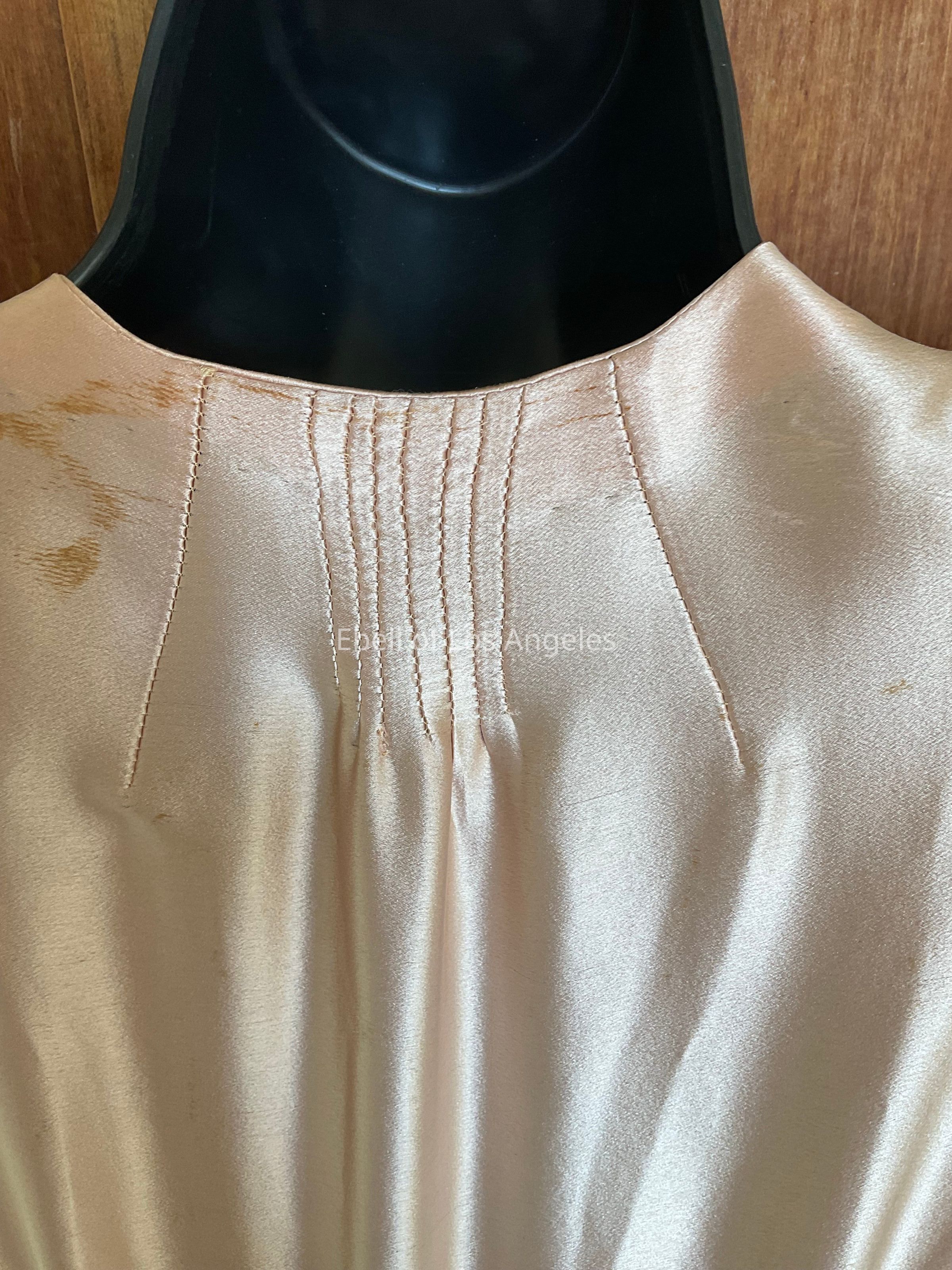 V-neck short sleeve charmeuse floor length dress with smocking detailCollection