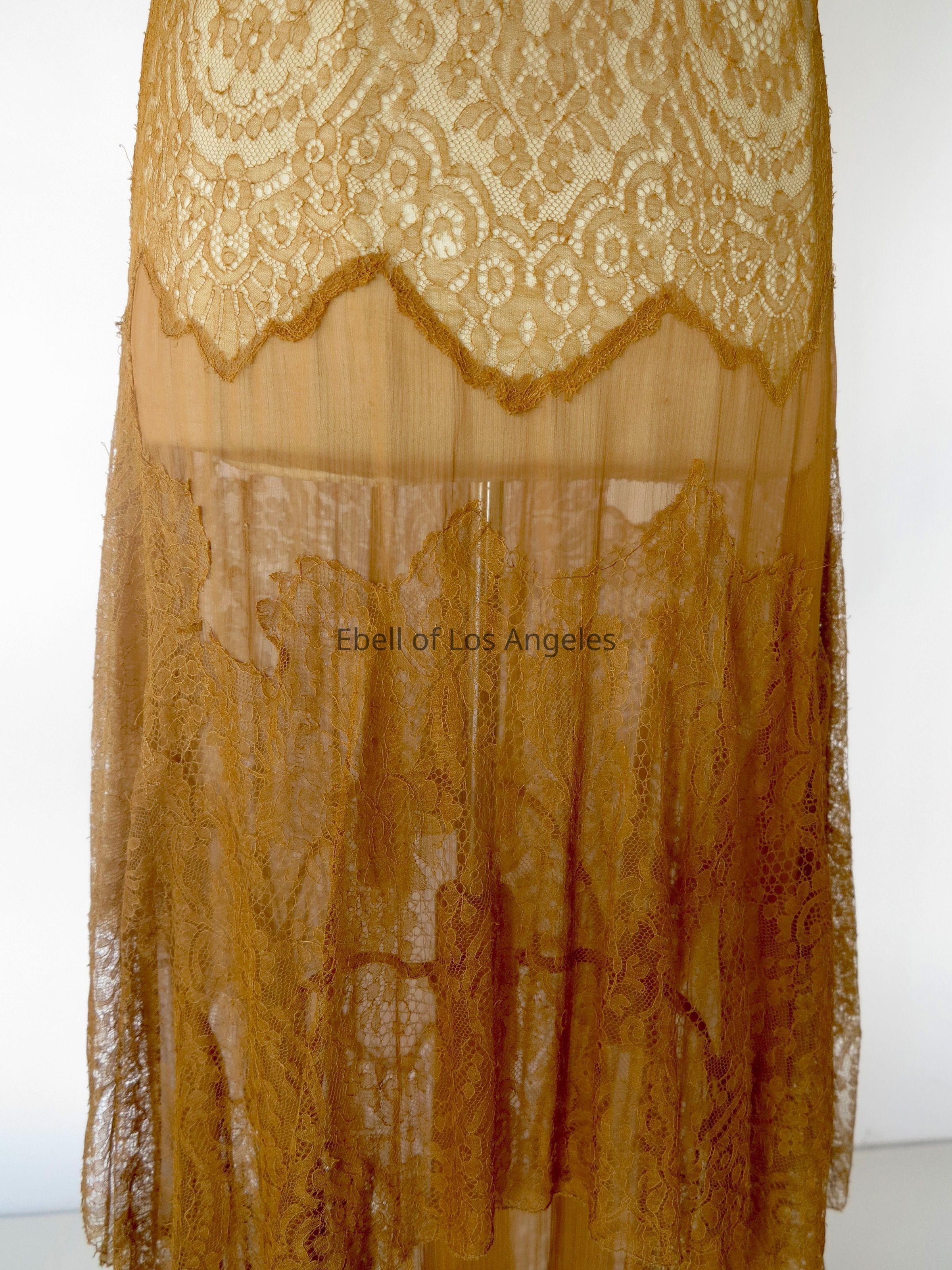 Lace/chiffon long v-neck dress with tiered skirt and floral embellishment at frontEntry/Object ID