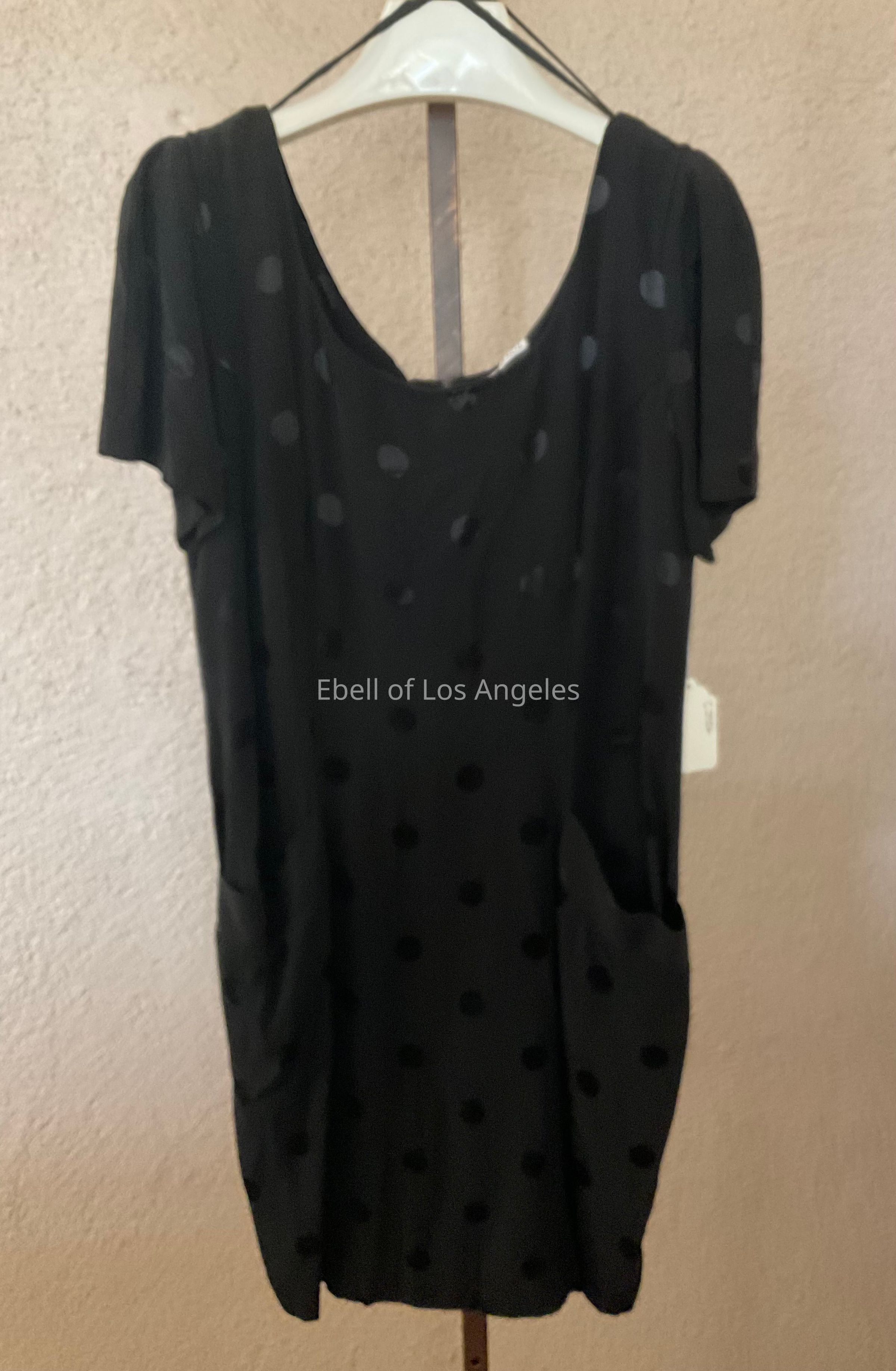 Polka dot mini dress with scooped neck, front pockets, short sleevesCollection