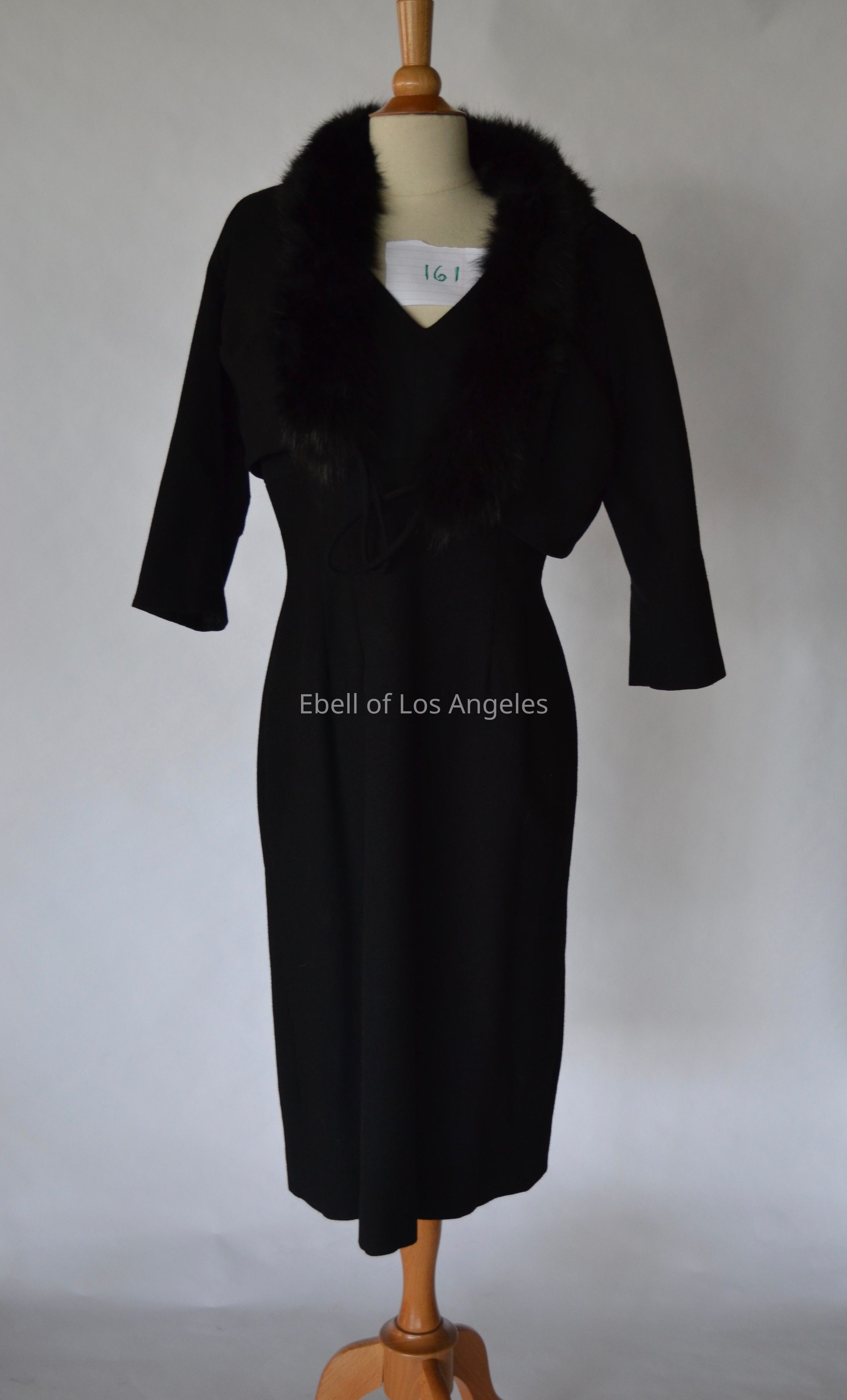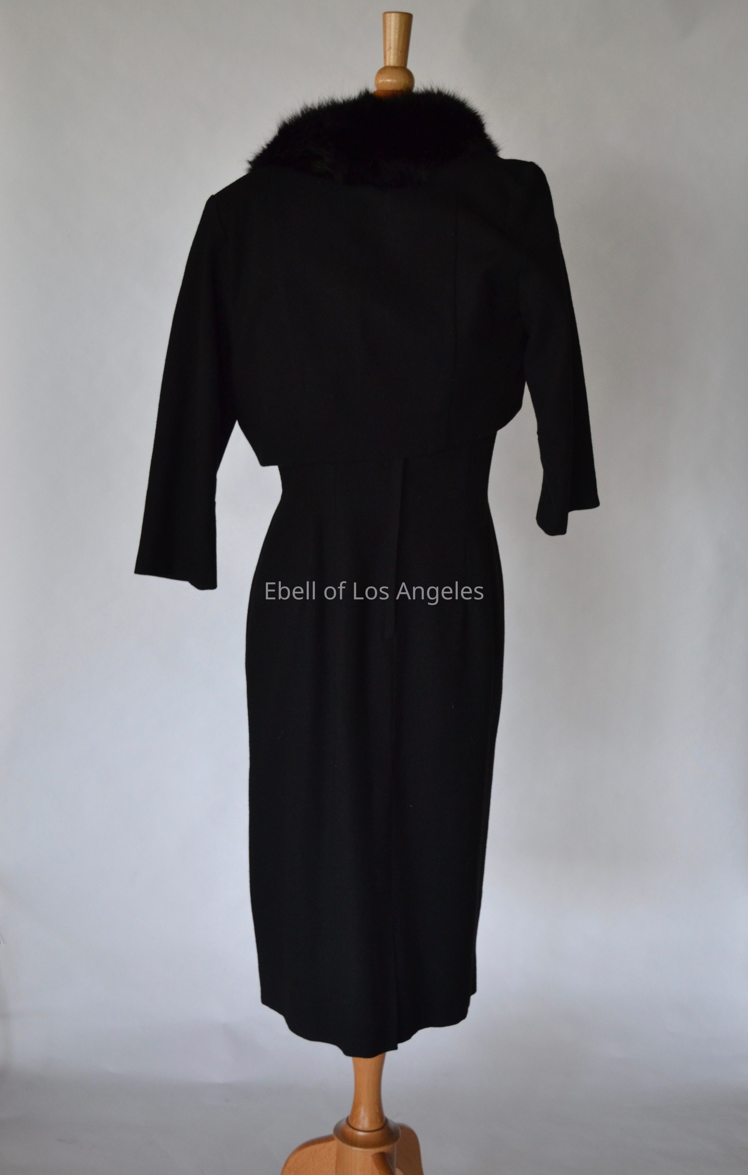 Cap sleeve v-neck wool sheath with matching short jacket with fur collarCollection
