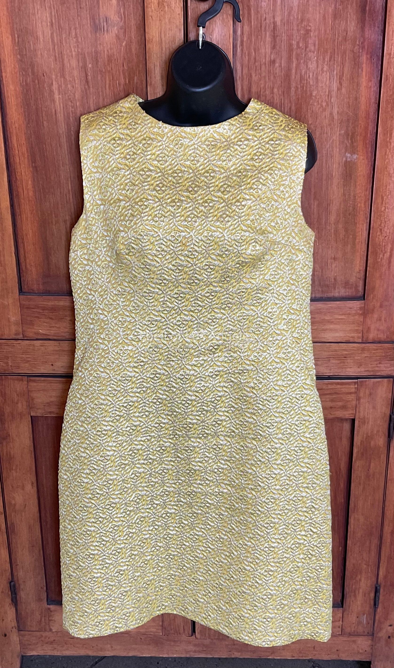 Brocade sleeveless sheath dress and separate chiffon tabard with brocade trimCollection