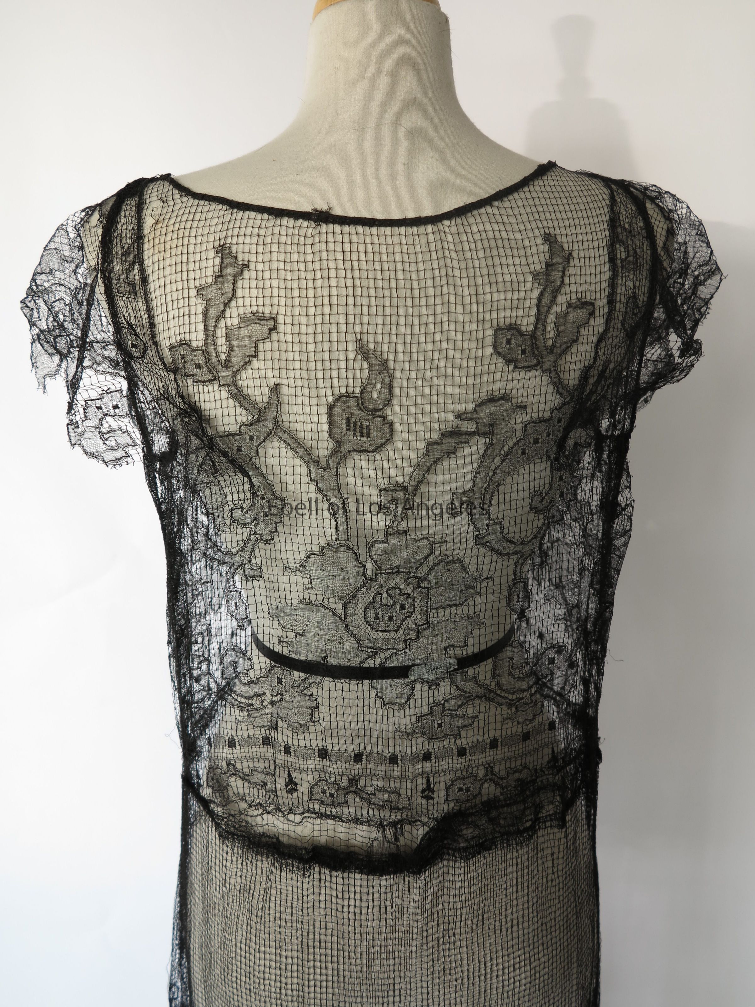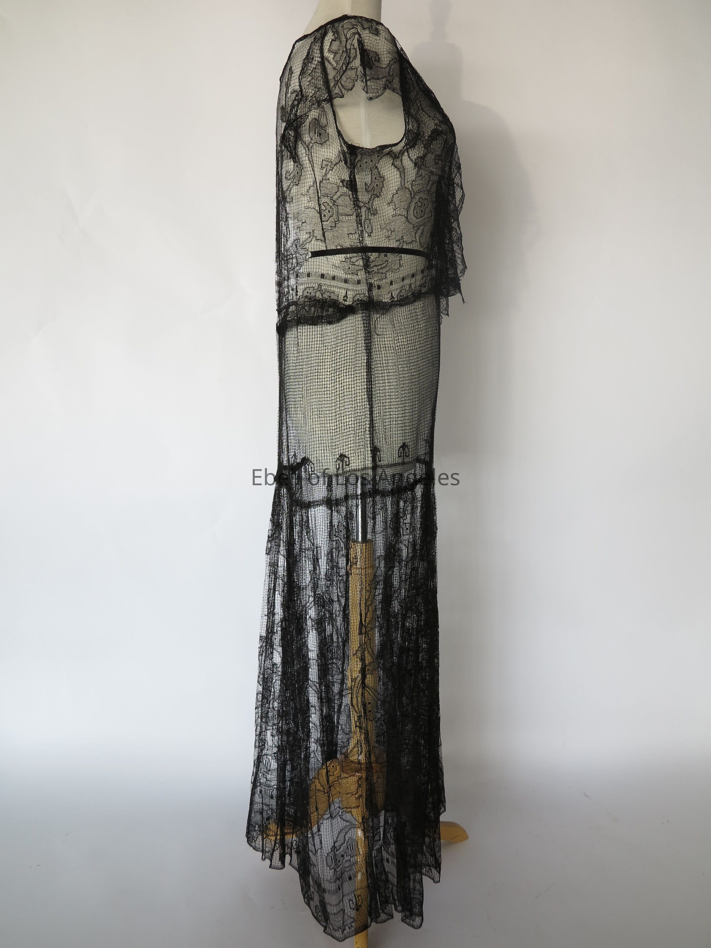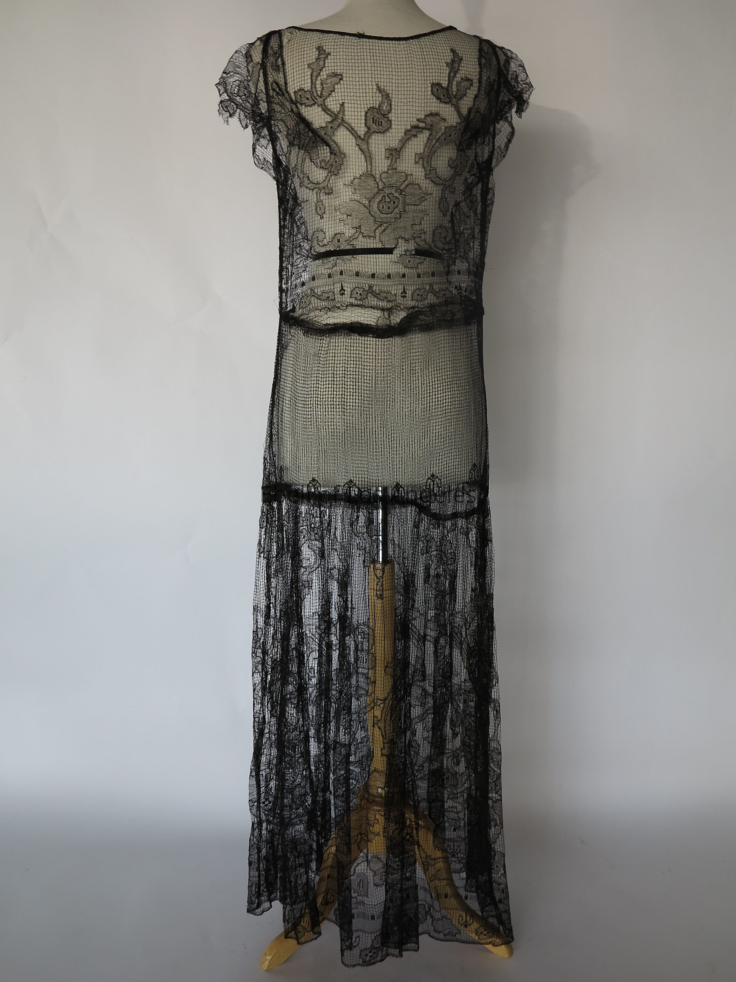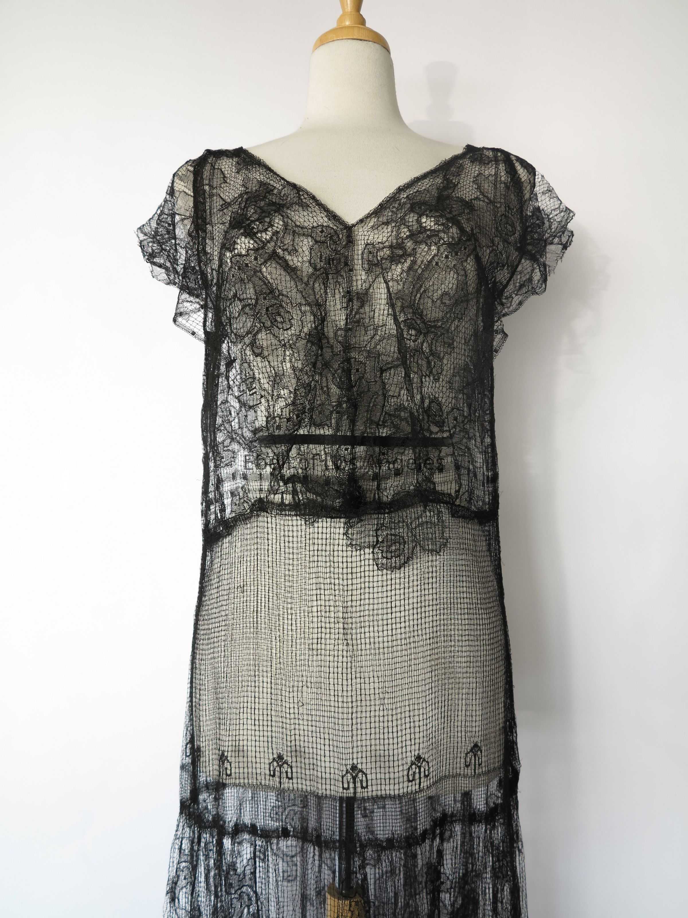 V neck lace long over dress with netting panel