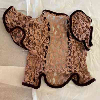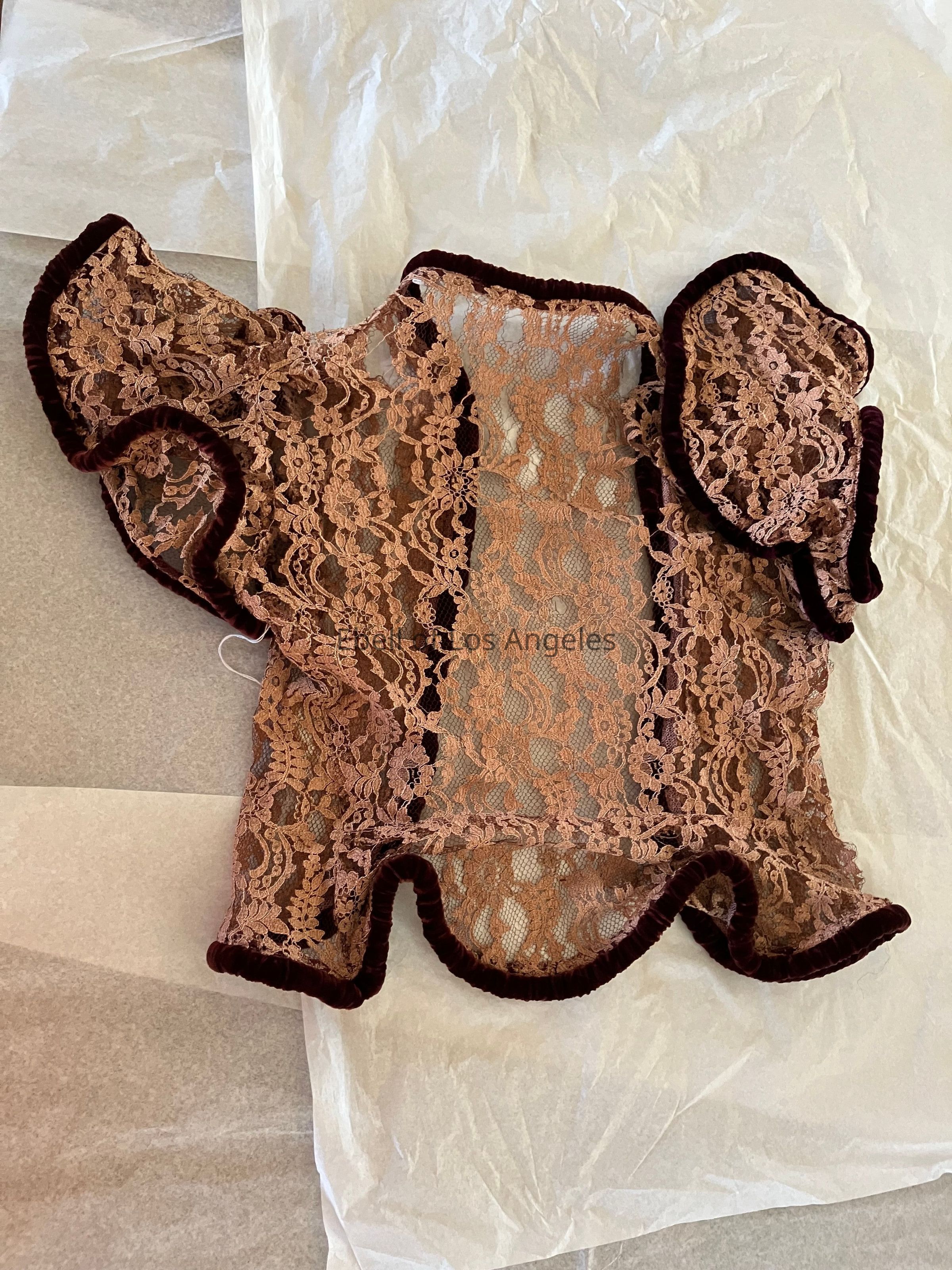 lace dress and jacket with velvet cording trim
