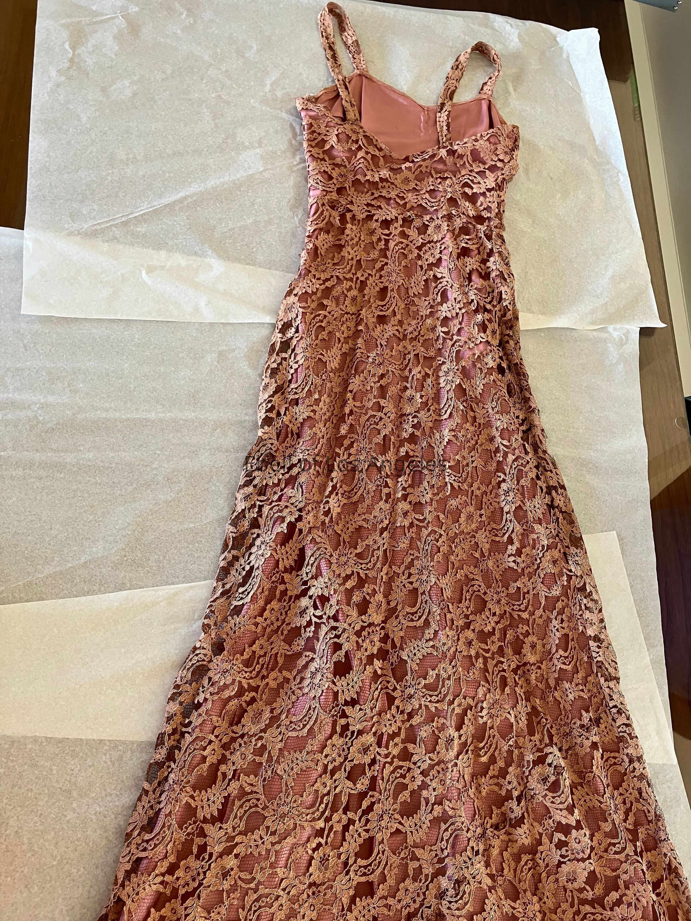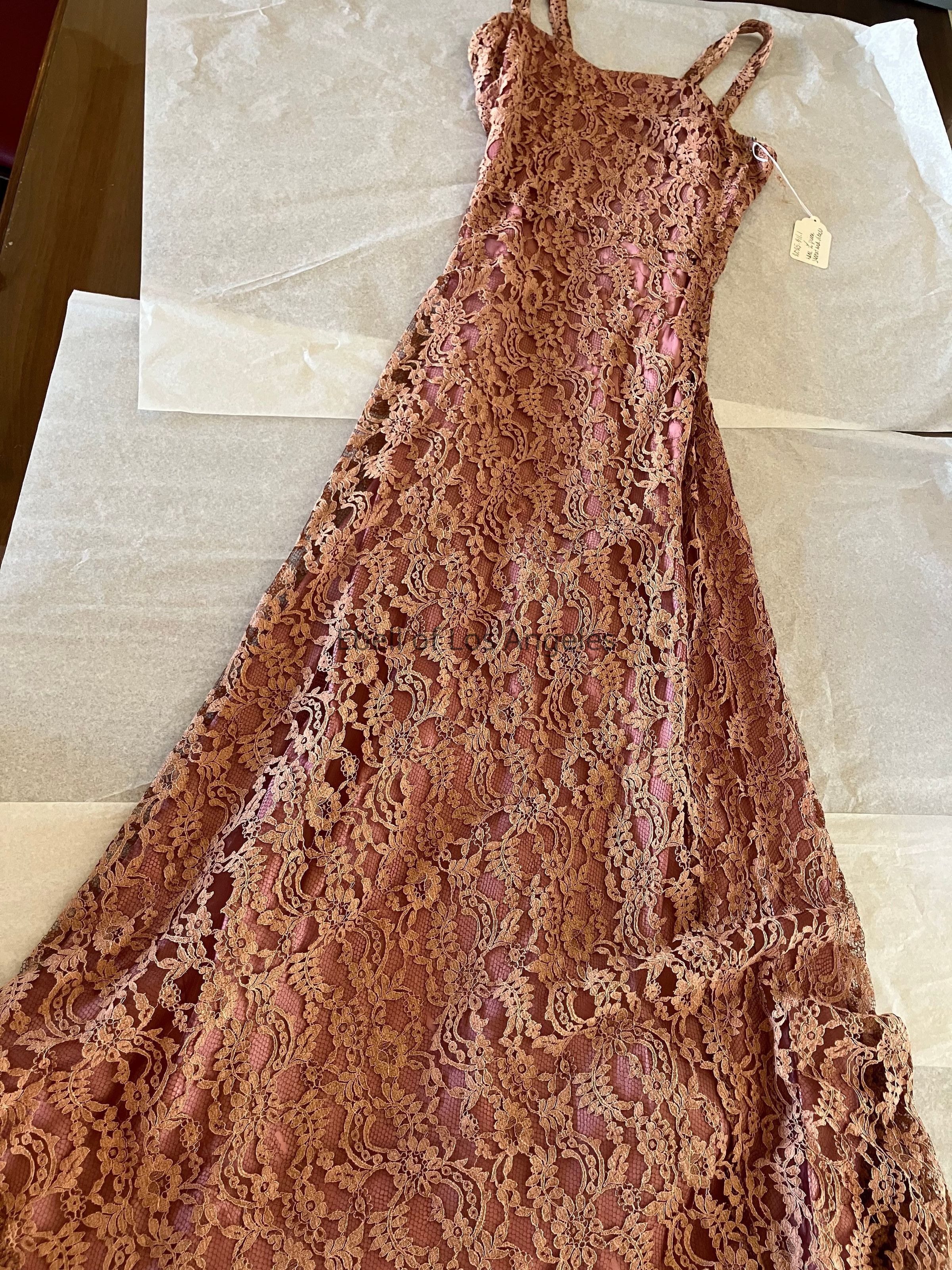 2pc 1930s Lace dress and jacket with velvet cording