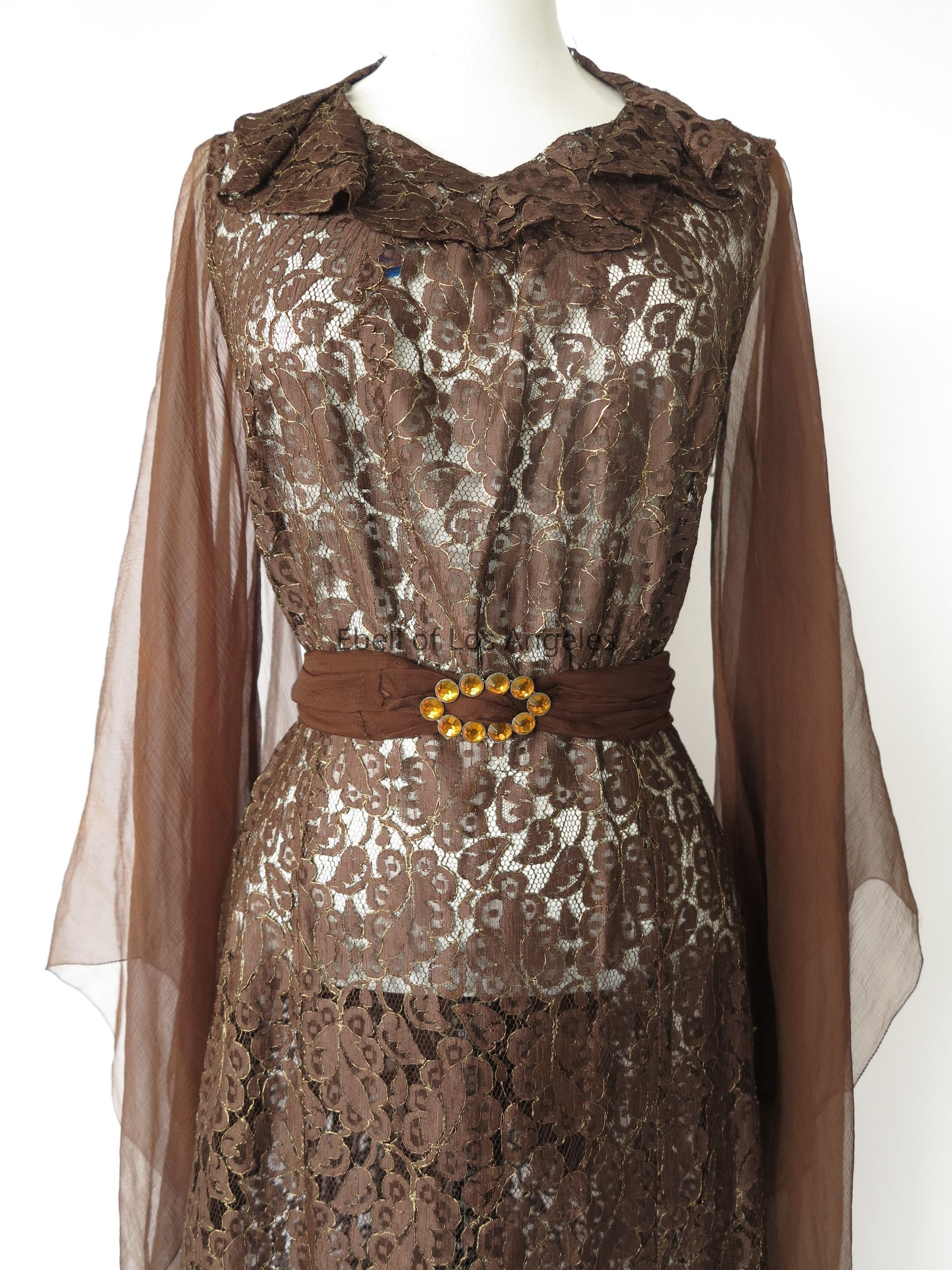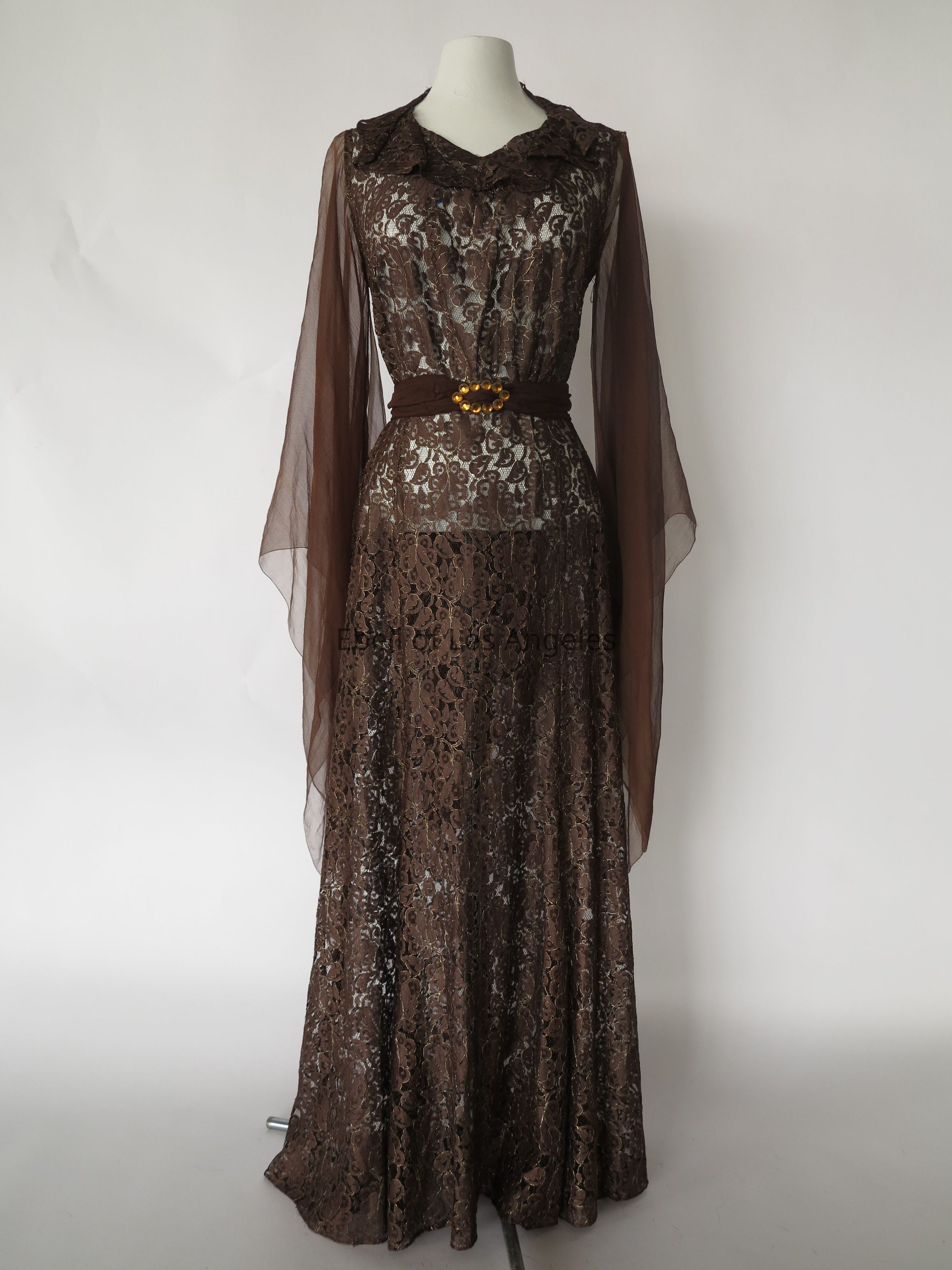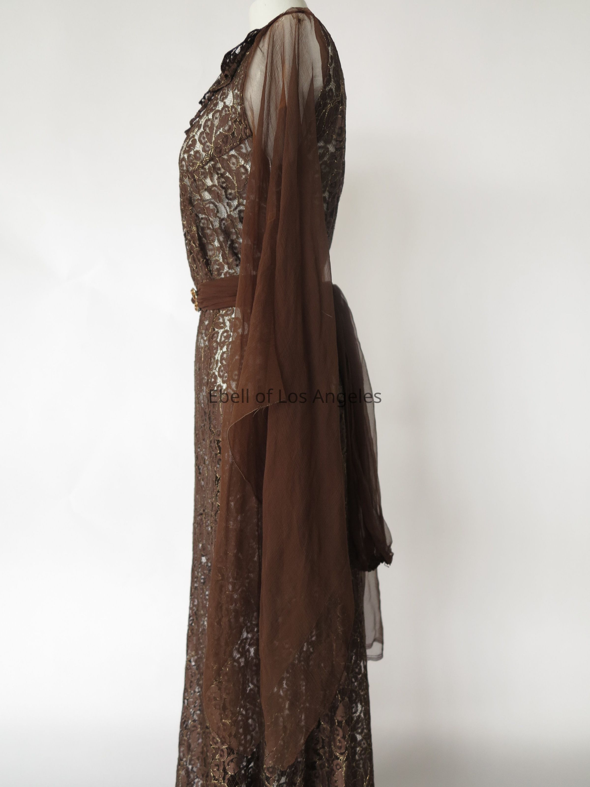 Lace full-length dress with chiffon sleeves and separate chiffon sashEntry/Object ID