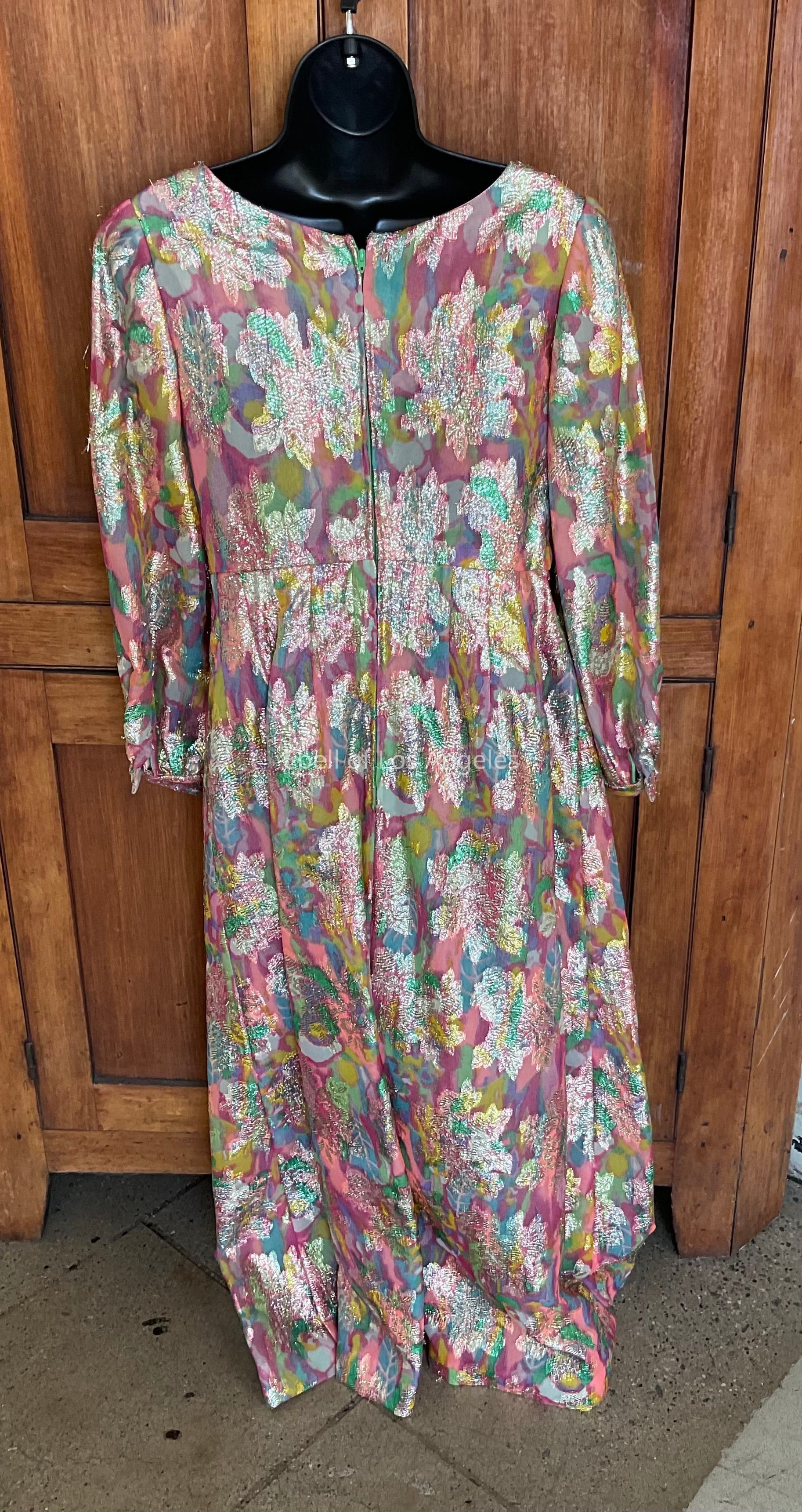 Brocade long sleeve full length dress with empire bodice, self beltEntry/Object ID