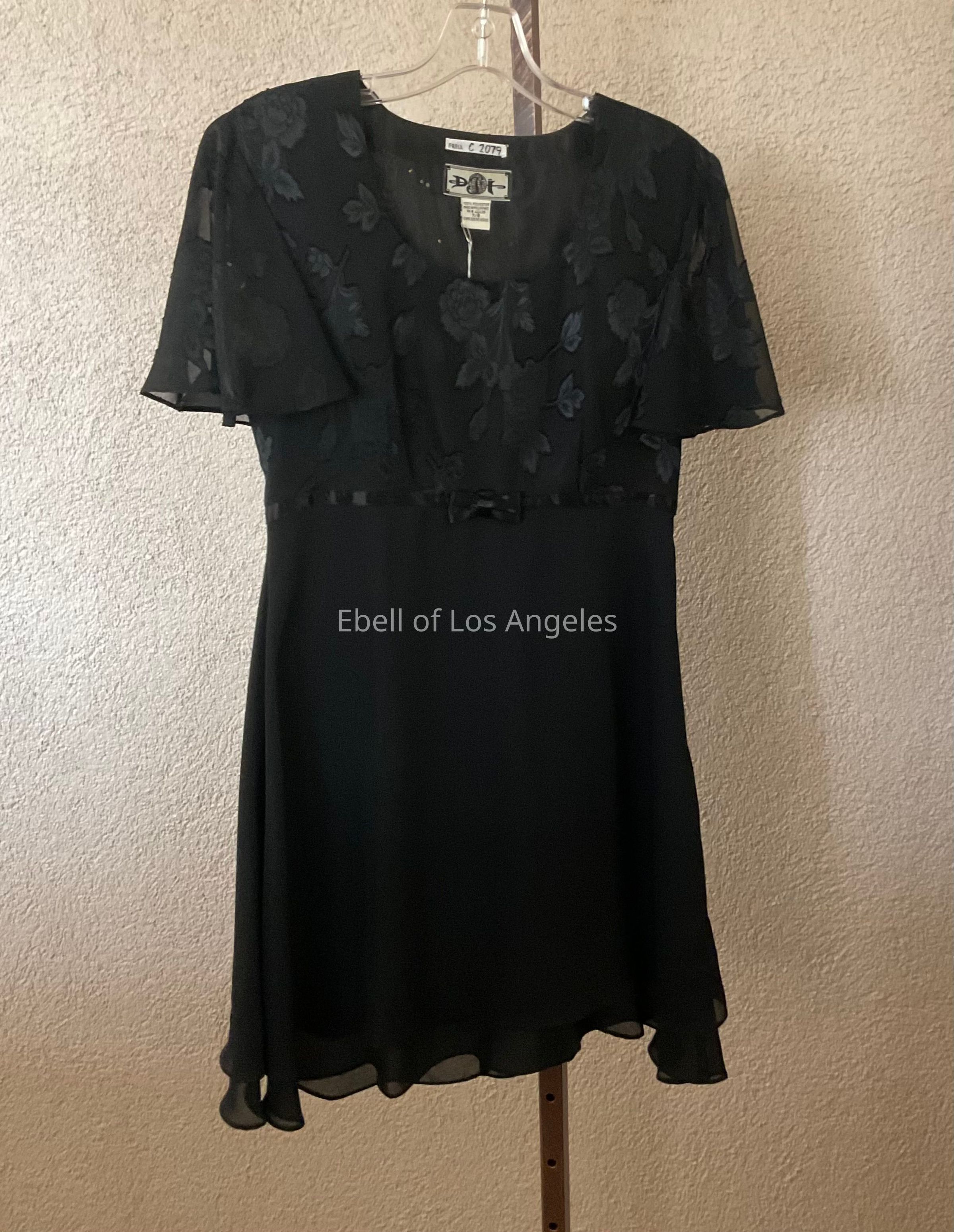 Short sleeve mini dress with floral empire waist bodice, ribbon trim at waistDescription