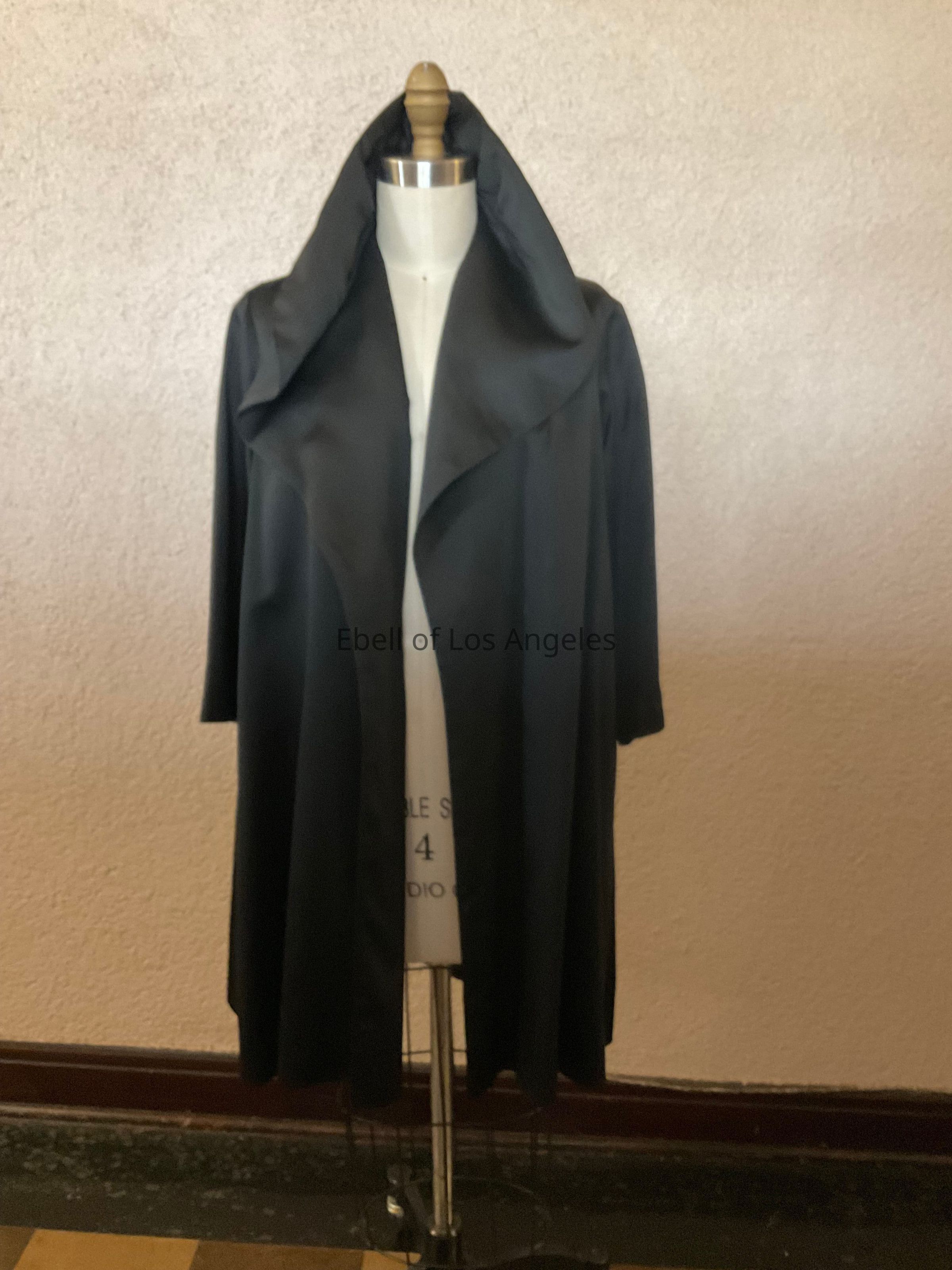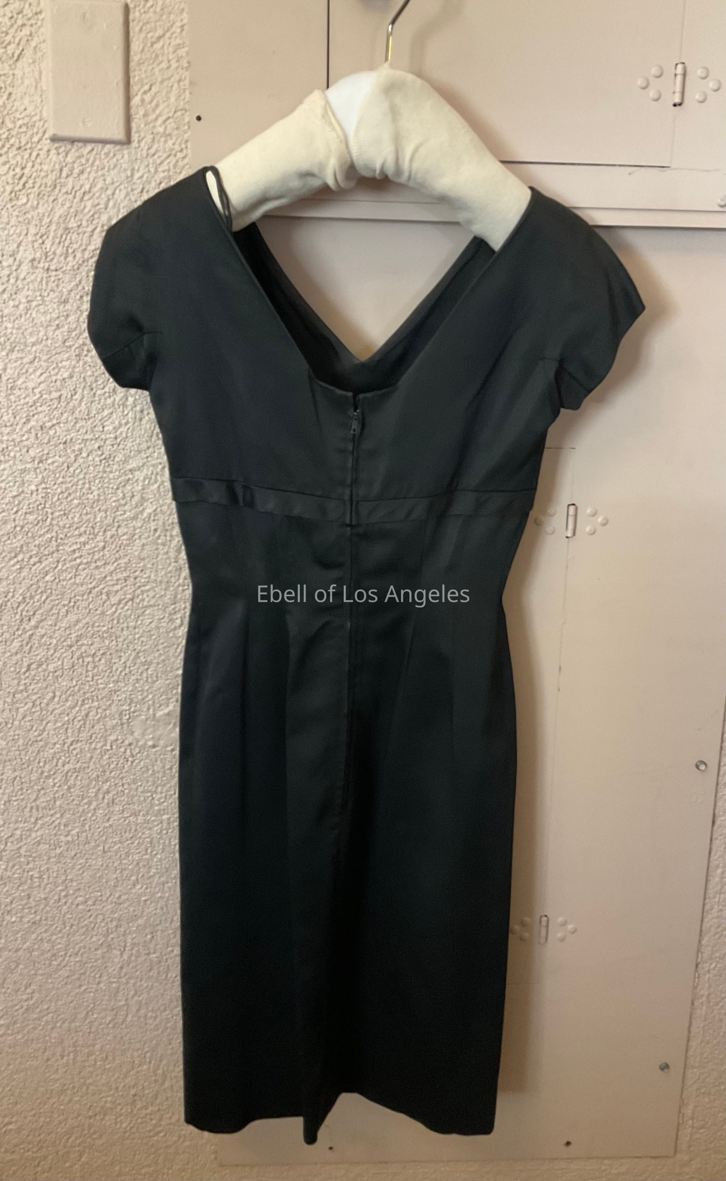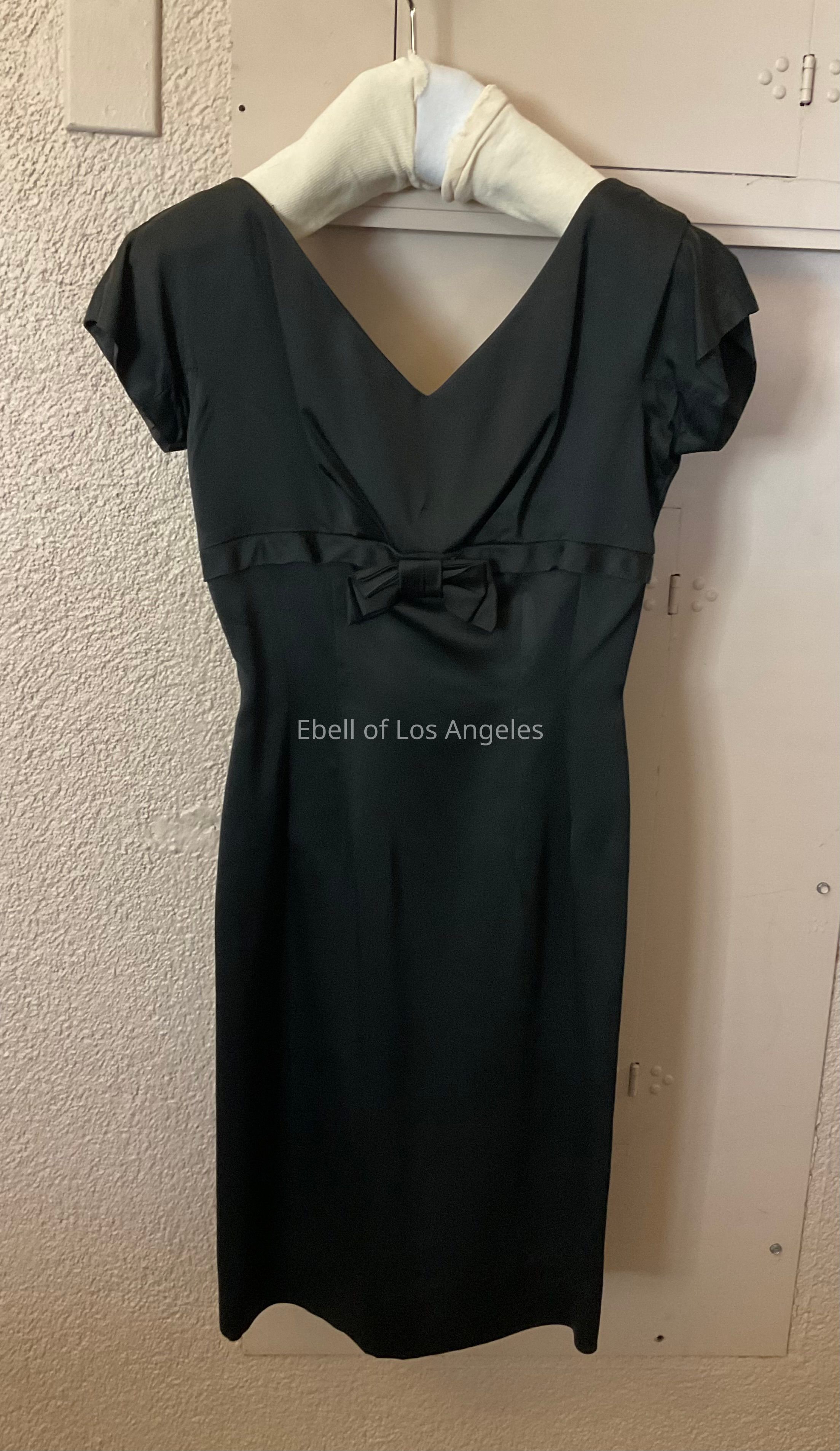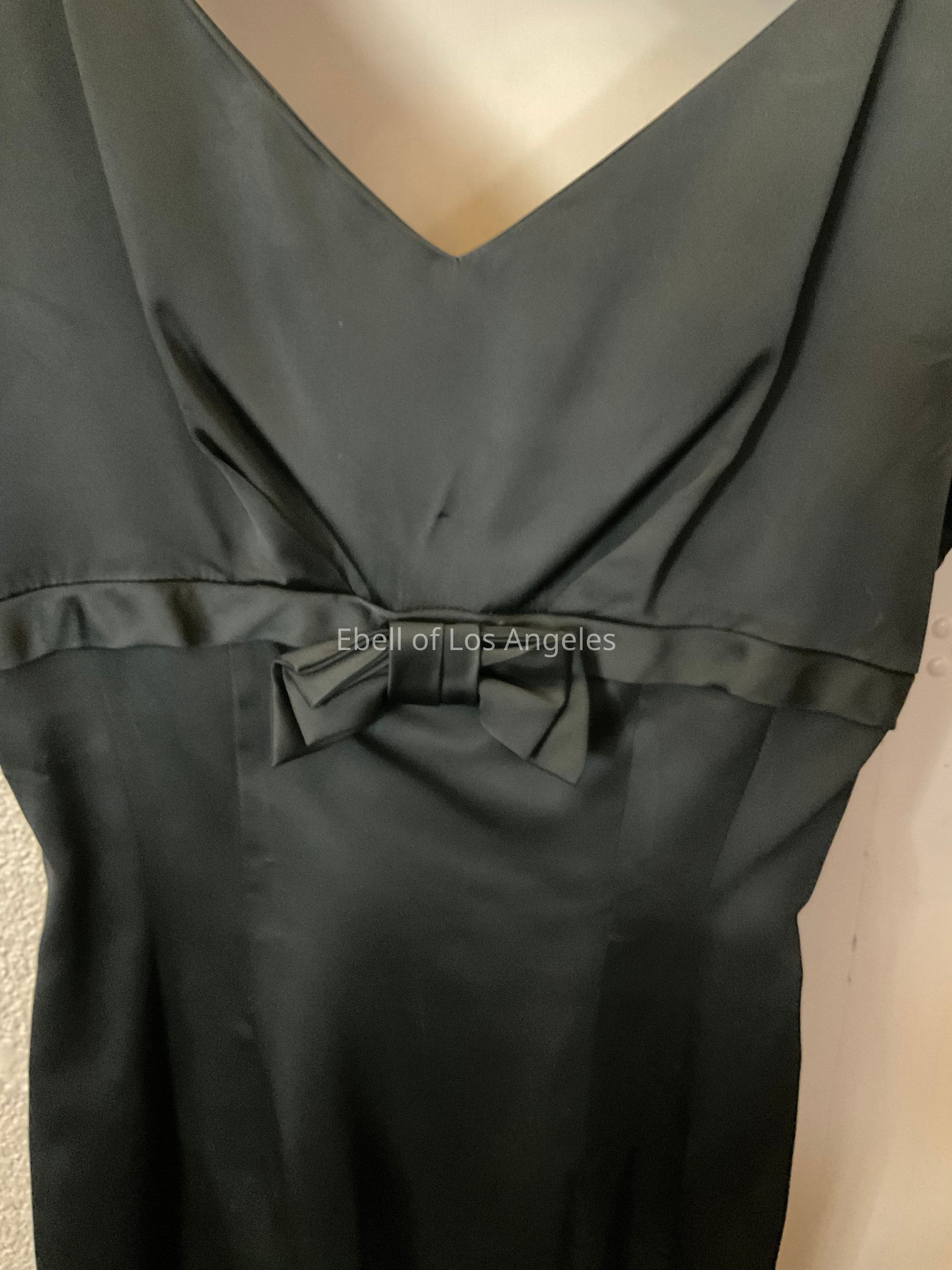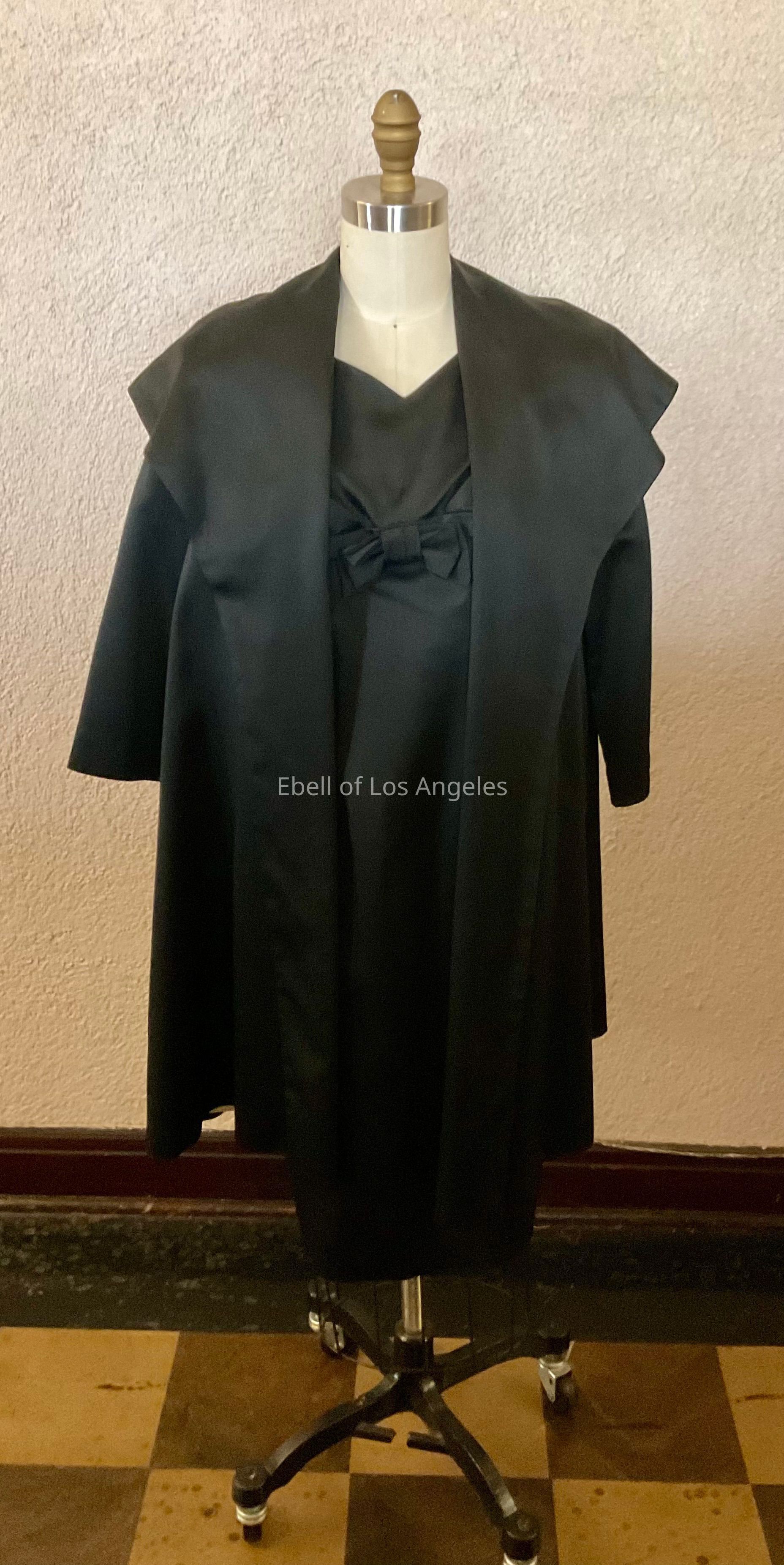 Satin open front wide collar 3/4 jacket with v-neck cap sleeve sheath with empire waist, front bow detail.Entry/Object ID