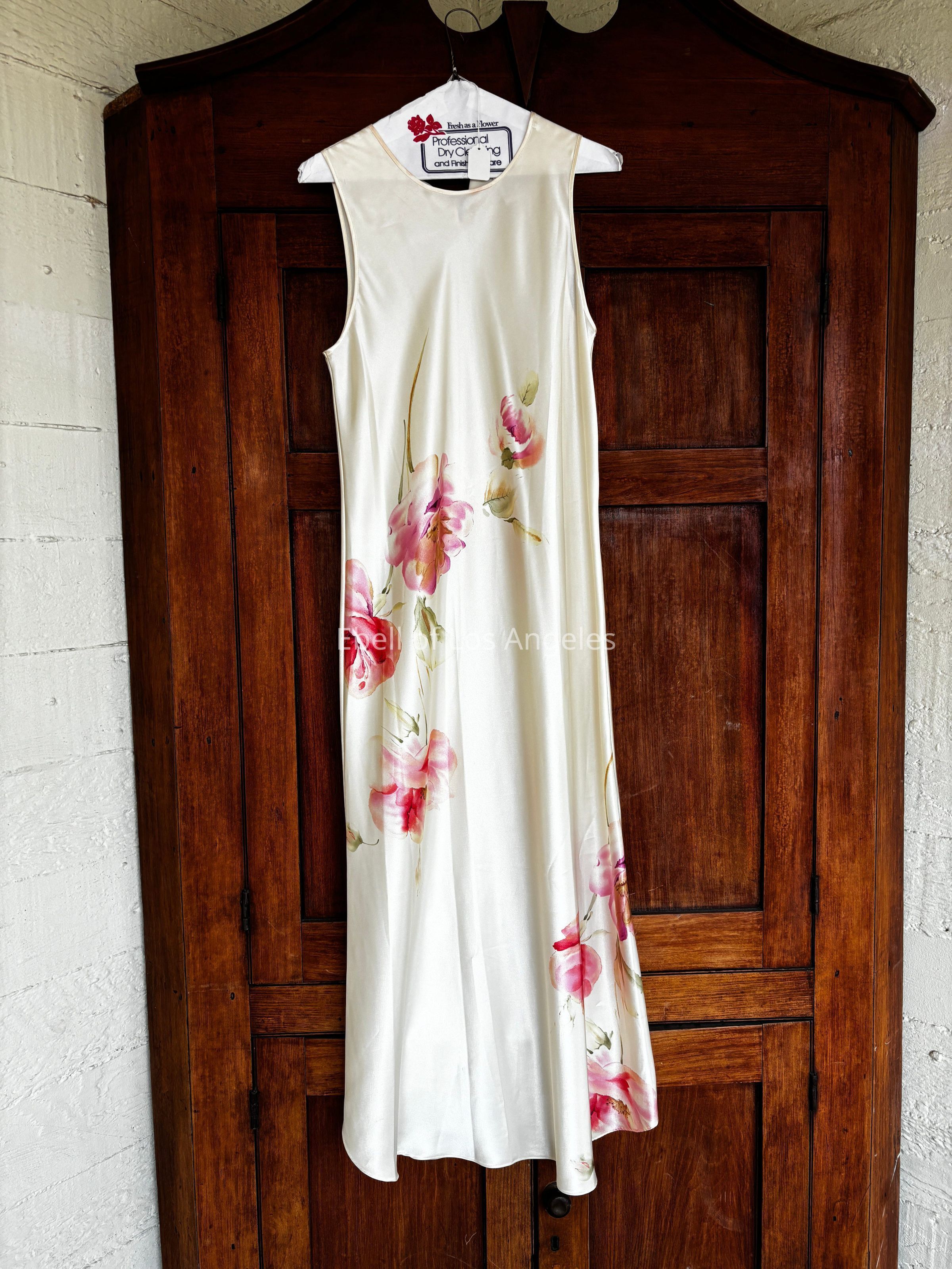Dress - Polyester Satin Slip Dress with Large Pink & Red FloralsEntry/Object ID