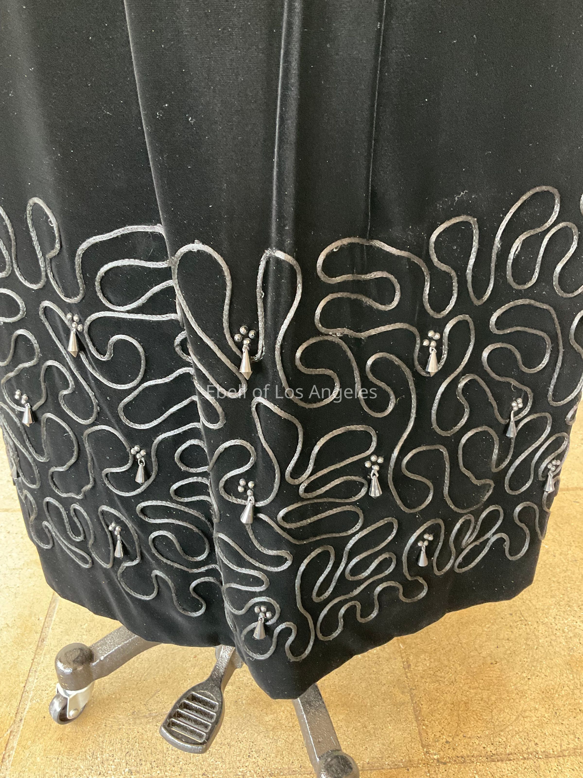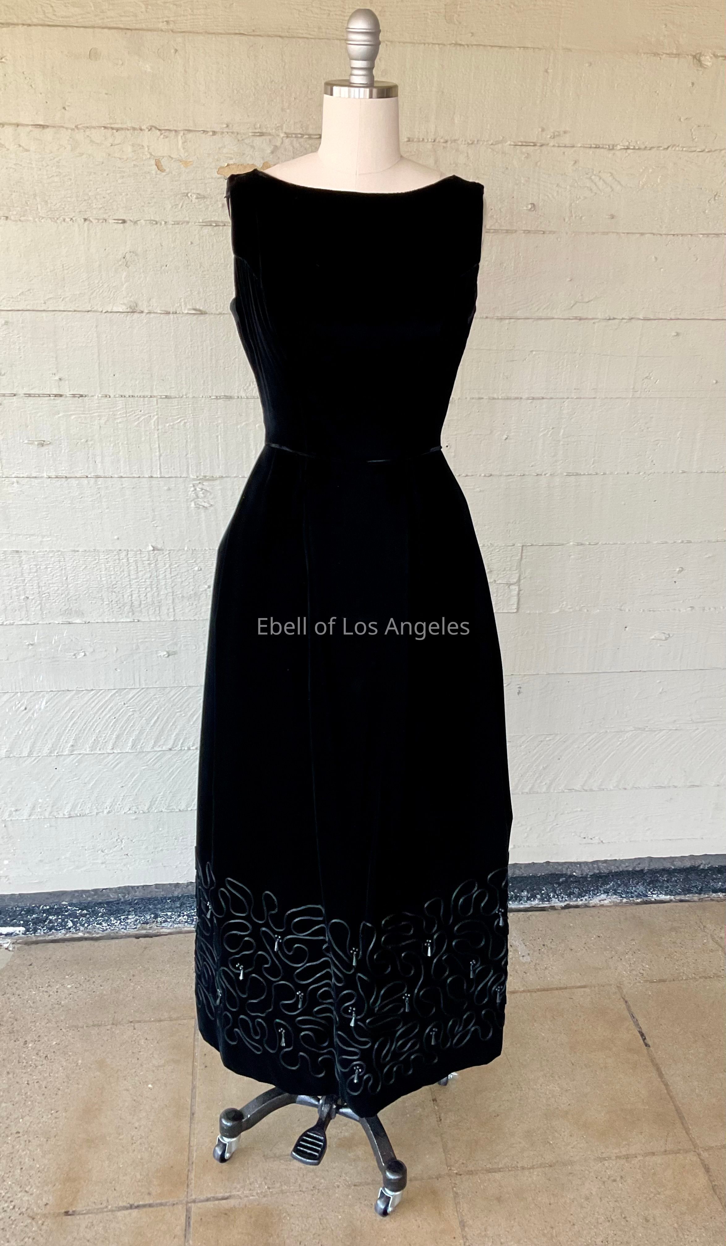 Full length boat neck sleeveless velvet dress with soutache and beading at hemEntry/Object ID