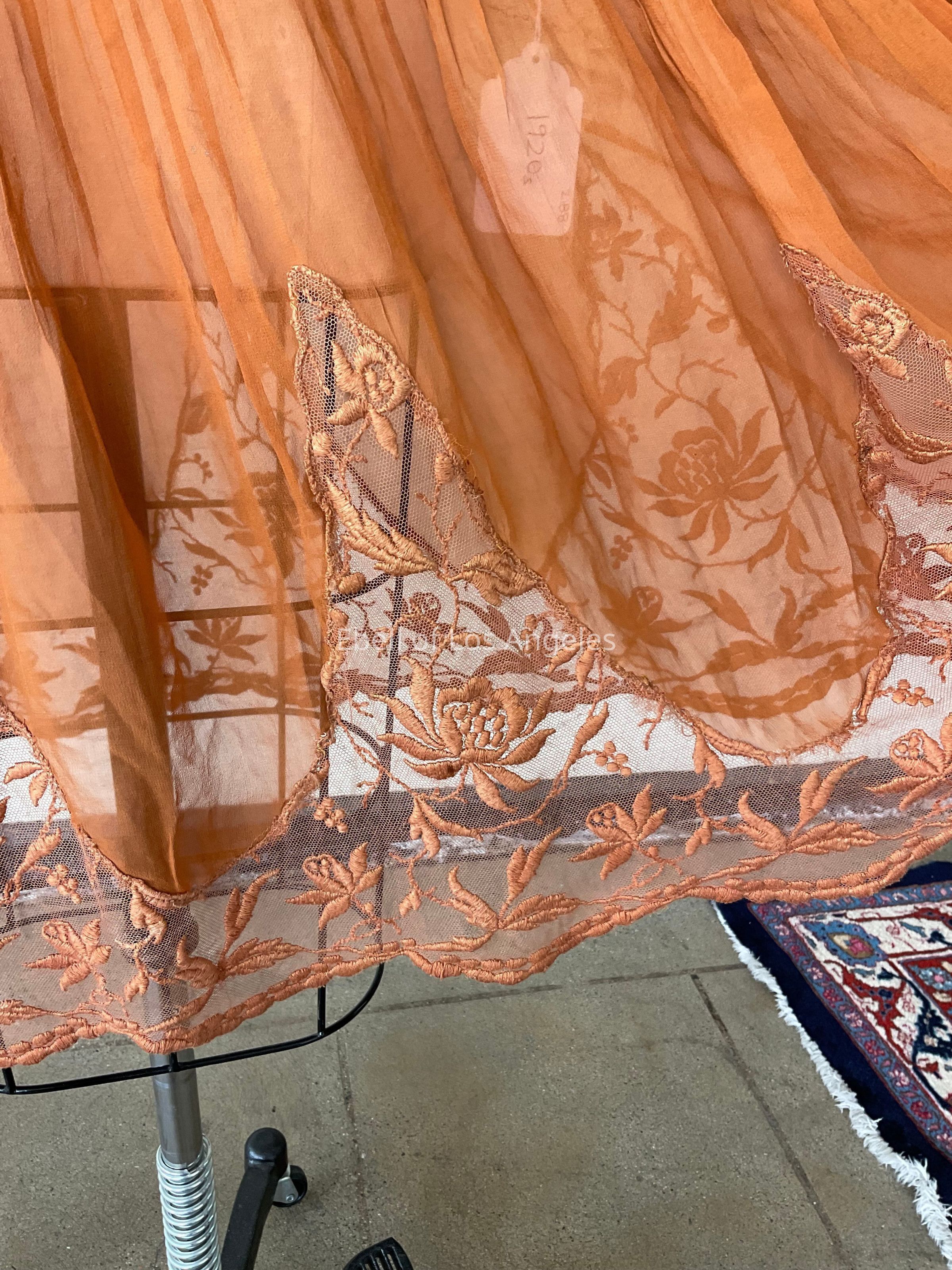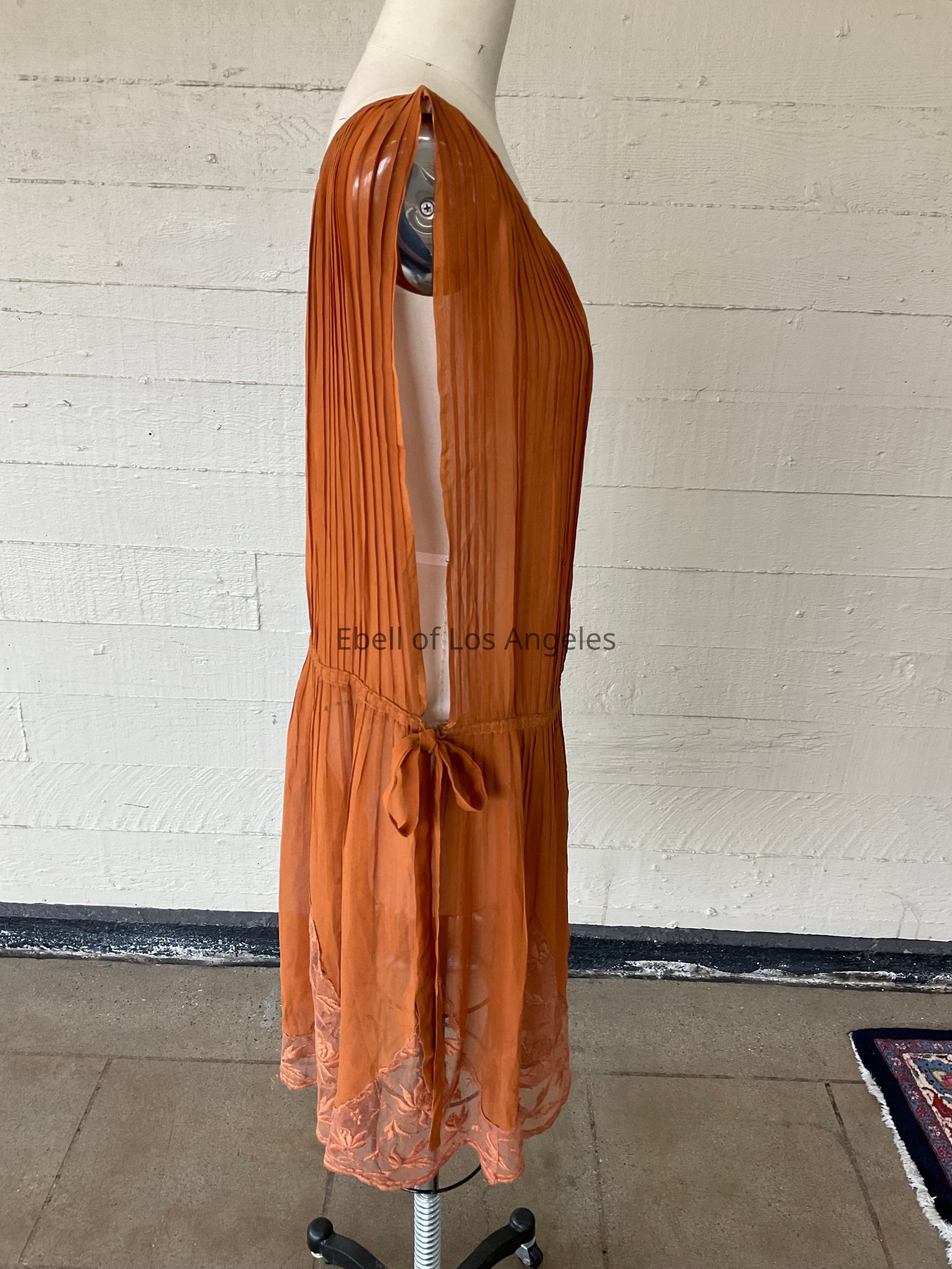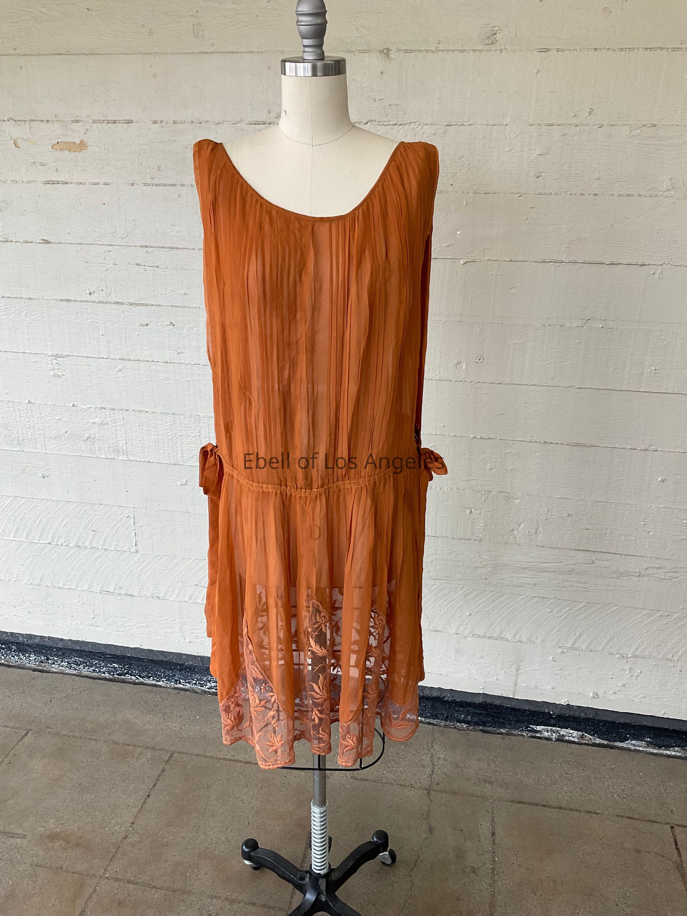 Overdress. Sleeveless, pleated chiffon with dropwaist elastic and lace hem.