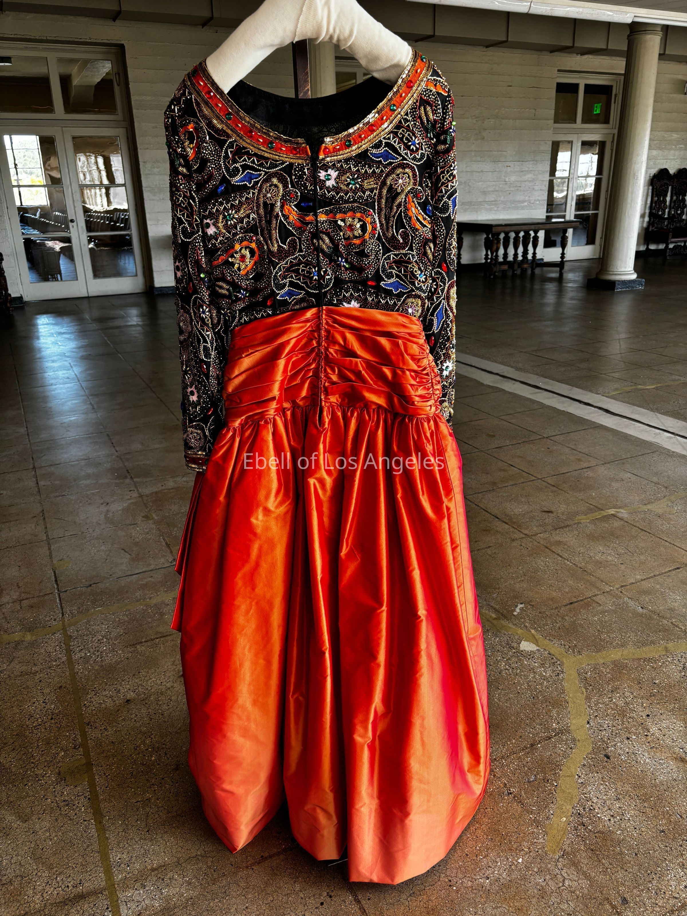 Ball Gown, Multi Colored Beaded Bodice with Orange Taffeta SkirtEntry/Object ID