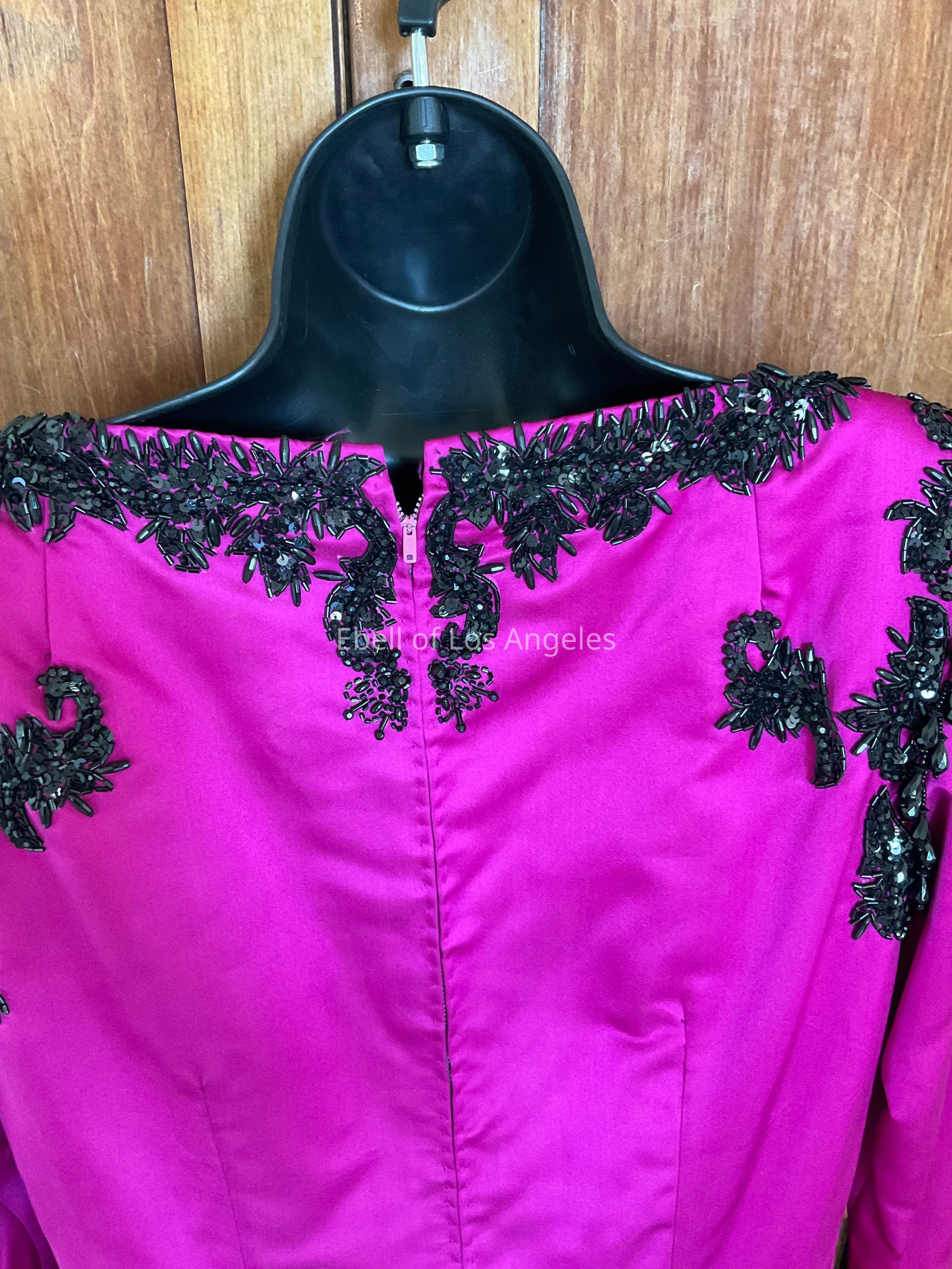Taffeta ballgown with fuschia black beaded bodice and black full skirtEntry/Object ID